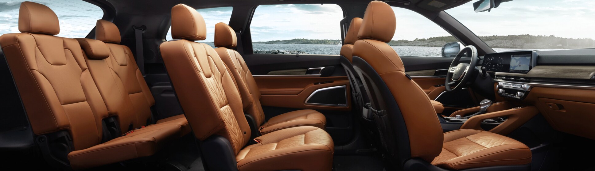 While always considered a very roomy midsize SUV, this 2023 Kia Telluride's interior is as spacious as ever, accommodating up to eight passengers. Although the Telluride is equipped with stadium seating (each row is slightly higher than the row before), there is still plenty of headspace for even the tallest passengers.Â