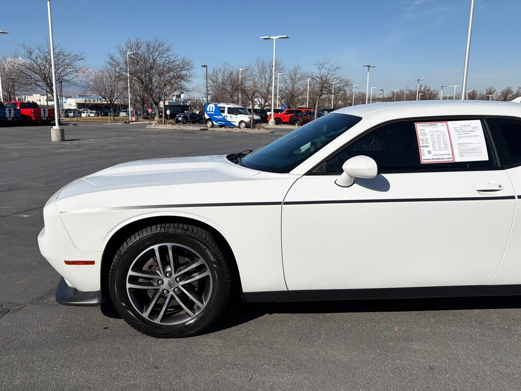 White Knuckle Clearcoat 2019 Dodge Challenger GT AWD 8-Speed Automatic 3.6L V6 24V VVT ALL-WHEEL DRIVE MUSCLE WITH PREMIUM COMFORT If youâre shopping for a used Dodge Challenger AWD near Salt Lake City, this one is the unicorn. This is a 2019 Dodge Challenger GT AWD Plus with only 51,900 miles, giving you year-round traction, classic muscle-car looks, and a loaded interior in one seriously well-rounded package challenger . V6 Power + AWD Confidence Under the hood is the proven 3.6L V6 paired with an 8-speed automatic transmission and an active AWD system. That means: Confident driving in Utah winters Smooth highway cruising Strong passing power A Challenger you can actually drive every day in Sandy, Draper, and Salt Lake City Plus Package = Big Upgrade This GT is equipped with the Plus Package, Driver Convenience Group, Alpine Audio, and Navigation, which puts it way ahead of base Challengers: Heated & ventilated front seats Heated steering wheel Power tilt/telescope steering column 8.4 touchscreen with navigation Apple CarPlay® & Android AutoTM Blind-spot monitoring & rear cross-traffic alert Adaptive cruise control & forward collision warning Alpine® premium sound system with subwoofer Remote start & keyless entry This is the trim buyers in West Jordan, Murray, Midvale, and Riverton actually want because it gives you muscle-car style without giving up comfort or tech. Why This Challenger? Compared to other Challengers for sale across Salt Lake County and Utah County, this one stands out with: AWD capability (rare on Challengers) Lower-than-average miles for a 2019 Fully loaded equipment vs. base models Better winter usability than R/T or Scat Pack models Strong resale and everyday drivability Itâs perfect if you want something sporty, different, and usable in real Utah weather without stepping into V8 insurance or fuel costs. Market-Based Pricing & Dealer Statement At Larry H. Miller CDJR, we price our vehicles based on real-time market data, not guesswork. That means youâre seeing one of the most aggressive and competitive prices in the Sandy and greater Salt Lake market from day one no games, no inflated numbers. Our inventory moves fast because we price to sell and back it up with a transparent, professional buying experience. Larry H. Miller CDJR 10905 S Automall Dr Sandy, UT 84070 801-590-0465, 1-Yr SiriusXM Guardian Trial, 276 Watt Amplifier, 4G LTE Wi-Fi Hot Spot, 506 Watt Amplifier, 6 Premium Alpine Speakers, 8.4 Touchscreen Display, 9 Amplified Speakers w/Subwoofer, Alpine Audio Group w/Subwoofer, Blind Spot & Cross Path Detection, Bright Pedals, Dodge Performance Pages, Door Trim Panel w/Ambient Lighting, Driver Convenience Group, For Details, Visit DriveUconnect.com, GPS Navigation, HD Radio, Heated Front Seats, Heated Steering Wheel, High-Intensity Discharge Headlamps, Nappa/Alcantara Performance Seats, Plus Package, Power Multi-Function Foldaway Mirrors, Power Tilt/Telescope Steering Column, Quick Order Package 21J GT AWD, Radio: Uconnect 4C w/8.4 Display, Shark Fin Antenna, SiriusXM Satellite Radio, Surround Sound.
