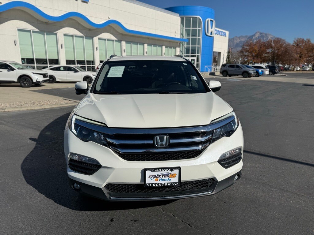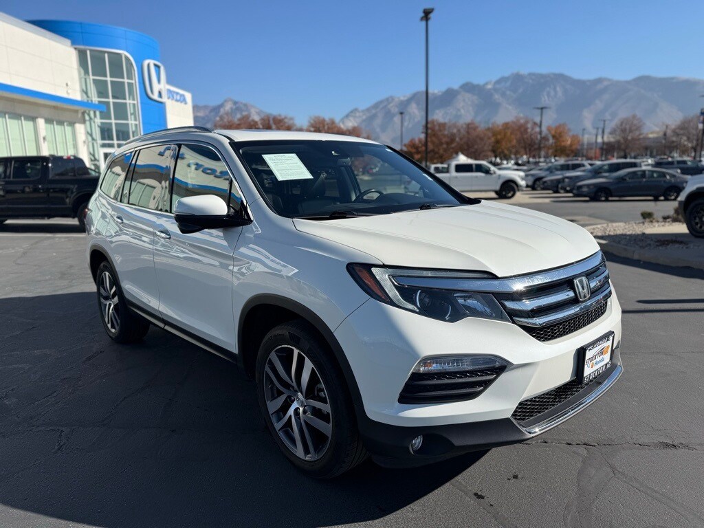 Pilot Touring, HondaTrue Certified Certified, 4D Sport Utility, 3.5L V6 24V SOHC i-VTEC, 9-Speed Automatic, AWD, White, Black Leather, 10 Speakers, 20" Alloy Wheels, 3rd row seats: split-bench, 4-Wheel Disc Brakes, 4.334 Axle Ratio, A/V remote, ABS brakes, Air Conditioning, Alloy wheels, AM/FM radio: SiriusXM, Apple CarPlay/Android Auto, Auto-dimming Rear-View mirror, Automatic temperature control, Brake assist, Bumpers: body-color, Compass, Delay-off headlights, Driver door bin, Driver vanity mirror, Dual front impact airbags, Dual front side impact airbags, Electronic Stability Control, Exterior Parking Camera Rear, Four wheel independent suspension, Front anti-roll bar, Front Bucket Seats, Front Center Armrest, Front dual zone A/C, Front fog lights, Front reading lights, Fully automatic headlights, Garage door transmitter: HomeLink, Headphones, Heated door mirrors, Heated Front Bucket Seats, Heated front seats, Honda Satellite-Linked Navigation System, Illuminated entry, Leather Shift Knob, Leather-Trimmed Seats, Low tire pressure warning, Memory seat, Navigation System, Occupant sensing airbag, Outside temperature display, Overhead airbag, Overhead console, Panic alarm, Passenger door bin, Passenger vanity mirror, Power door mirrors, Power driver seat, Power Liftgate, Power moonroof, Power passenger seat, Power steering, Power windows, Radio data system, Radio: AM/FM Premium Audio System, Rear air conditioning, Rear anti-roll bar, Rear audio controls, Rear reading lights, Rear seat center armrest, Rear window defroster, Rear window wiper, Remote keyless entry, Roof rack: rails only, Security system, SiriusXM Radio, Speed control, Speed-sensing steering, Speed-Sensitive Wipers, Split folding rear seat, Spoiler, Steering wheel mounted audio controls, Tachometer, Telescoping steering wheel, Tilt steering wheel, Traction control, Trip computer, Turn signal indicator mirrors, Variably intermittent wipers, Pilot Touring, 4D Sport Utility, 3.5L V6 24V SOHC i-VTEC, 9-Speed Automatic, AWD, White, Black Leather.