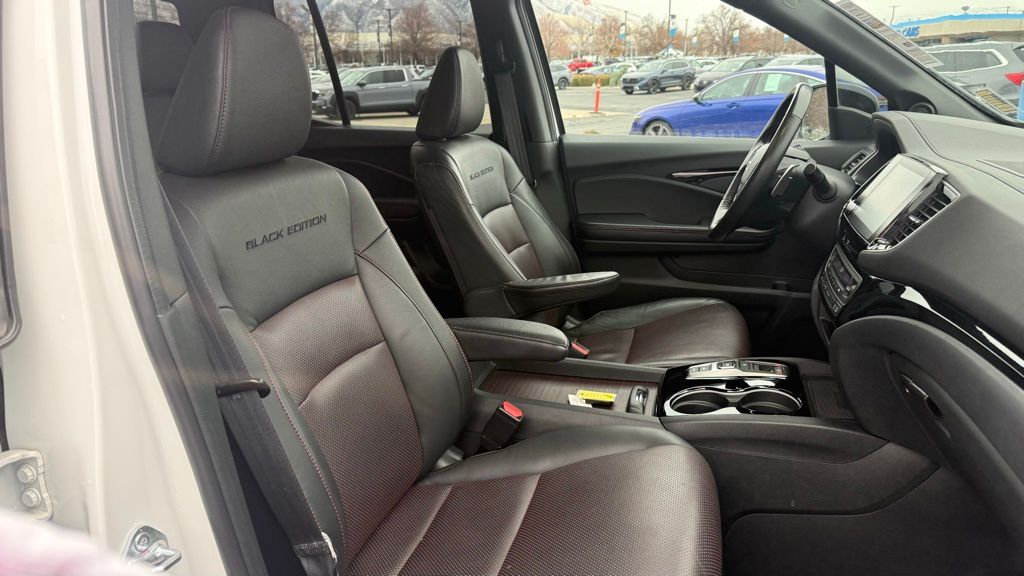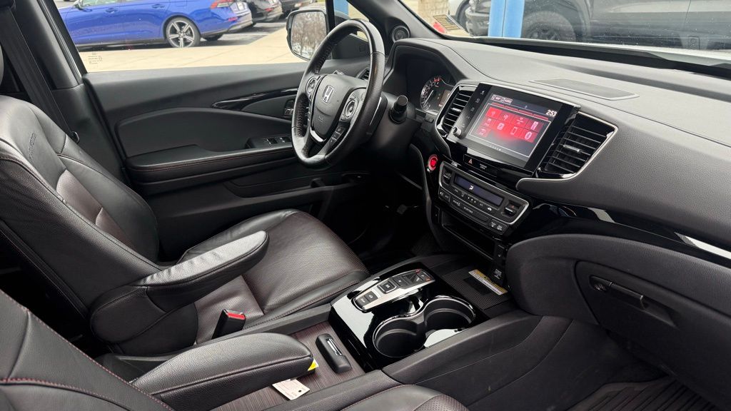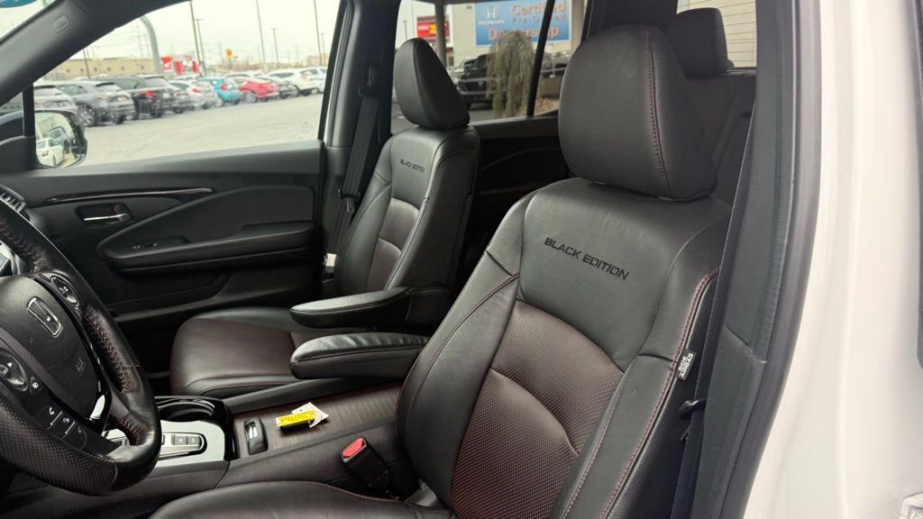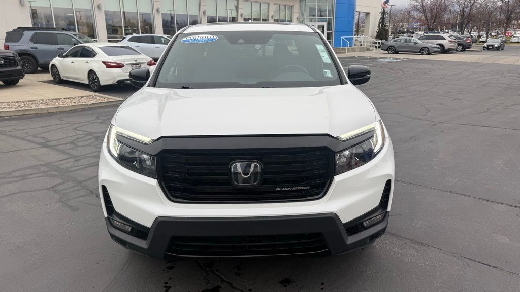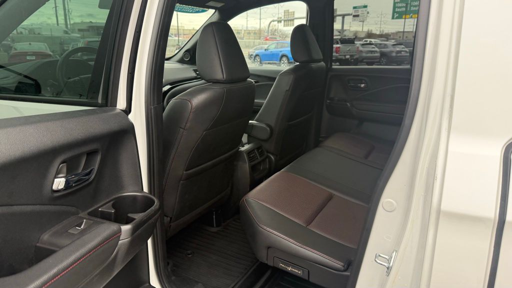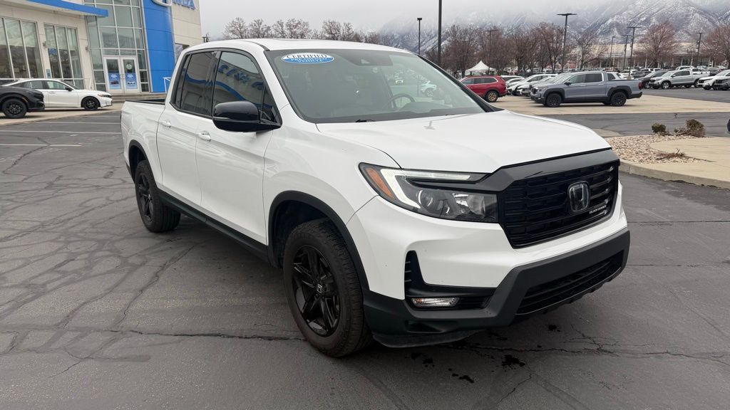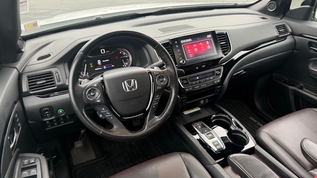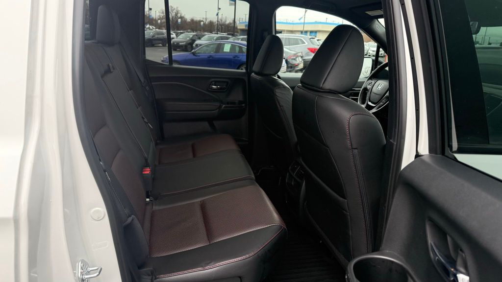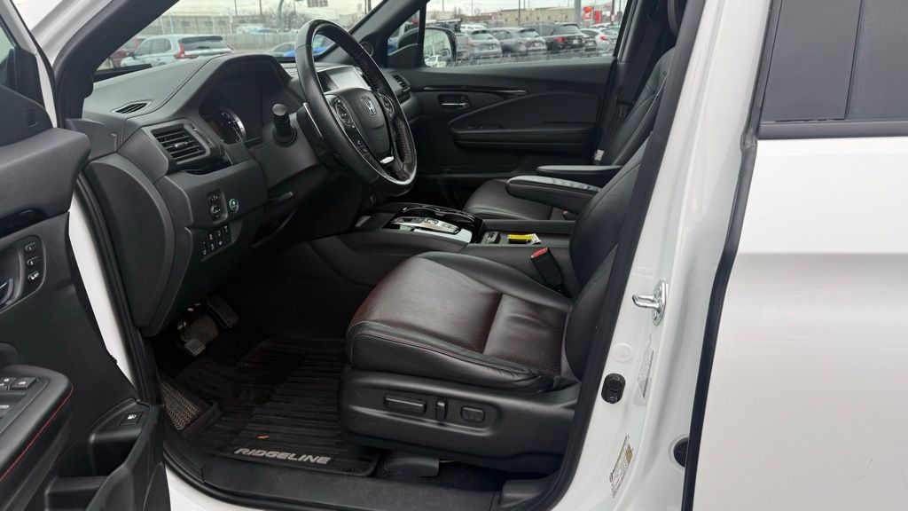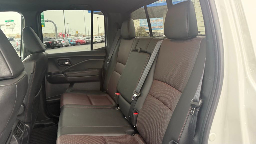 Ridgeline Black Edition, HondaTrue Certified Certified, 4D Crew Cab, 3.5L V6 SOHC i-VTEC 24V, 9-Speed Automatic, AWD, White, Black Leather, 4-Wheel Disc Brakes, 4.33 Axle Ratio, 8 Speakers, ABS brakes, Air Conditioning, Alloy wheels, AM/FM radio: SiriusXM, Apple CarPlay/Android Auto, Auto High-beam Headlights, Auto-dimming Rear-View mirror, Automatic temperature control, Blind Spot Information (BSI) System warning, Bluetooth® Hands-Free Link, Brake assist, Bumpers: body-color, Compass, Delay-off headlights, Driver door bin, Driver vanity mirror, Driver's Seat Mounted Armrest, Dual front impact airbags, Dual front side impact airbags, Electronic Stability Control, Exterior Parking Camera Rear, Forward collision: Collision Mitigation Braking System (CMBS) + FCW mitigation, Four wheel independent suspension, Front anti-roll bar, Front Bucket Seats, Front dual zone A/C, Front fog lights, Front reading lights, Fully automatic headlights, Garage door transmitter: HomeLink, Heated door mirrors, Heated Front Bucket Seats, Heated front seats, Heated steering wheel, Honda Satellite-Linked Navigation System, Illuminated entry, Leather Seat Trim, Low tire pressure warning, Memory seat, Navigation system: Honda Satellite-Linked Navigation System, Occupant sensing airbag, Outside temperature display, Overhead airbag, Overhead console, Panic alarm, Passenger door bin, Passenger seat mounted armrest, Passenger vanity mirror, Power door mirrors, Power driver seat, Power moonroof, Power passenger seat, Power steering, Power windows, Radio data system, Radio: AM/FM/MP3 Premium Audio System, Rear air conditioning, Rear anti-roll bar, Rear reading lights, Rear seat center armrest, Rear step bumper, Rear window defroster, Remote keyless entry, Security system, SiriusXM, Speed control, Speed-sensing steering, Split folding rear seat, Steering wheel mounted audio controls, Tachometer, Telescoping steering wheel, Tilt steering wheel, Traction control, Trip computer, Turn signal indicator mirrors, Variably intermittent wipers, Wheels: 18" Exclusive Gloss Black Alloy, Ridgeline Black Edition, 4D Crew Cab, 3.5L V6 SOHC i-VTEC 24V, 9-Speed Automatic, AWD, White, Black Leather.