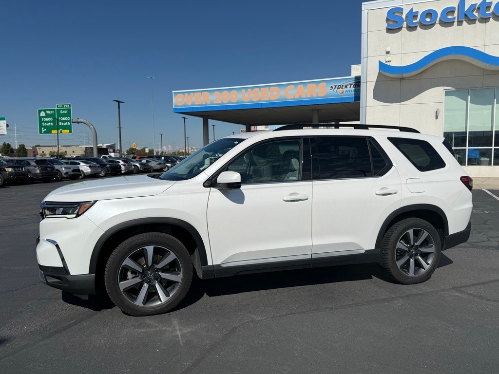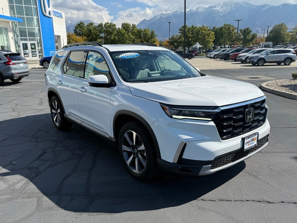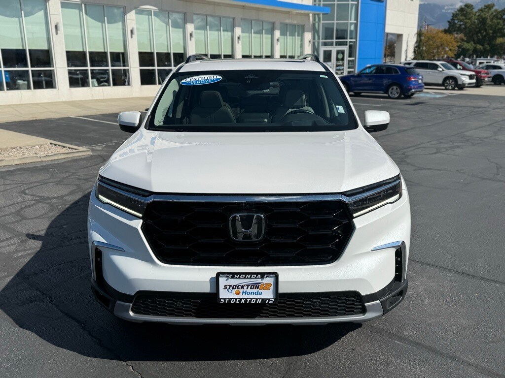 Pilot Elite, HondaTrue Certified Certified, 4D Sport Utility, 3.5L V6 DOHC 24V, 10-Speed Automatic, AWD, Platinum White Pearl, Gray Leather, 12 Speakers, 3rd row seats: split-bench, 4-Wheel Disc Brakes, ABS brakes, Adaptive Cruise Control: Adaptive Cruise Control (ACC) with Low-Speed Follow, Air Conditioning, Alloy wheels, AM/FM radio: SiriusXM, Apple CarPlay/Android Auto, Auto High-beam Headlights, Auto-dimming door mirrors, Auto-dimming Rear-View mirror, Automatic temperature control, Axle Ratio: 4.167, Blind Spot Information (BSI) System warning, Bose Premium Sound System, Brake assist, Bumpers: body-color, Compass, Delay-off headlights, Driver door bin, Driver vanity mirror, Dual front impact airbags, Dual front side impact airbags, Electronic Stability Control, Emergency communication system: HondaLink, Four wheel independent suspension, Front anti-roll bar, Front Bucket Seats, Front Center Armrest, Front dual zone A/C, Front fog lights, Front reading lights, Fully automatic headlights, Garage door transmitter: HomeLink, Heads-Up Display, Heated & Ventilated Front Bucket Seats, Heated door mirrors, Heated front seats, Heated rear seats, Heated steering wheel, Illuminated entry, Knee airbag, Lane departure: Lane Keeping Assist System (LKAS) active, Low tire pressure warning, Memory seat, Navigation system: Honda Satellite-Linked Navigation System, Occupant sensing airbag, Outside temperature display, Overhead airbag, Overhead console, Panic alarm, Passenger door bin, Passenger vanity mirror, Perforated Leather Seat Trim, Power door mirrors, Power driver seat, Power Liftgate, Power moonroof, Power passenger seat, Power steering, Power windows, Radio data system, Rain sensing wipers, Rear air conditioning, Rear anti-roll bar, Rear reading lights, Rear seat center armrest, Rear window defroster, Rear window wiper, Reclining 3rd row seat, Remote keyless entry, Security system, Speed control, Speed-sensing steering, Speed-Sensitive Wipers, Split folding rear seat, Spoiler, Steering wheel mounted audio controls, Tachometer, Telescoping steering wheel, Tilt steering wheel, Traction control, Trip computer, Turn signal indicator mirrors, Variably intermittent wipers, Ventilated front seats, Wheels: 20" Machine Face Shark Gray w/Blk Lug Nuts, Pilot Elite, 4D Sport Utility, 3.5L V6 DOHC 24V, 10-Speed Automatic, AWD, Platinum White Pearl, Gray Leather.