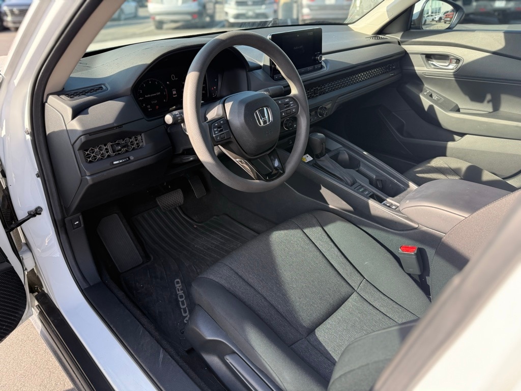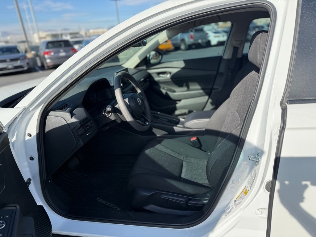 Accord LX, HondaTrue Certified Certified, 4D Sedan, 1.5T I4 DOHC 16V Turbocharged VTEC, CVT, FWD, White, Black Cloth, 4 Speakers, 4-Wheel Disc Brakes, ABS brakes, Adaptive Cruise Control: Adaptive Cruise Control (ACC) with Low-Speed Follow, Air Conditioning, Alloy wheels, AM/FM radio, Apple CarPlay/Android Auto, Auto High-beam Headlights, Automatic temperature control, Brake assist, Bumpers: body-color, Compass, Delay-off headlights, Driver door bin, Driver vanity mirror, Dual front impact airbags, Dual front side impact airbags, Electronic Stability Control, Emergency communication system: HondaLink Assist, Exterior Parking Camera Rear, Fabric Seat Trim, Four wheel independent suspension, Front anti-roll bar, Front Bucket Seats, Front Center Armrest, Front reading lights, Fully automatic headlights, Illuminated entry, Knee airbag, Lane departure: Lane Keeping Assist System (LKAS) active, Low tire pressure warning, Occupant sensing airbag, Outside temperature display, Overhead airbag, Overhead console, Panic alarm, Passenger door bin, Passenger vanity mirror, Power door mirrors, Power steering, Power windows, Radio data system, Radio: 160-Watt AM/FM Audio System, Rear anti-roll bar, Rear reading lights, Rear seat center armrest, Rear side impact airbag, Rear window defroster, Remote keyless entry, Security system, Speed control, Speed-sensing steering, Speed-Sensitive Wipers, Steering wheel mounted audio controls, Tachometer, Telescoping steering wheel, Tilt steering wheel, Traction control, Trip computer, Variably intermittent wipers, Wheels: 17" x 7.5" Blade Silver, Accord LX, 4D Sedan, 1.5T I4 DOHC 16V Turbocharged VTEC, CVT, FWD, White, Black Cloth.