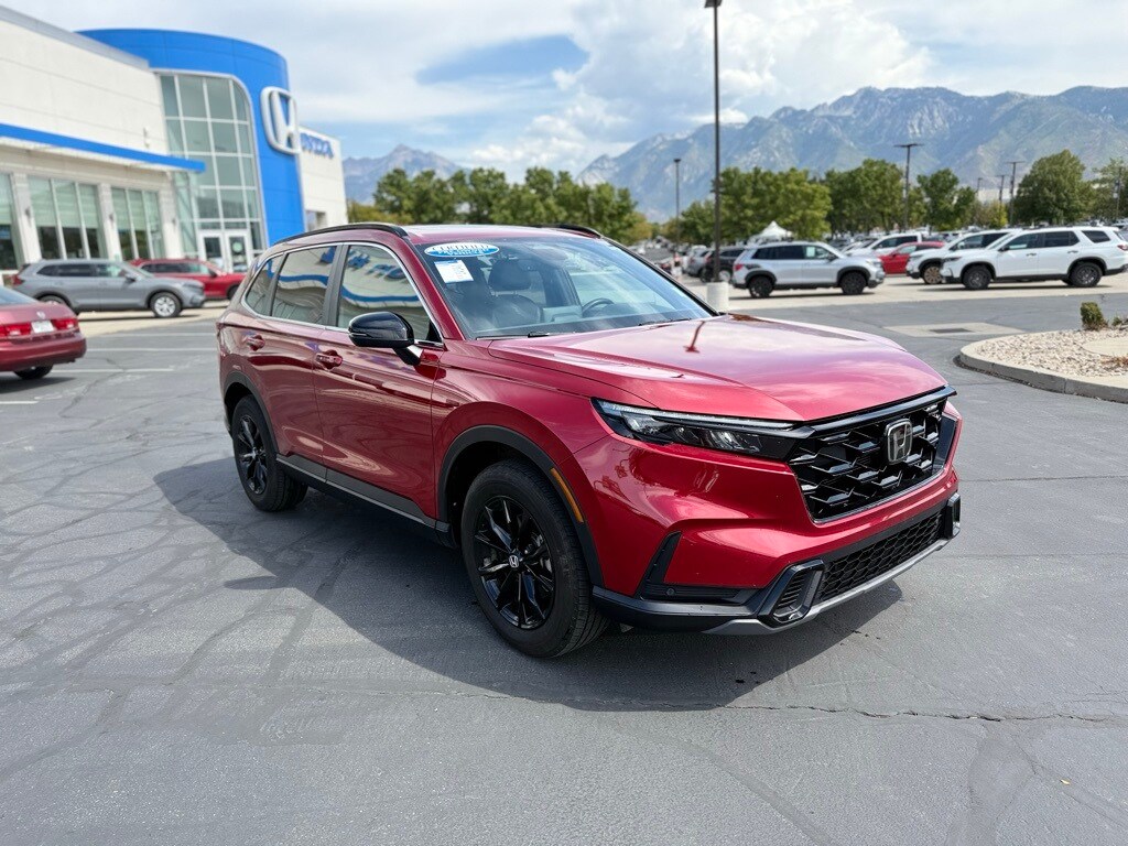 CR-V Hybrid Sport-L, HondaTrue Certified Certified, 4D Sport Utility, 2.0L I4 DOHC 16V, eCVT, AWD, Red, Black Leather, 4-Wheel Disc Brakes, 4.438 Axle Ratio, 8 Speakers, ABS brakes, Adaptive Cruise Control: Adaptive Cruise Control (ACC) with Low-Speed Follow, Air Conditioning, Alloy wheels, AM/FM radio: SiriusXM, Auto High-beam Headlights, Auto-dimming Rear-View mirror, Automatic temperature control, Blind Spot Information (BSI) System warning, Brake assist, Bumpers: body-color, Compass, Delay-off headlights, Driver door bin, Driver vanity mirror, Dual front impact airbags, Dual front side impact airbags, Electronic Stability Control, Exterior Parking Camera Rear, Four wheel independent suspension, Front anti-roll bar, Front Bucket Seats, Front Center Armrest, Front dual zone A/C, Front reading lights, Fully automatic headlights, Heated door mirrors, Heated Front Bucket Seats, Heated front seats, Illuminated entry, Knee airbag, Leather Seat Trim, Leather Shift Knob, Leather steering wheel, Low tire pressure warning, Memory seat, Occupant sensing airbag, Outside temperature display, Overhead airbag, Overhead console, Panic alarm, Passenger door bin, Passenger vanity mirror, Power door mirrors, Power driver seat, Power Liftgate, Power moonroof, Power passenger seat, Power steering, Power windows, Radio data system, Radio: 320-Watt AM/FM/HD/SiriusXM Audio System, Rear anti-roll bar, Rear reading lights, Rear seat center armrest, Rear side impact airbag, Rear window defroster, Rear window wiper, Remote keyless entry, Security system, Speed control, Speed-sensing steering, Speed-Sensitive Wipers, Split folding rear seat, Spoiler, Steering wheel mounted audio controls, Telescoping steering wheel, Tilt steering wheel, Traction control, Trip computer, Turn signal indicator mirrors, Variably intermittent wipers, Wheels: 18" Berlina Black Alloy, Wireless Apple CarPlay/Wireless Android Auto, CR-V Hybrid Sport-L, 4D Sport Utility, 2.0L I4 DOHC 16V, eCVT, AWD, Red, Black Leather.