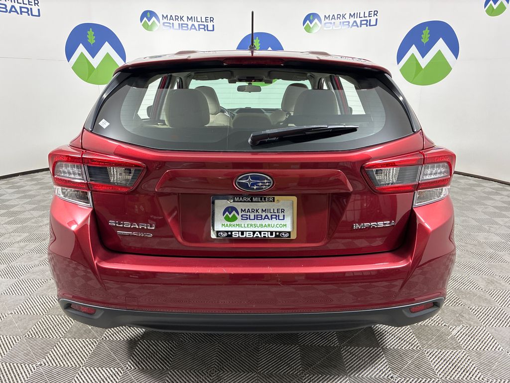 This 2023 Crimson Red Pearl Subaru Impreza AWD is well equipped and includes these features and benefits: Subaru Certified Pre-Owned Certified, 4 Speakers, 4-Wheel Disc Brakes, ABS brakes, Air Conditioning, AM/FM radio, Anti-whiplash front head restraints, Brake assist, Bumpers: body-color, Cloth Upholstery, Driver door bin, Driver vanity mirror, Dual front impact airbags, Dual front side impact airbags, Electronic Stability Control, Exterior Parking Camera Rear, Four wheel independent suspension, Front anti-roll bar, Front Bucket Seats, Front Center Armrest, Front reading lights, Illuminated entry, Knee airbag, Low tire pressure warning, Occupant sensing airbag, Outside temperature display, Overhead airbag, Overhead console, Panic alarm, Passenger door bin, Passenger vanity mirror, Power door mirrors, Power steering, Power windows, Radio data system, Radio: Subaru STARLINK 6.5" Multimedia System, Rear window defroster, Rear window wiper, Remote keyless entry, Security system, Speed control, Speed-sensing steering, Split folding rear seat, Spoiler, STARLINK/Apple CarPlay/Android Auto, Steering wheel mounted audio controls, Tachometer, Telescoping steering wheel, Tilt steering wheel, Traction control, Trip computer, Variably intermittent wipers, and Wheels: 16" x 6.5" Black Finish J Steel.