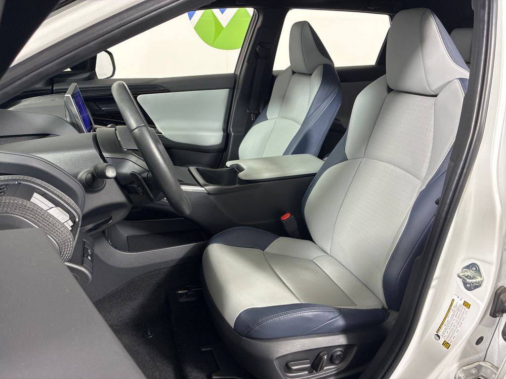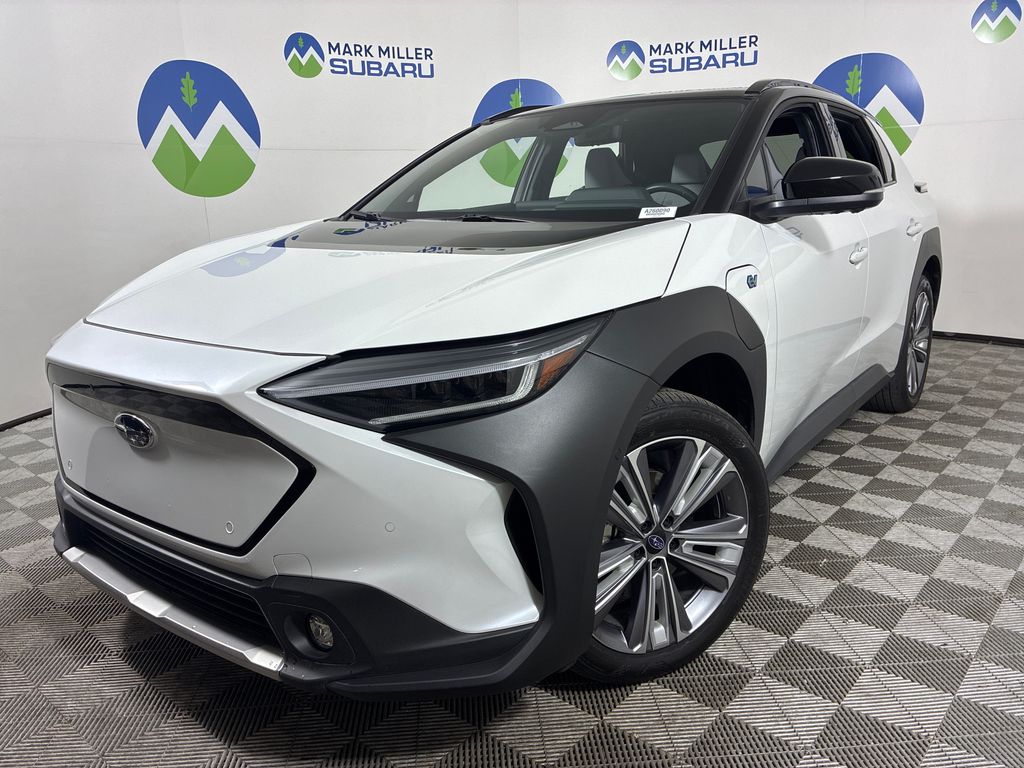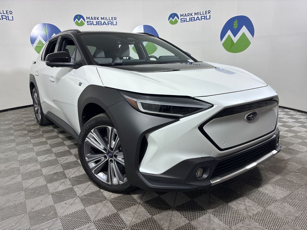 This 2023 Cosmic White Subaru Solterra Touring AWD is well equipped and includes these features and benefits: Standard Model, 11 Speakers, 13.8 Axle Ratio, 4-Wheel Disc Brakes, ABS brakes, Air Conditioning, Alloy wheels, AM/FM radio: SiriusXM, Auto High-beam Headlights, Auto-dimming Rear-View mirror, Automatic temperature control, Brake assist, Bumpers: body-color, Driver door bin, Driver vanity mirror, Dual front impact airbags, Dual front side impact airbags, Electronic Stability Control, Emergency communication system: Subaru Solterra Connect - Safety Connect (1 year trial included), Four wheel independent suspension, Front anti-roll bar, Front Bucket Seats, Front Center Armrest, Front dual zone A/C, Front fog lights, Front reading lights, Fully automatic headlights, Garage door transmitter: HomeLink, harman/kardon® Speakers, Heated & Ventilated Front Bucket Seats, Heated door mirrors, Heated front seats, Heated rear seats, Heated steering wheel, Illuminated entry, Knee airbag, Leather steering wheel, Low tire pressure warning, Memory seat, Navigation system: Cloud Navigation System (Subscription required), Occupant sensing airbag, Outside temperature display, Overhead airbag, Overhead console, Panic alarm, Passenger door bin, Passenger vanity mirror, Power door mirrors, Power driver seat, Power Liftgate, Power steering, Power windows, Radio data system, Radio: Subaru Solterra Connect 12.3" Multimedia System, Rain sensing wipers, Rear anti-roll bar, Rear reading lights, Rear seat center armrest, Rear window defroster, Remote keyless entry, Security system, Speed control, Speed-sensing steering, Split folding rear seat, Spoiler, StarTex Upholstery, Steering wheel mounted audio controls, Telescoping steering wheel, Tilt steering wheel, Traction control, Trip computer, Turn signal indicator mirrors, Variably intermittent wipers, Ventilated front seats, and Wheels: 20" x 7.5" J Aluminum-Alloy Gray Finish.