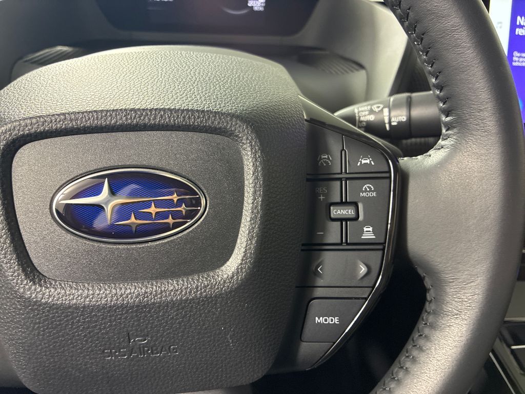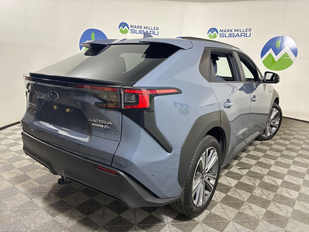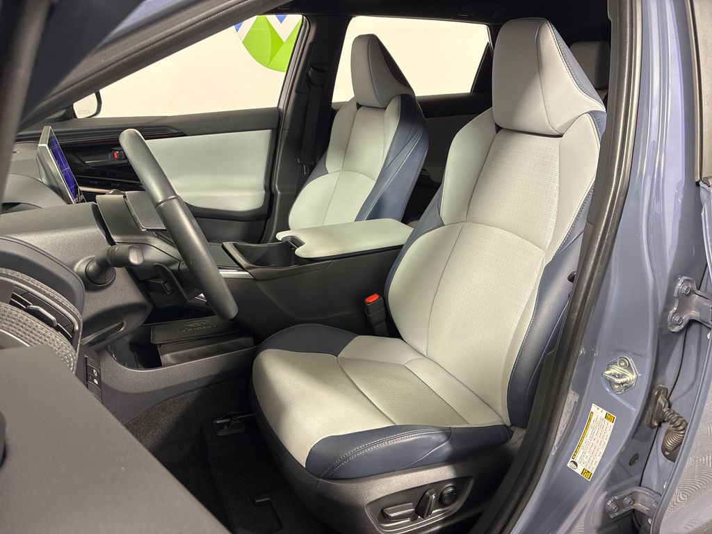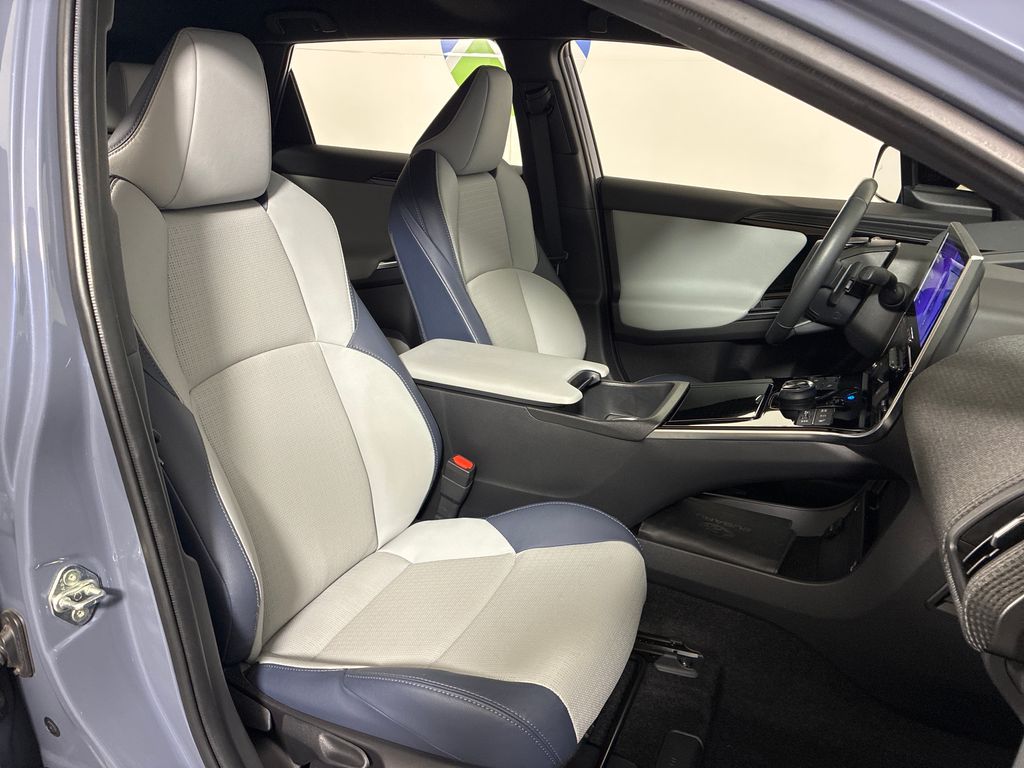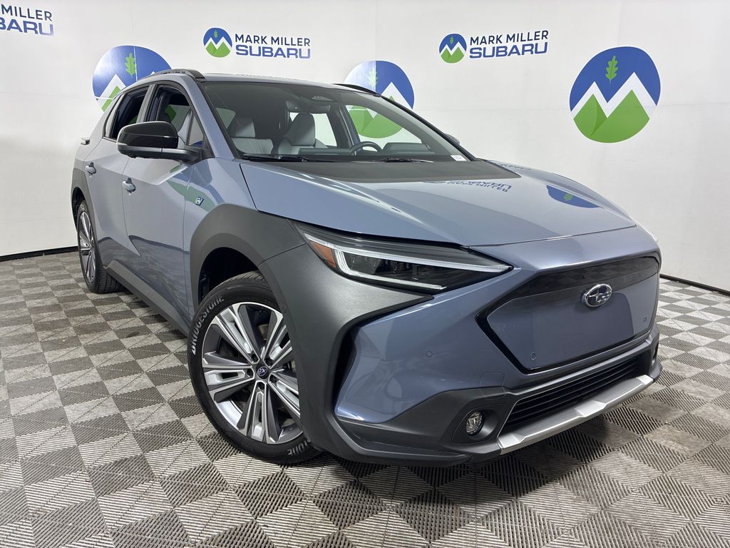 This 2023 Harbor Mist Gray Pearl Subaru Solterra Limited AWD is well equipped and includes these features and benefits: Standard Model, Subaru Certified Pre-Owned Certified, 11 Speakers, 13.8 Axle Ratio, 4-Wheel Disc Brakes, ABS brakes, Accessory Activity Mount, Air Conditioning, All-Weather Floor Liners, Alloy wheels, AM/FM radio: SiriusXM, Auto High-beam Headlights, Auto-dimming Rear-View mirror, Automatic temperature control, Brake assist, Bumpers: body-color, Cargo Cover, Driver door bin, Driver vanity mirror, Dual front impact airbags, Dual front side impact airbags, Electronic Stability Control, Emergency communication system: Subaru Solterra Connect - Safety Connect (1 year trial included), Four wheel independent suspension, Front anti-roll bar, Front Bucket Seats, Front Center Armrest, Front dual zone A/C, Front fog lights, Front reading lights, Fully automatic headlights, Garage door transmitter: HomeLink, harman/kardon® Speakers, Heated door mirrors, Heated Front Bucket Seats, Heated front seats, Heated rear seats, Heated steering wheel, Illuminated entry, Knee airbag, Leather steering wheel, Low tire pressure warning, Memory seat, Navigation system: Cloud Navigation System (Subscription required), Occupant sensing airbag, Outside temperature display, Overhead airbag, Overhead console, Panic alarm, Passenger door bin, Passenger vanity mirror, Power door mirrors, Power driver seat, Power Liftgate, Power steering, Power windows, Radio data system, Radio: Subaru Solterra Connect 12.3" Multimedia System, Rain sensing wipers, Rear anti-roll bar, Rear reading lights, Rear seat center armrest, Rear window defroster, Remote keyless entry, Security system, Speed control, Speed-sensing steering, Split folding rear seat, Spoiler, StarTex Upholstery, Steering wheel mounted audio controls, Telescoping steering wheel, Tilt steering wheel, Traction control, Trip computer, Turn signal indicator mirrors, Variably intermittent wipers, and Wheels: 20" x 7.5" J Aluminum-Alloy Gray Finish.