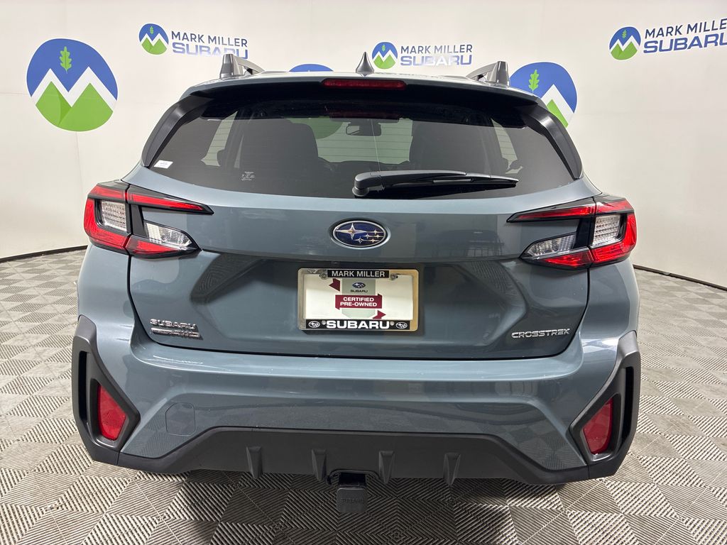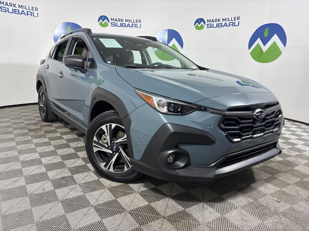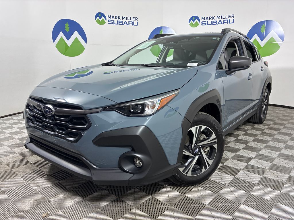 This 2024 Offshore Blue Metallic Subaru Crosstrek Premium AWD is well equipped and includes these features and benefits: All-Weather Package (Heated Exterior Mirrors, Heated Front Seats, and Heated Wipers), BSD/RCTA & Moonrf & All Weather Pkg & Pwr Dr. Seat (10-Way Power Driver's Seat, Blind Spot Detection w/Rear Cross-Traffic Alert, and Power Moonroof), 3.90 Axle Ratio, 4-Wheel Disc Brakes, 6 Speakers, ABS brakes, Air Conditioning, All-Weather Floor Liners, Alloy wheels, AM/FM radio: SiriusXM, Anti-whiplash front head restraints, Auto High-beam Headlights, Automatic temperature control, Brake assist, Bumpers: body-color, Driver door bin, Driver vanity mirror, Dual front impact airbags, Dual front side impact airbags, Electronic Stability Control, Emergency communication system: STARLINK Safety and Security (Subscription Required), Exterior Parking Camera Rear, Four wheel independent suspension, Front anti-roll bar, Front Bucket Seats, Front Center Armrest, Front dual zone A/C, Front fog lights, Front reading lights, Fully automatic headlights, Illuminated entry, Knee airbag, Low tire pressure warning, Occupant sensing airbag, Outside temperature display, Overhead airbag, Overhead console, Panic alarm, Passenger door bin, Passenger vanity mirror, Power door mirrors, Power steering, Power windows, Premium Cloth Upholstery, Radio data system, Radio: Subaru STARLINK 11.6" Multimedia Plus Sys, Rear anti-roll bar, Rear seat center armrest, Rear window defroster, Rear window wiper, Remote keyless entry, Security system, Speed control, Speed-sensing steering, Split folding rear seat, Spoiler, STARLINK/Apple CarPlay/Android Auto, Steering wheel mounted audio controls, Tachometer, Telescoping steering wheel, Tilt steering wheel, Traction control, Trip computer, Turn signal indicator mirrors, Variably intermittent wipers, and Wheels: 17" x 7.0J Dark Gray Aluminum Alloy.