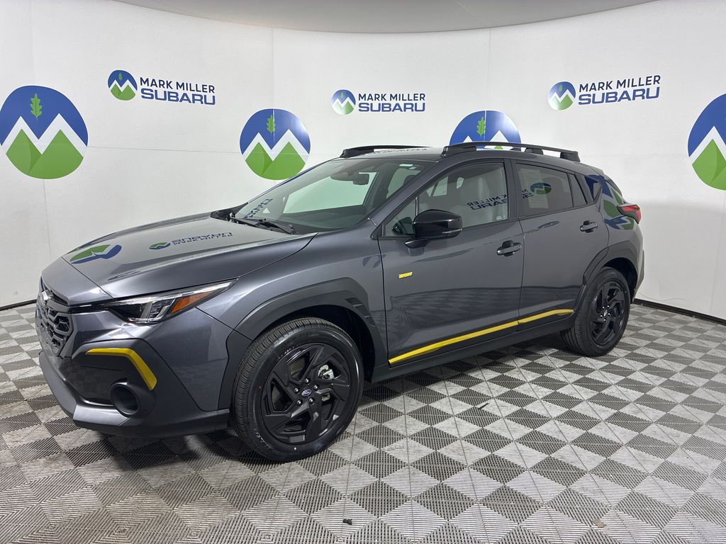 This 2025 Magnetite Gray Metallic Subaru Crosstrek Sport AWD is well equipped and includes these features and benefits: Crosstrek Mirror Package (Auto-Dimming Exterior Mirror w/Approach Light and Auto-Dimming Mirror w/Compass & HomeLink), Standard Model, Subaru Certified Pre-Owned Certified, 4-Wheel Disc Brakes, 6 Speakers, ABS brakes, Air Conditioning, All-Weather Floor Liners, Alloy wheels, AM/FM radio: SiriusXM, Anti-whiplash front head restraints, Auto High-beam Headlights, Automatic temperature control, Brake assist, Bumpers: body-color, Driver door bin, Driver vanity mirror, Dual front impact airbags, Dual front side impact airbags, Electronic Stability Control, Emergency communication system, Exterior Parking Camera Rear, Four wheel independent suspension, Front anti-roll bar, Front Bucket Seats, Front Center Armrest, Front dual zone A/C, Front fog lights, Front reading lights, Fully automatic headlights, Heated door mirrors, Heated Front Bucket Seats, Heated front seats, Illuminated entry, Knee airbag, Leather Shift Knob, Leather steering wheel, Low tire pressure warning, Occupant sensing airbag, Outside temperature display, Overhead airbag, Overhead console, Panic alarm, Passenger door bin, Passenger vanity mirror, Power door mirrors, Power steering, Power windows, Radio data system, Radio: Subaru 11.6" Multimedia Plus System, Rear anti-roll bar, Rear Bumper Cover, Rear seat center armrest, Rear window defroster, Rear window wiper, Remote keyless entry, Security system, Speed control, Speed-sensing steering, Split folding rear seat, Spoiler, Sport Cloth Upholstery, Steering wheel mounted audio controls, Tachometer, Telescoping steering wheel, Tilt steering wheel, Traction control, Trip computer, Turn signal indicator mirrors, Variably intermittent wipers, and Wheels: 18" x 7.0" J Dark Gray Aluminum-Alloy.