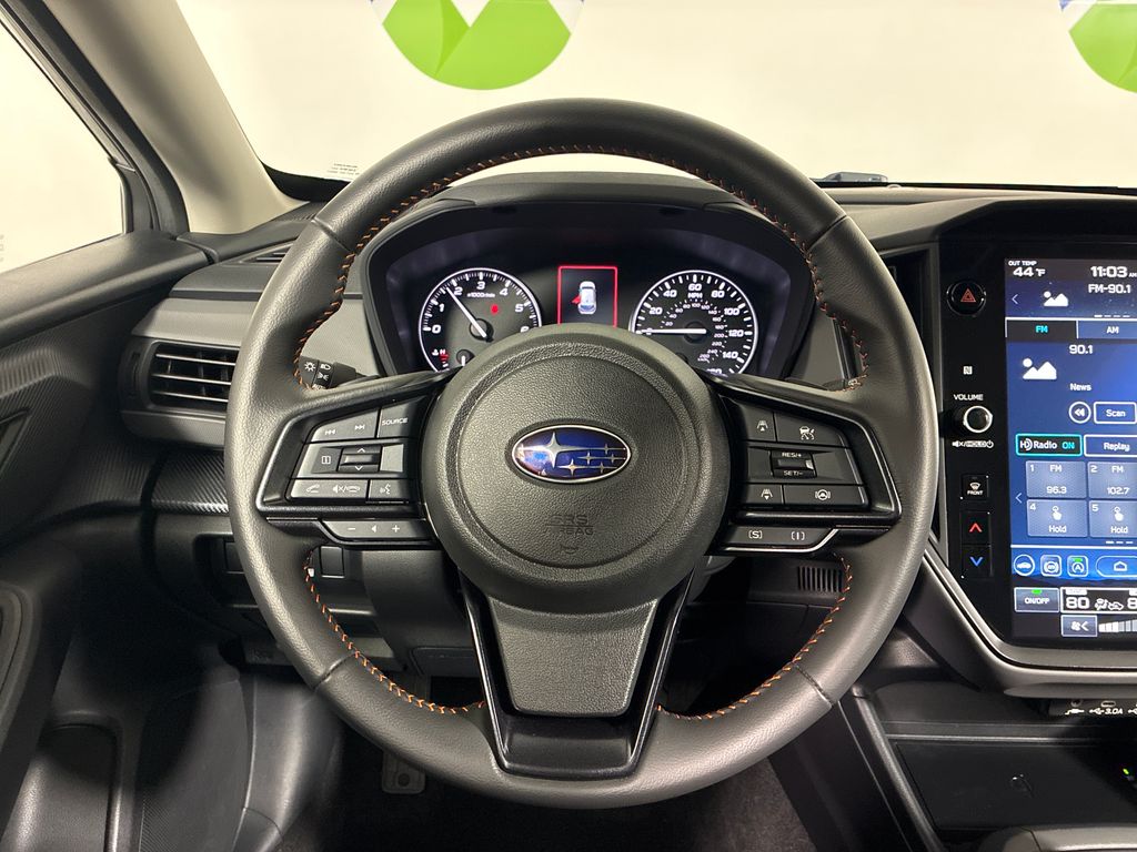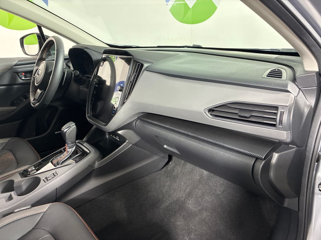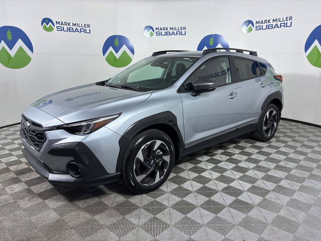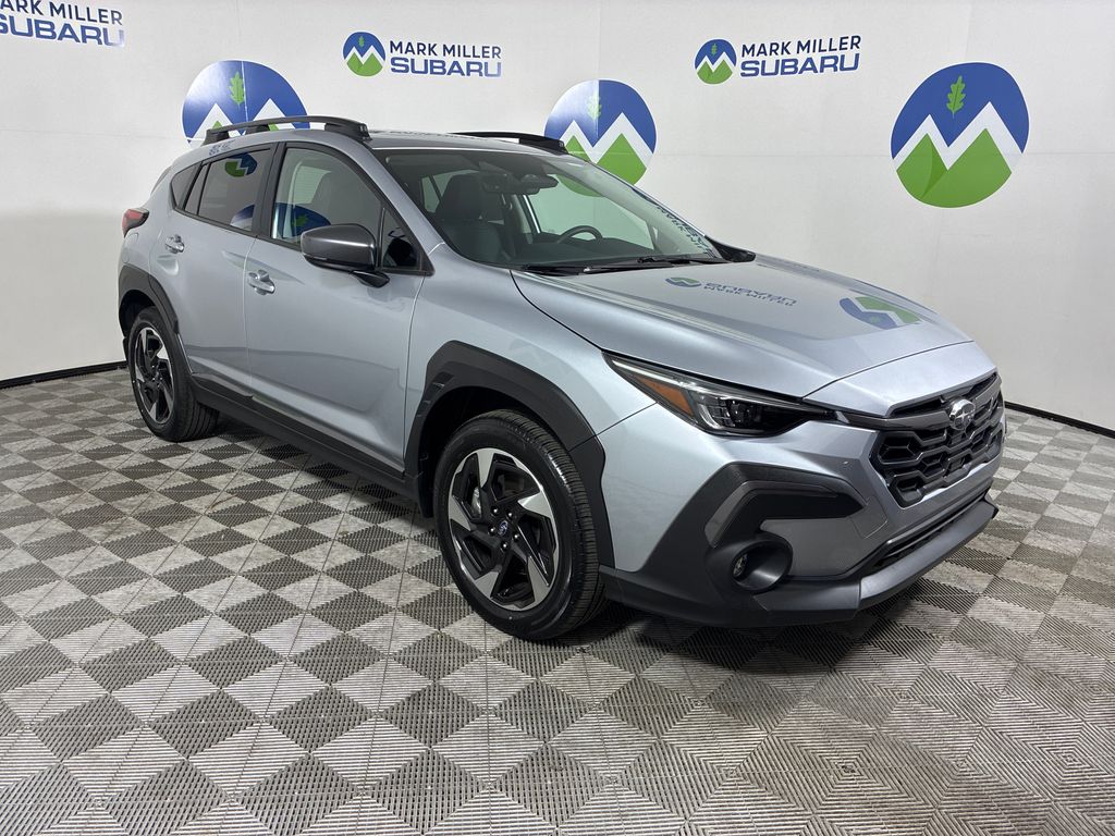 This 2025 Ice Silver Metallic Subaru Crosstrek Limited AWD is well equipped and includes these features and benefits: harman/kardon Audio & Power Moonroof (harman/kardon Surround Sound Speaker System and Power Moonroof), Popular Package #4A (All-Weather Floor Liners, Auto-Dimming Exterior Mirror w/Approach Light, Auto-Dimming Mirror w/Compass & HomeLink, Rear Bumper Cover, and Splash Guards), Subaru Certified Pre-Owned Certified, 4-Wheel Disc Brakes, 6 Speakers, ABS brakes, Air Conditioning, Alloy wheels, AM/FM radio: SiriusXM, Anti-whiplash front head restraints, Auto High-beam Headlights, Automatic temperature control, Brake assist, Bumpers: body-color, Driver door bin, Driver vanity mirror, Dual front impact airbags, Dual front side impact airbags, Electronic Stability Control, Emergency communication system, Exterior Parking Camera Rear, Four wheel independent suspension, Front anti-roll bar, Front Bucket Seats, Front Center Armrest, Front dual zone A/C, Front fog lights, Front reading lights, Fully automatic headlights, Heated door mirrors, Heated Front Bucket Seats, Heated front seats, Illuminated entry, Knee airbag, Leather Shift Knob, Leather steering wheel, Leather-Trimmed Upholstery, LED Upgrade, Low tire pressure warning, Occupant sensing airbag, Outside temperature display, Overhead airbag, Overhead console, Panic alarm, Passenger door bin, Passenger vanity mirror, Power door mirrors, Power driver seat, Power steering, Power windows, Radio data system, Radio: Subaru 11.6" Multimedia Plus System, Rear anti-roll bar, Rear seat center armrest, Rear window defroster, Rear window wiper, Remote keyless entry, Security system, Speed control, Speed-sensing steering, Split folding rear seat, Spoiler, Steering wheel mounted audio controls, Tachometer, Telescoping steering wheel, Tilt steering wheel, Traction control, Trip computer, Turn signal indicator mirrors, Variably intermittent wipers, and Wheels: 18" x 7.0" J Machine Finish Aluminum-Alloy.