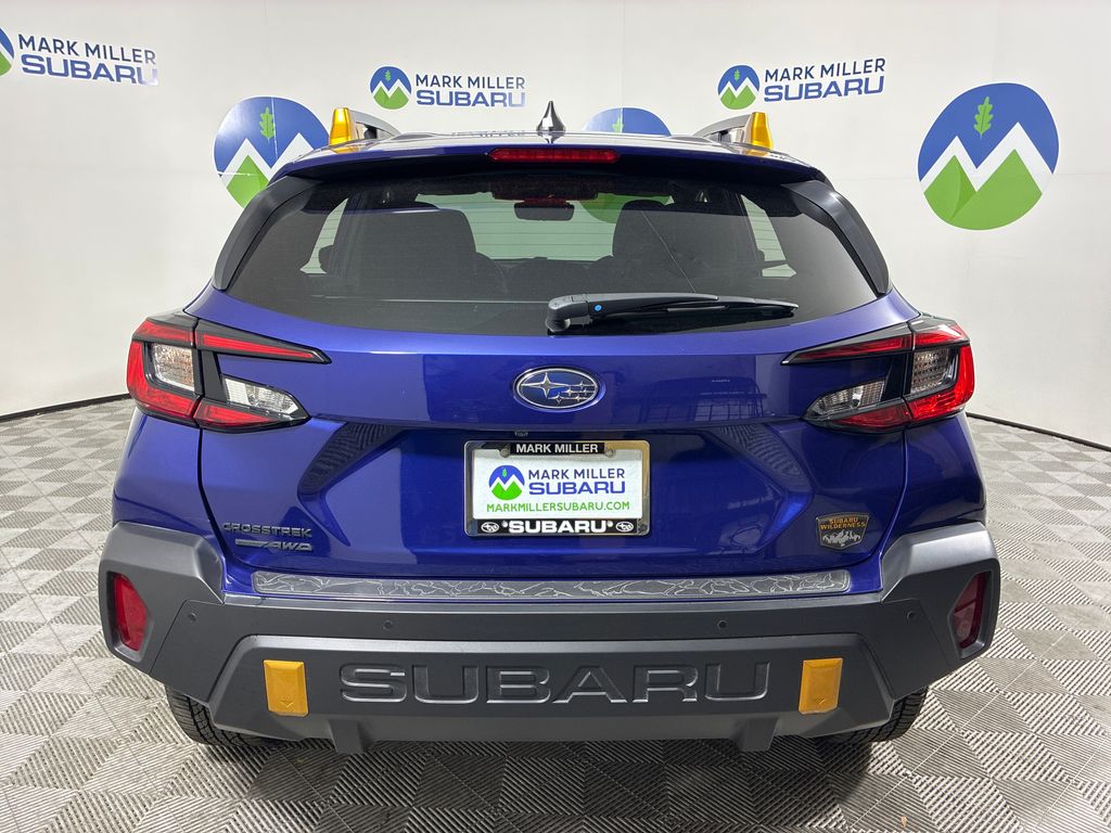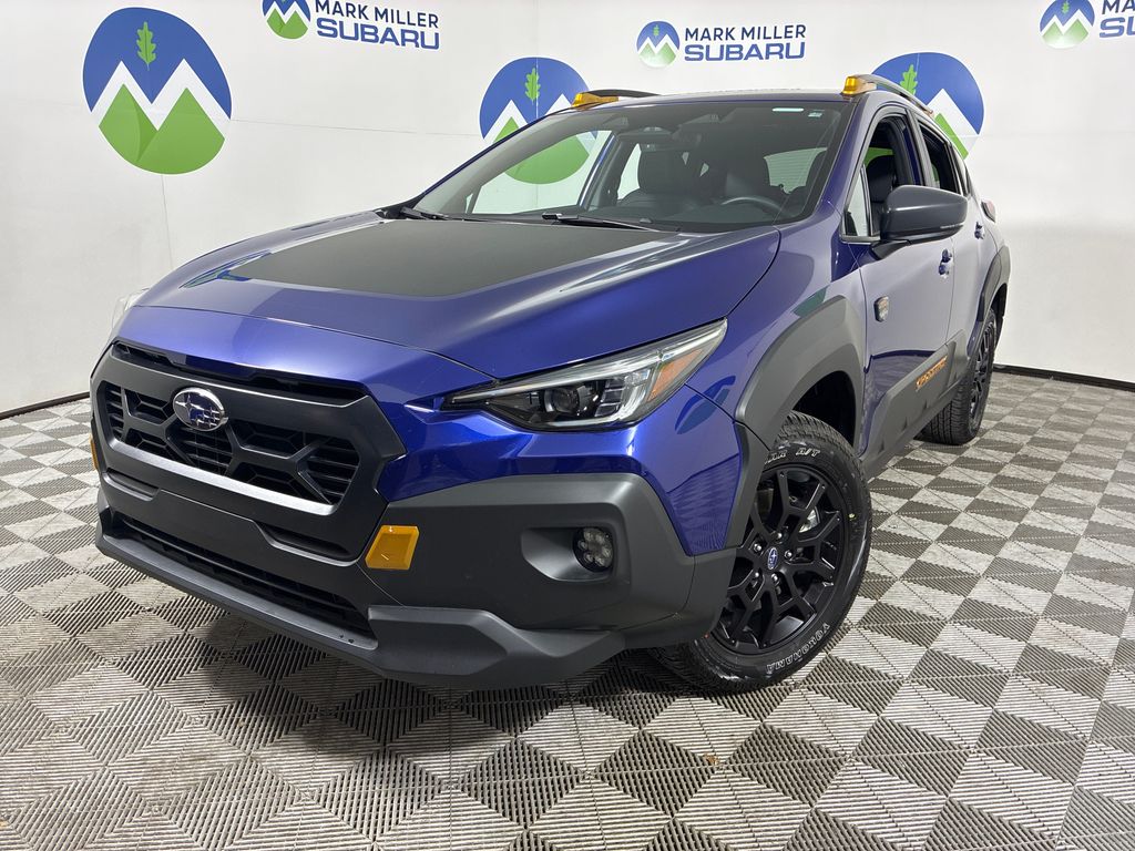 This 2025 Sapphire Blue Pearl Subaru Crosstrek Wilderness AWD is well equipped and includes these features and benefits: H/K Speaker System & Pwr Moonroof & Pwr Driver St (10-Way Power Driver's Seat, harman/kardon Surround Sound Speaker System, and Power Moonroof), Wilderness Package (Auto-Dimming Exterior Mirror w/Approach Light, Auto-Dimming Mirror w/Compass & HomeLink, LED Upgrade, Rear Bumper Cover - Wilderness, and Rear Seatback Protector), Subaru Certified Pre-Owned Certified, 4-Wheel Disc Brakes, 6 Speakers, ABS brakes, Air Conditioning, Alloy wheels, AM/FM radio: SiriusXM, Anti-whiplash front head restraints, Auto High-beam Headlights, Automatic temperature control, Brake assist, Bumpers: body-color, Driver door bin, Driver vanity mirror, Dual front impact airbags, Dual front side impact airbags, Electronic Stability Control, Emergency communication system, Exterior Parking Camera Rear, Four wheel independent suspension, Front anti-roll bar, Front Bucket Seats, Front Center Armrest, Front dual zone A/C, Front fog lights, Front reading lights, Fully automatic headlights, Heated door mirrors, Heated Front Bucket Seats, Heated front seats, Illuminated entry, Knee airbag, Leather Shift Knob, Leather steering wheel, Low tire pressure warning, Occupant sensing airbag, Outside temperature display, Overhead airbag, Overhead console, Panic alarm, Passenger door bin, Passenger vanity mirror, Power door mirrors, Power steering, Power windows, Radio data system, Radio: Subaru 11.6" Multimedia Plus System, Rear anti-roll bar, Rear seat center armrest, Rear window defroster, Rear window wiper, Remote keyless entry, Security system, Speed control, Speed-sensing steering, Split folding rear seat, Spoiler, Steering wheel mounted audio controls, Tachometer, Telescoping steering wheel, Tilt steering wheel, Traction control, Trip computer, Turn signal indicator mirrors, Variably intermittent wipers, Wheels: 17" x 7.0" J Matte Black Aluminum-Alloy, and Wilderness StarTex Upholstery.
