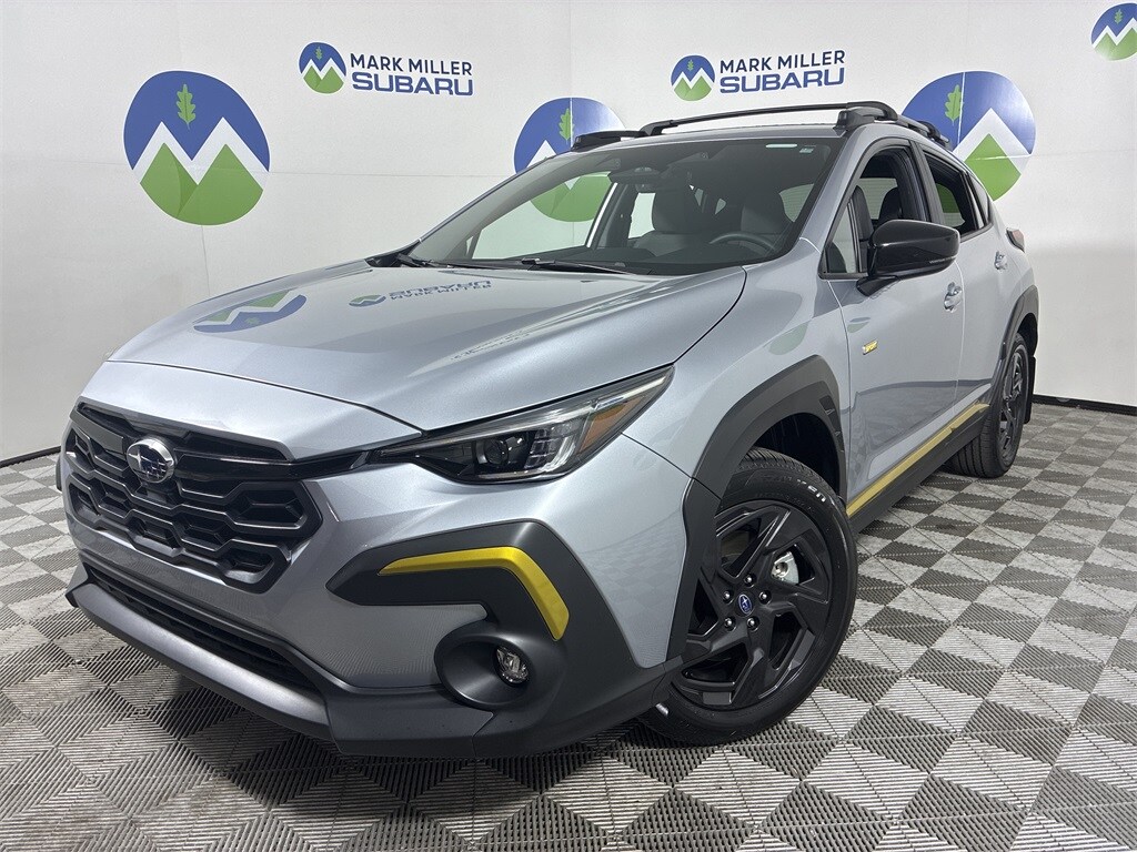 This 2025 Ice Silver Metallic Subaru Crosstrek Sport AWD is well equipped and includes these features and benefits: Crosstrek Mirror Package (Auto-Dimming Exterior Mirror w/Approach Light and Auto-Dimming Mirror w/Compass & HomeLink), Standard Model, Subaru Certified Pre-Owned Certified, 4-Wheel Disc Brakes, 6 Speakers, ABS brakes, Air Conditioning, All-Weather Floor Liners, Alloy wheels, AM/FM radio: SiriusXM, Anti-whiplash front head restraints, Auto High-beam Headlights, Automatic temperature control, Brake assist, Bumpers: body-color, Driver door bin, Driver vanity mirror, Dual front impact airbags, Dual front side impact airbags, Electronic Stability Control, Exterior Parking Camera Rear, Four wheel independent suspension, Front anti-roll bar, Front Bucket Seats, Front Center Armrest, Front dual zone A/C, Front fog lights, Front reading lights, Fully automatic headlights, Heated door mirrors, Heated Front Bucket Seats, Heated front seats, Illuminated entry, Knee airbag, Leather Shift Knob, Leather steering wheel, LED Upgrade, Low tire pressure warning, Occupant sensing airbag, Outside temperature display, Overhead airbag, Overhead console, Panic alarm, Passenger door bin, Passenger vanity mirror, Power door mirrors, Power steering, Power windows, Radio data system, Rear anti-roll bar, Rear Bumper Cover, Rear seat center armrest, Rear window defroster, Rear window wiper, Remote keyless entry, Security system, Speed control, Speed-sensing steering, Split folding rear seat, Spoiler, Sport Cloth Upholstery, Steering wheel mounted audio controls, Tachometer, Telescoping steering wheel, Tilt steering wheel, Traction control, Trip computer, Turn signal indicator mirrors, Variably intermittent wipers, and Wheels: 18" x 7.0" J Dark Gray Aluminum-Alloy.