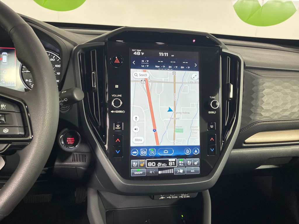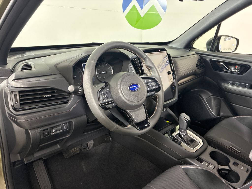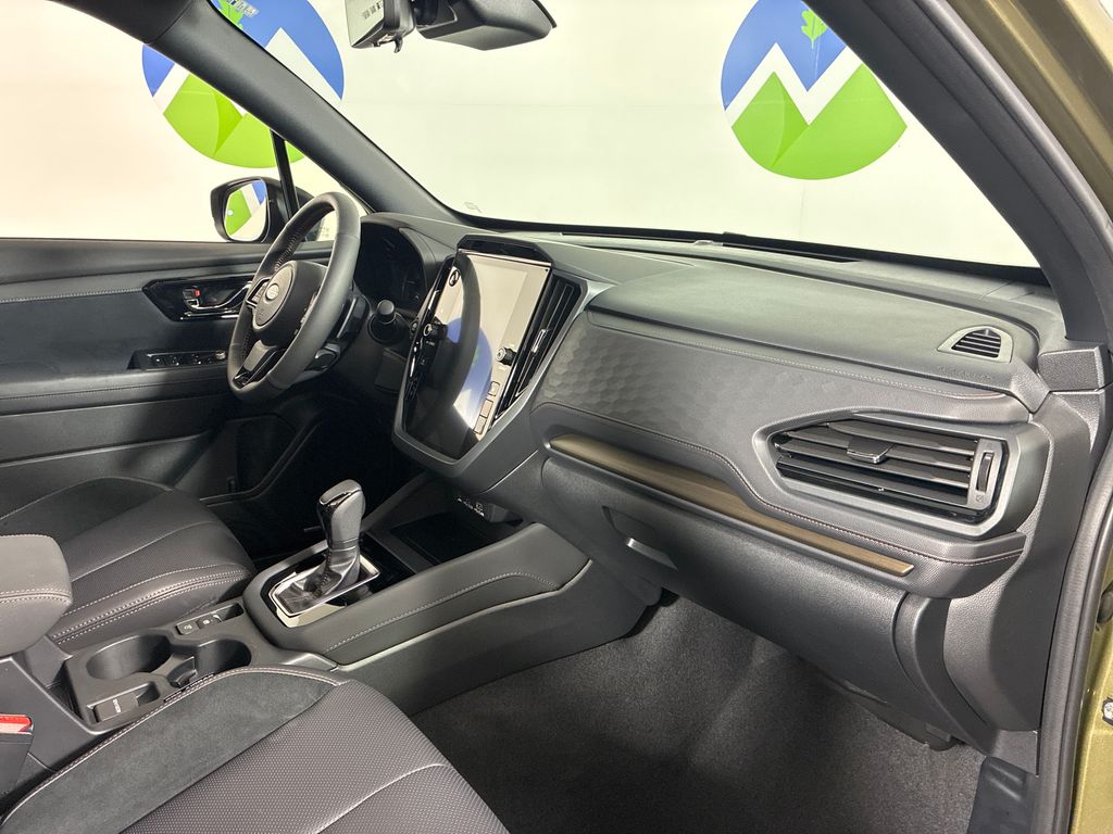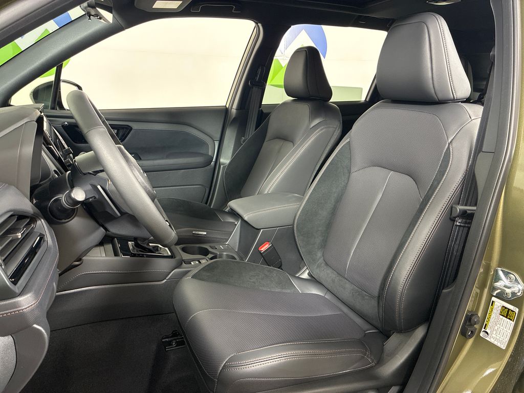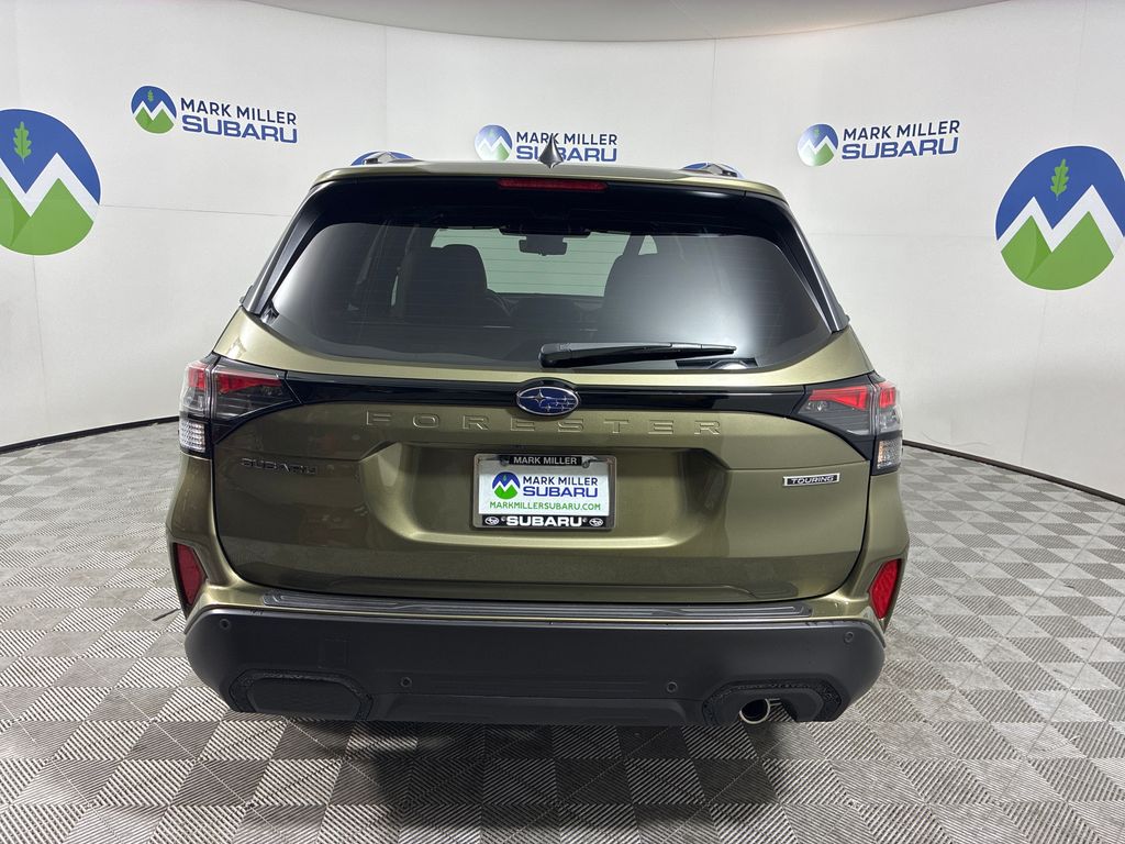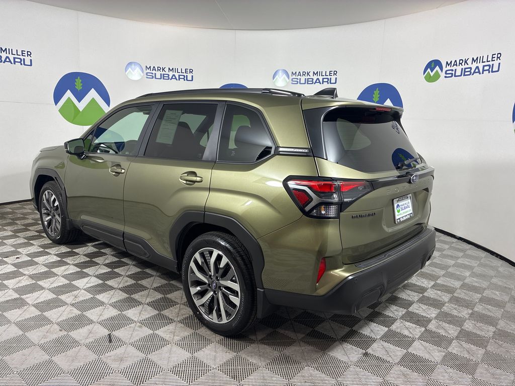 This 2025 Autumn Green Metallic Subaru Forester Touring AWD is well equipped and includes these features and benefits: Protection Package (All-Weather Floor Liners, Cargo Tray, Rear Bumper Cover, and Splash Guards), Standard Model, Subaru Certified Pre-Owned Certified, 11 Speakers, 4-Wheel Disc Brakes, ABS brakes, Air Conditioning, Alloy wheels, AM/FM radio: SiriusXM with 360L, Anti-whiplash front head restraints, Auto High-beam Headlights, Auto-Dimming Exterior Mirror w/Approach Light, Automatic temperature control, Brake assist, Bumpers: body-color, Driver door bin, Driver vanity mirror, Dual front impact airbags, Dual front side impact airbags, Electronic Stability Control, Emergency communication system: MySubaru Safety (3-year free trial), Exterior Parking Camera Rear, Four wheel independent suspension, Front anti-roll bar, Front Bucket Seats, Front Center Armrest, Front dual zone A/C, Front fog lights, Front reading lights, Fully automatic headlights, harman/kardon® Speakers, Heated & Ventilated Front Bucket Seats, Heated door mirrors, Heated front seats, Heated rear seats, Heated steering wheel, HVAC memory, Illuminated entry, Knee airbag, Leather steering wheel, LED Upgrade, Low tire pressure warning, Memory seat, Navigation System, Occupant sensing airbag, Outside temperature display, Overhead airbag, Overhead console, Panic alarm, Passenger door bin, Passenger vanity mirror, Perforated Leather-Trimmed Upholstery, Power door mirrors, Power driver seat, Power Liftgate, Power moonroof: Panoramic, Power passenger seat, Power steering, Power windows, Radio data system, Radio: Subaru 11.6" Multimedia Navigation System, Rear anti-roll bar, Rear seat center armrest, Rear window defroster, Rear window wiper, Remote keyless entry, Security system, Speed control, Speed-sensing steering, Split folding rear seat, Spoiler, Steering wheel mounted audio controls, Tachometer, Telescoping steering wheel, Tilt steering wheel, Traction control, Trip computer, Turn signal indicator mirrors, Variably intermittent wipers, Ventilated front seats, and Wheels: 19" x 7.5 J Dark Gray Aluminum-Alloy.