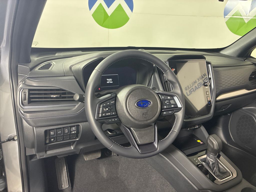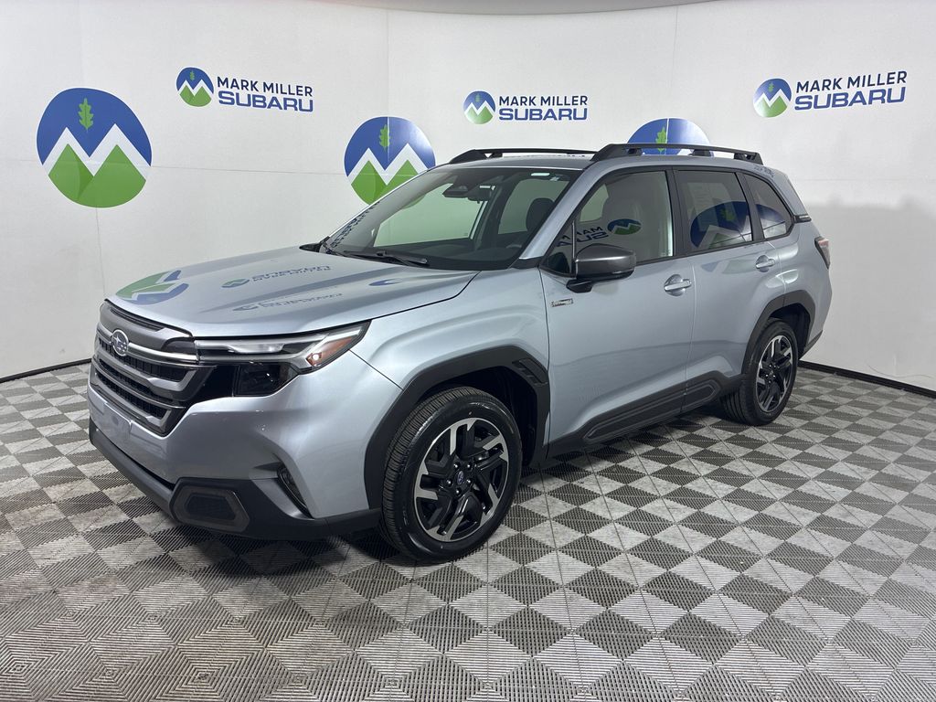 This 2025 Ice Silver Metallic Subaru Forester Hybrid Limited AWD is well equipped and includes these features and benefits: Standard Model, Subaru Certified Pre-Owned Certified, 2.5L 4-Cylinder DOHC 16V, 11 Speakers, 4-Wheel Disc Brakes, ABS brakes, Air Conditioning, Alloy wheels, AM/FM radio: SiriusXM with 360L, Anti-whiplash front head restraints, Auto High-beam Headlights, Automatic temperature control, Brake assist, Bumpers: body-color, Compass, Driver door bin, Driver vanity mirror, Dual front impact airbags, Dual front side impact airbags, Electronic Stability Control, Emergency communication system: MySubaru Safety (3-year free trial), Exterior Parking Camera Rear, Four wheel independent suspension, Front anti-roll bar, Front Bucket Seats, Front Center Armrest, Front dual zone A/C, Front fog lights, Front reading lights, Fully automatic headlights, harman/kardon® Speakers, Heated door mirrors, Heated Front Bucket Seats, Heated front seats, Illuminated entry, Knee airbag, Low tire pressure warning, Navigation system: TomTom Navigation w/what3words, Occupant sensing airbag, Outside temperature display, Overhead airbag, Overhead console, Panic alarm, Passenger door bin, Passenger vanity mirror, Power door mirrors, Power driver seat, Power Liftgate, Power moonroof: Panoramic, Power passenger seat, Power steering, Power windows, Radio data system, Radio: Subaru 11.6" Multimedia Navigation System, Rear anti-roll bar, Rear seat center armrest, Rear window defroster, Rear window wiper, Remote keyless entry, Security system, Speed control, Speed-sensing steering, Split folding rear seat, Spoiler, StarTex Upholstery, Steering wheel mounted audio controls, Tachometer, Telescoping steering wheel, Tilt steering wheel, Traction control, Trip computer, Turn signal indicator mirrors, Variably intermittent wipers, and Wheels: 18" x 7.0 J Dark Metallic Aluminum-Alloy.