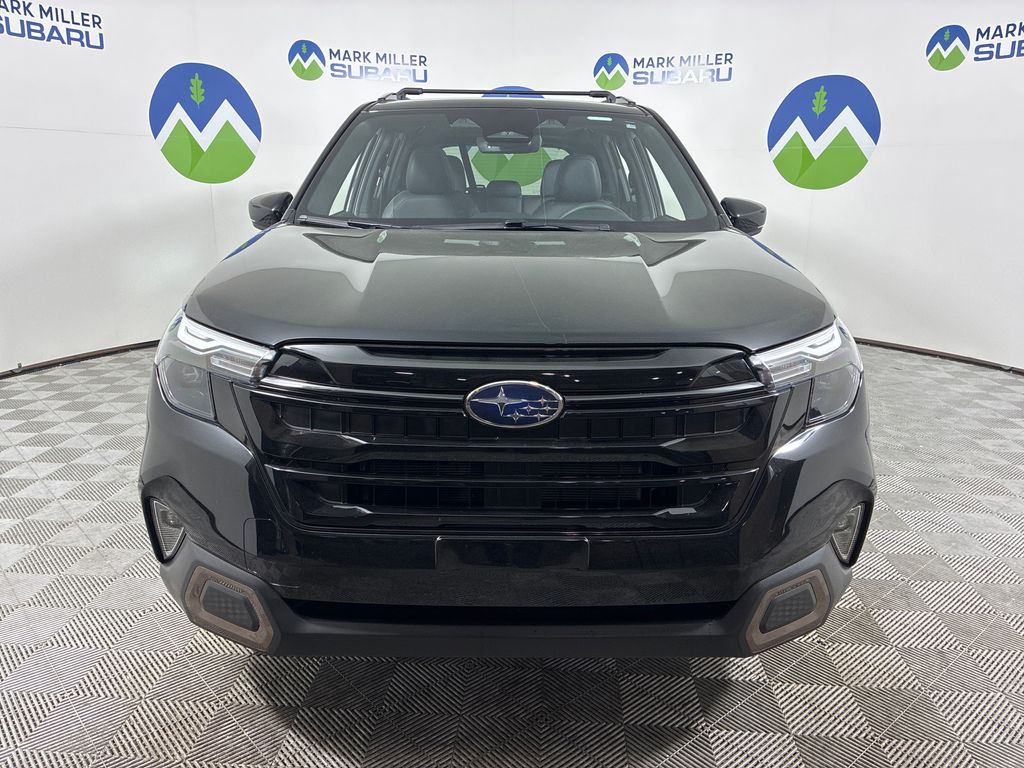 This 2025 Crystal Black Silica Subaru Forester Sport AWD is well equipped and includes these features and benefits: Standard Model, Subaru Certified Pre-Owned Certified, 4-Wheel Disc Brakes, 6 Speakers, ABS brakes, Air Conditioning, All-Weather Floor Liners, Alloy wheels, AM/FM radio: SiriusXM with 360L, Anti-whiplash front head restraints, Auto High-beam Headlights, Auto-Dimming Exterior Mirror w/Approach Light, Auto-Dimming Mirror w/Compass & HomeLink, Automatic temperature control, Brake assist, Bumpers: body-color, Driver door bin, Driver vanity mirror, Dual front impact airbags, Dual front side impact airbags, Electronic Stability Control, Emergency communication system: MySubaru Safety (3-year free trial), Exterior Parking Camera Rear, Four wheel independent suspension, Front anti-roll bar, Front Bucket Seats, Front Center Armrest, Front dual zone A/C, Front fog lights, Front reading lights, Fully automatic headlights, Heated door mirrors, Heated Front Bucket Seats, Heated front seats, Illuminated entry, Knee airbag, Leather steering wheel, Low tire pressure warning, Occupant sensing airbag, Outside temperature display, Overhead airbag, Overhead console, Panic alarm, Passenger door bin, Passenger vanity mirror, Power door mirrors, Power driver seat, Power moonroof: Panoramic, Power steering, Power windows, Radio data system, Radio: Subaru 11.6" Multimedia Plus System, Rear anti-roll bar, Rear Bumper Cover, Rear seat center armrest, Rear window defroster, Rear window wiper, Remote keyless entry, Security system, Speed control, Speed-sensing steering, Split folding rear seat, Spoiler, Sport StarTex Upholstery, Steering wheel mounted audio controls, Tachometer, Telescoping steering wheel, Tilt steering wheel, Traction control, Trip computer, Turn signal indicator mirrors, Variably intermittent wipers, and Wheels: 19" x 7.5 J Bronze Finish Aluminum-Alloy.