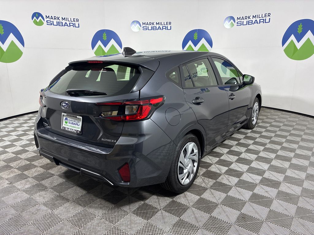 This 2025 Magnetite Gray Metallic Subaru Impreza AWD is well equipped and includes these features and benefits: Standard Model, Subaru Certified Pre-Owned Certified, 4 Speakers, 4-Wheel Disc Brakes, ABS brakes, Air Conditioning, All-Weather Floor Liners, AM/FM radio: SiriusXM, Anti-whiplash front head restraints, Auto High-beam Headlights, Automatic temperature control, Brake assist, Bumpers: body-color, Cloth Upholstery, Driver door bin, Driver vanity mirror, Dual front impact airbags, Dual front side impact airbags, Electronic Stability Control, Exterior Parking Camera Rear, Four wheel independent suspension, Front anti-roll bar, Front Bucket Seats, Front Center Armrest, Front dual zone A/C, Front reading lights, Fully automatic headlights, Illuminated entry, Knee airbag, Low tire pressure warning, Occupant sensing airbag, Outside temperature display, Overhead airbag, Overhead console, Panic alarm, Passenger door bin, Passenger vanity mirror, Power door mirrors, Power steering, Power windows, Radio data system, Radio: Subaru Dual 7" Multimedia System, Rear window defroster, Rear window wiper, Remote keyless entry, Security system, Speed control, Speed-sensing steering, Split folding rear seat, Spoiler, Steering wheel mounted audio controls, Tachometer, Telescoping steering wheel, Tilt steering wheel, Traction control, Trip computer, Variably intermittent wipers, and Wheels: 16" x 6.0" 1/2J Steel w/Full Cap.