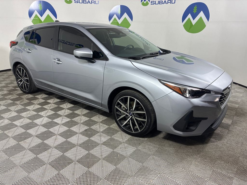 This 2025 Ice Silver Metallic Subaru Impreza Sport AWD is well equipped and includes these features and benefits: Standard Model, Subaru Certified Pre-Owned Certified, 4-Wheel Disc Brakes, 6 Speakers, ABS brakes, Air Conditioning, All-Weather Floor Liners, Alloy wheels, AM/FM radio: SiriusXM with 360L, Anti-whiplash front head restraints, Auto High-beam Headlights, Auto-Dimming Mirror w/Compass & HomeLink, Automatic temperature control, Brake assist, Bumpers: body-color, Driver door bin, Driver vanity mirror, Dual front impact airbags, Dual front side impact airbags, Electronic Stability Control, Emergency communication system, Exterior Parking Camera Rear, Four wheel independent suspension, Front anti-roll bar, Front Bucket Seats, Front Center Armrest, Front dual zone A/C, Front fog lights, Front reading lights, Fully automatic headlights, Illuminated entry, Knee airbag, Low tire pressure warning, Occupant sensing airbag, Outside temperature display, Overhead airbag, Overhead console, Panic alarm, Passenger door bin, Passenger vanity mirror, Power door mirrors, Power steering, Power windows, Premium Sport Cloth Upholstery, Radio data system, Radio: Subaru 11.6" Multimedia Plus System, Rear anti-roll bar, Rear Bumper Applique, Rear seat center armrest, Rear window defroster, Rear window wiper, Remote keyless entry, Security system, Speed control, Speed-sensing steering, Split folding rear seat, Spoiler, Steering wheel mounted audio controls, Tachometer, Telescoping steering wheel, Tilt steering wheel, Traction control, Trip computer, Turn signal indicator mirrors, Variably intermittent wipers, and Wheels: 18" x 7.0" J Machine Finish Aluminum-Alloy.