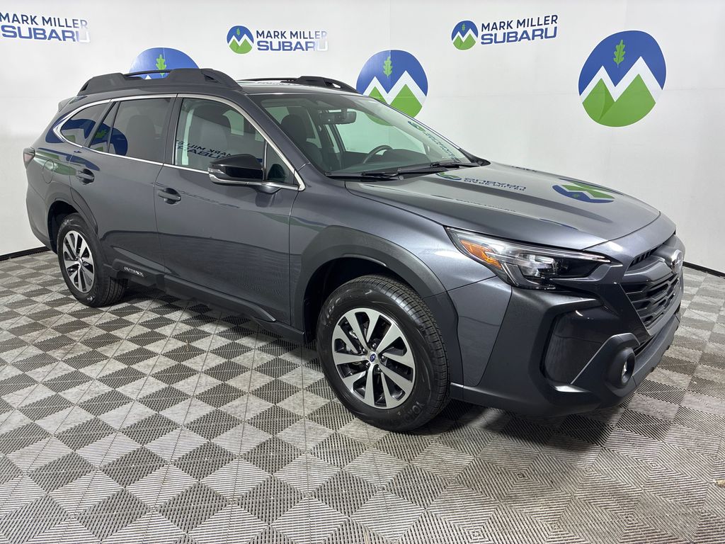 This 2025 Magnetite Gray Metallic Subaru Outback Premium AWD is well equipped and includes these features and benefits: BSD & RCTA & Keyless Access & Push Button Start (Blind Spot Detection (BSD), Hands-Free Power Rear Gate, Keyless Access w/Push Button Start, Power Moonroof, Radio: Subaru 11.6" Multimedia System w/Navigation, and Rear Cross Traffic Alert (RCTA)), Popular Package #1A (All-Weather Floor Liners, Auto-Dimming Mirror w/Compass & HomeLink, and Rear Bumper Cover), Subaru Certified Pre-Owned Certified, 4-Wheel Disc Brakes, 6 Speakers, ABS brakes, Air Conditioning, Alloy wheels, AM/FM radio: SiriusXM with 360L, Apple CarPlay & Android Auto, Auto High-beam Headlights, Auto-Dimming Exterior Mirror w/Approach Light, Automatic temperature control, Brake assist, Bumpers: body-color, Cloth Upholstery, Driver door bin, Driver vanity mirror, Dual front impact airbags, Dual front side impact airbags, Electronic Stability Control, Emergency communication system: MySubaru Safety (3-year free trial), Exterior Parking Camera Rear, Four wheel independent suspension, Front anti-roll bar, Front Bucket Seats, Front Center Armrest w/Storage, Front dual zone A/C, Front fog lights, Front reading lights, Fully automatic headlights, Heated door mirrors, Heated Front Bucket Seats, Heated front seats, Illuminated entry, Knee airbag, Leather Shift Knob, Leather steering wheel, Low tire pressure warning, Occupant sensing airbag, Outside temperature display, Overhead airbag, Overhead console, Panic alarm, Passenger door bin, Passenger vanity mirror, Power door mirrors, Power driver seat, Power steering, Power windows, Radio: Subaru 11.6" Multimedia Plus System, Rear anti-roll bar, Rear seat center armrest, Rear window defroster, Rear window wiper, Remote keyless entry, Roof rack, Security system, Speed control, Speed-sensing steering, Split folding rear seat, Spoiler, Steering wheel mounted audio controls, Tachometer, Telescoping steering wheel, Tilt steering wheel, Traction control, Trip computer, Turn signal indicator mirrors, Variably intermittent wipers, and Wheels: 17" x 7J Black Aluminum-Alloy.