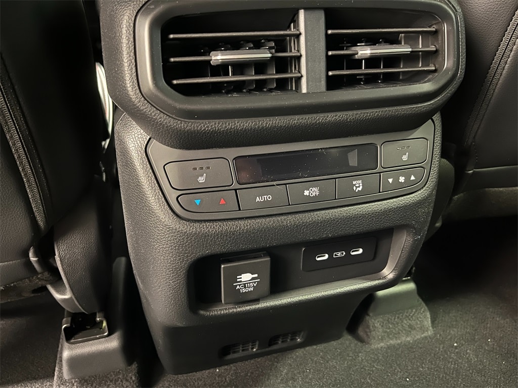 AWD, 12 Speakers, 3rd row seats: split-bench, 4-Wheel Disc Brakes, 4.167 Axle Ratio, ABS brakes, Adaptive Cruise Control: Adaptive Cruise Control (ACC) with Low-Speed Follow, Air Conditioning, Alloy wheels, AM/FM radio: SiriusXM, Apple CarPlay/Android Auto, Auto High-beam Headlights, Auto-dimming door mirrors, Auto-dimming Rear-View mirror, Automatic temperature control, Blind Spot Information (BSI) System warning, Bose Premium Sound System, Brake assist, Bumpers: body-color, Compass, Delay-off headlights, Driver door bin, Driver vanity mirror, Dual front impact airbags, Dual front side impact airbags, Electronic Stability Control, Emergency communication system: HondaLink, Exterior Parking Camera Rear, Four wheel independent suspension, Front anti-roll bar, Front Bucket Seats, Front Center Armrest, Front dual zone A/C, Front fog lights, Front reading lights, Fully automatic headlights, Garage door transmitter: HomeLink, Heads-Up Display, Heated and Ventilated Front Bucket Seats, Heated door mirrors, Heated front seats, Heated rear seats, Heated steering wheel, Honda Satellite-Linked Navigation System, HondaLink Subscription Services, Illuminated entry, Knee airbag, Lane departure: Lane Keeping Assist System (LKAS) active, Low tire pressure warning, Memory seat, Navigation system: Honda Satellite-Linked Navigation System, Occupant sensing airbag, Outside temperature display, Overhead airbag, Overhead console, Panic alarm, Passenger door bin, Passenger vanity mirror, Perforated Leather Seat Trim, Power door mirrors, Power driver seat, Power Liftgate, Power moonroof, Power passenger seat, Power steering, Power windows, Radio data system, Rain sensing wipers, Rear air conditioning, Rear anti-roll bar, Rear reading lights, Rear seat center armrest, Rear window defroster, Rear window wiper, Reclining 3rd row seat, Remote keyless entry, Security system, SiriusXM, Speed control, Speed-sensing steering, Speed-Sensitive Wipers, Split folding rear seat, Spoiler, Steering wheel mounted audio controls, Tachometer, Telescoping steering wheel, Tilt steering wheel, Traction control, Trip computer, Turn signal indicator mirrors, Variably intermittent wipers, Ventilated front seats, Wheels: 20" Gloss Black with Black Lug Nuts, AWD.