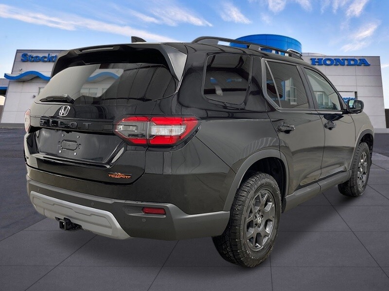 AWD, 3rd row seats: split-bench, 4-Wheel Disc Brakes, 4.167 Axle Ratio, 9 Speakers, ABS brakes, Adaptive Cruise Control: Adaptive Cruise Control (ACC) with Low-Speed Follow, Air Conditioning, Alloy wheels, AM/FM radio: SiriusXM, Apple CarPlay/Android Auto, Auto High-beam Headlights, Auto-dimming Rear-View mirror, Automatic temperature control, Blind Spot Information (BSI) System warning, Brake assist, Bumpers: body-color, Delay-off headlights, Driver door bin, Driver vanity mirror, Dual front impact airbags, Dual front side impact airbags, Durable Synthetic Leather Seat Trim, Electronic Stability Control, Emergency communication system: HondaLink Assist, Exterior Parking Camera Rear, Four wheel independent suspension, Front anti-roll bar, Front Bucket Seats, Front Center Armrest, Front dual zone A/C, Front fog lights, Front reading lights, Fully automatic headlights, Garage door transmitter: HomeLink, Heated door mirrors, Heated Front Bucket Seats, Heated front seats, Illuminated entry, Knee airbag, Lane departure: Lane Keeping Assist System (LKAS) active, Low tire pressure warning, Memory seat, Occupant sensing airbag, Outside temperature display, Overhead airbag, Overhead console, Panic alarm, Passenger door bin, Passenger vanity mirror, Power door mirrors, Power driver seat, Power Liftgate, Power moonroof, Power passenger seat, Power steering, Power windows, Radio data system, Radio: 245-Watt Audio System, Rear air conditioning, Rear anti-roll bar, Rear reading lights, Rear window defroster, Rear window wiper, Reclining 3rd row seat, Remote keyless entry, Security system, SiriusXM, Speed control, Speed-sensing steering, Speed-Sensitive Wipers, Split folding rear seat, Spoiler, Steering wheel mounted audio controls, Tachometer, Telescoping steering wheel, Tilt steering wheel, Traction control, Trip computer, Turn signal indicator mirrors, Variably intermittent wipers, Wheels: 18" Shark Gray with Black Lug Nuts, AWD.