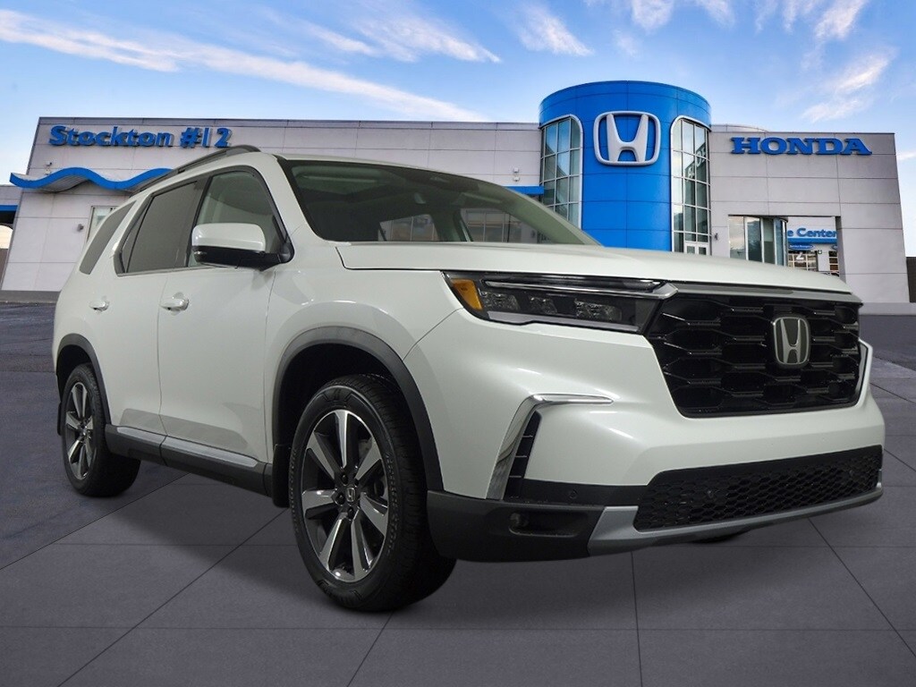 AWD, 12 Speakers, 3rd row seats: split-bench, 4-Wheel Disc Brakes, 4.167 Axle Ratio, ABS brakes, Adaptive Cruise Control: Adaptive Cruise Control (ACC) with Low-Speed Follow, Air Conditioning, Alloy wheels, AM/FM radio: SiriusXM, Apple CarPlay/Android Auto, Auto High-beam Headlights, Auto-dimming Rear-View mirror, Automatic temperature control, Blind Spot Information (BSI) System warning, Bose Premium Sound System, Brake assist, Bumpers: body-color, Compass, Delay-off headlights, Driver door bin, Driver vanity mirror, Dual front impact airbags, Dual front side impact airbags, Electronic Stability Control, Emergency communication system: HondaLink, Exterior Parking Camera Rear, Four wheel independent suspension, Front anti-roll bar, Front Bucket Seats, Front Center Armrest, Front dual zone A/C, Front fog lights, Front reading lights, Fully automatic headlights, Garage door transmitter: HomeLink, Heated door mirrors, Heated Front Bucket Seats, Heated front seats, Honda Satellite-Linked Navigation System, HondaLink Subscription Services, Illuminated entry, Knee airbag, Lane departure: Lane Keeping Assist System (LKAS) active, Leather Seat Trim, Low tire pressure warning, Memory seat, Navigation system: Honda Satellite-Linked Navigation System, Occupant sensing airbag, Outside temperature display, Overhead airbag, Overhead console, Panic alarm, Passenger door bin, Passenger vanity mirror, Power door mirrors, Power driver seat, Power Liftgate, Power moonroof, Power passenger seat, Power steering, Power windows, Radio data system, Rear air conditioning, Rear anti-roll bar, Rear reading lights, Rear seat center armrest, Rear window defroster, Rear window wiper, Reclining 3rd row seat, Remote keyless entry, Security system, SiriusXM, Speed control, Speed-sensing steering, Speed-Sensitive Wipers, Split folding rear seat, Spoiler, Steering wheel mounted audio controls, Tachometer, Telescoping steering wheel, Tilt steering wheel, Traction control, Trip computer, Turn signal indicator mirrors, Variably intermittent wipers, Wheels: 20" Shark Gray Machine Face with Black Lug Nuts, AWD.