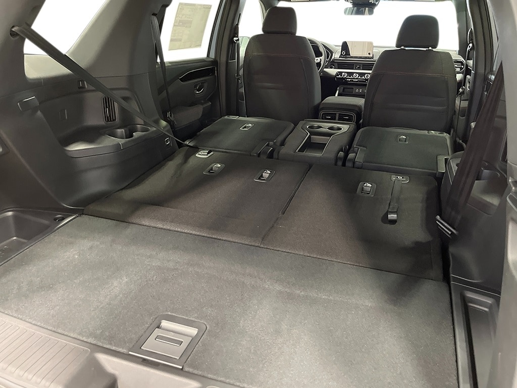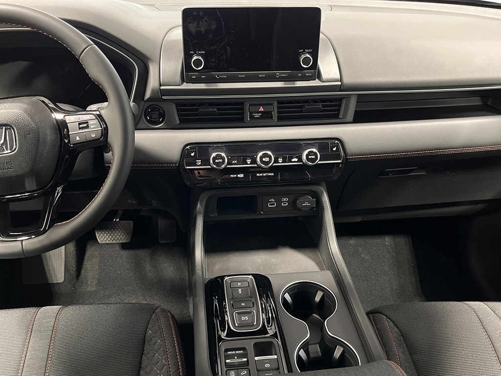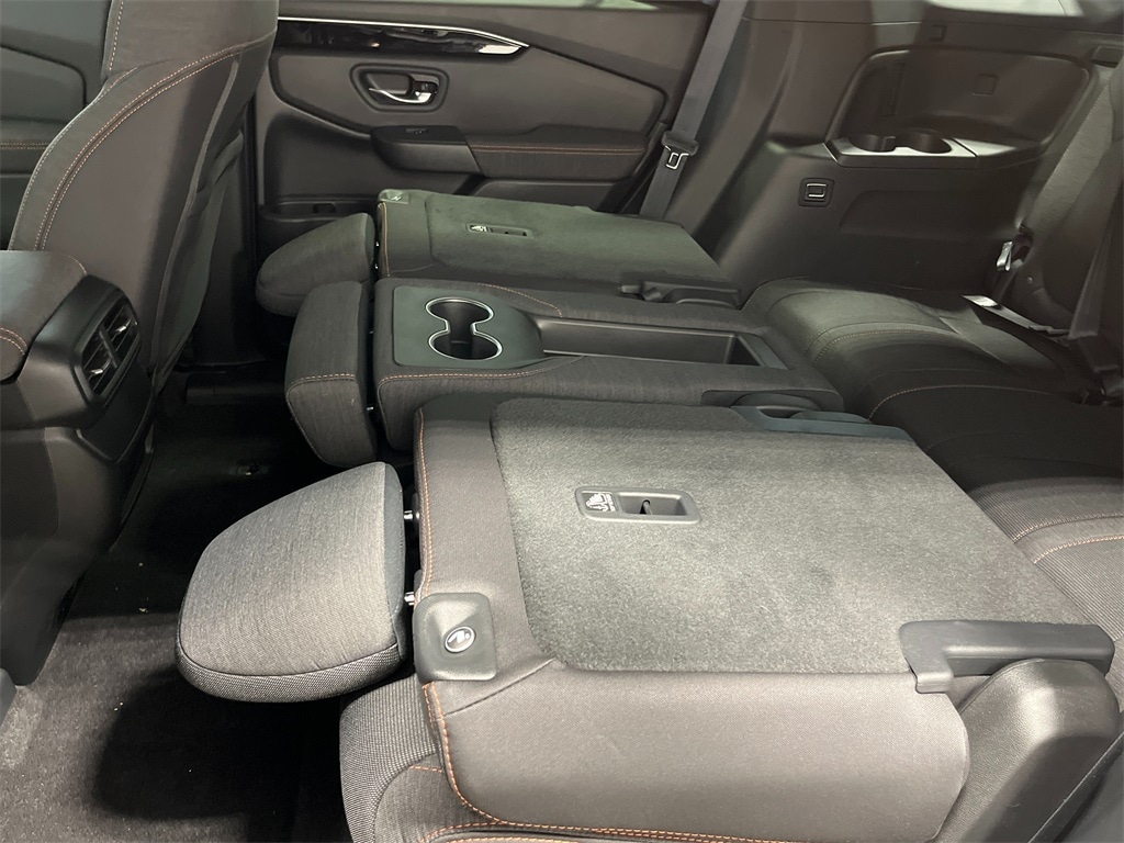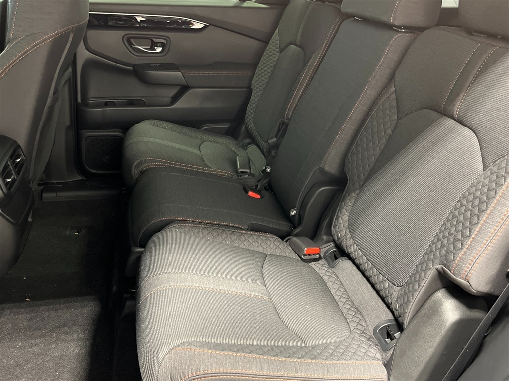 AWD, 3rd row seats: split-bench, 4-Wheel Disc Brakes, 4.167 Axle Ratio, 7 Speakers, ABS brakes, Adaptive Cruise Control: Adaptive Cruise Control (ACC) with Low-Speed Follow, Air Conditioning, Alloy wheels, Apple CarPlay/Android Auto, Auto High-beam Headlights, Automatic temperature control, Blind Spot Information (BSI) System warning, Brake assist, Bumpers: body-color, Cloth Seat Trim, Delay-off headlights, Driver door bin, Driver vanity mirror, Dual front impact airbags, Dual front side impact airbags, Electronic Stability Control, Emergency communication system: HondaLink Assist, Exterior Parking Camera Rear, Four wheel independent suspension, Front anti-roll bar, Front Bucket Seats, Front Center Armrest, Front dual zone A/C, Front fog lights, Front reading lights, Fully automatic headlights, Heated door mirrors, Heated Front Bucket Seats, Heated front seats, Illuminated entry, Knee airbag, Lane departure: Lane Keeping Assist System (LKAS) active, Low tire pressure warning, Occupant sensing airbag, Outside temperature display, Overhead airbag, Overhead console, Panic alarm, Passenger door bin, Passenger vanity mirror, Power door mirrors, Power driver seat, Power passenger seat, Power steering, Power windows, Radio data system, Radio: 240-Watt Audio System, Rear air conditioning, Rear anti-roll bar, Rear reading lights, Rear seat center armrest, Rear window defroster, Rear window wiper, Reclining 3rd row seat, Remote keyless entry, Security system, Speed control, Speed-sensing steering, Speed-Sensitive Wipers, Split folding rear seat, Spoiler, Steering wheel mounted audio controls, Tachometer, Telescoping steering wheel, Tilt steering wheel, Traction control, Trip computer, Variably intermittent wipers, Wheels: 20" Shark Gray w/Black Lug Nuts, AWD.