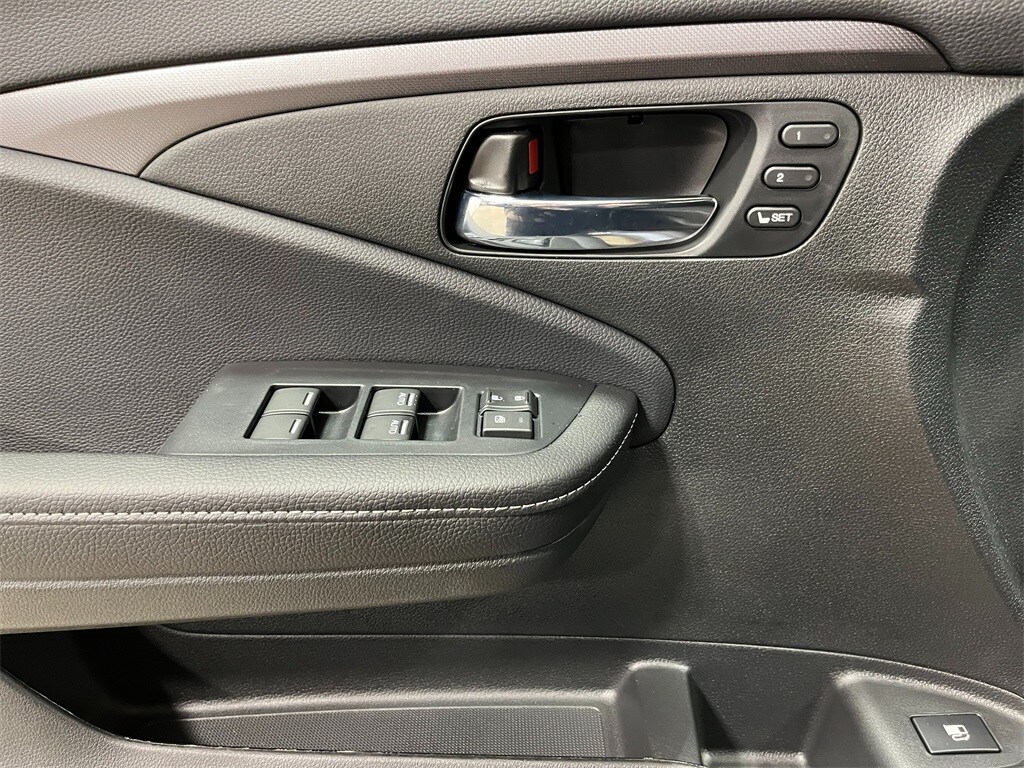 Black Leather, 4-Wheel Disc Brakes, 4.33 Axle Ratio, 7 Speakers, ABS brakes, Air Conditioning, Alloy wheels, AM/FM radio: SiriusXM, Auto-dimming Rear-View mirror, Automatic temperature control, Blind Spot Information (BSI) System warning, Bluetooth® Hands-Free Link, Brake assist, Bumpers: body-color, Compass, Delay-off headlights, Driver door bin, Driver vanity mirror, Driver's Seat Mounted Armrest, Dual front impact airbags, Dual front side impact airbags, Electronic Stability Control, Emergency communication system: HondaLink Assist, Exterior Parking Camera Rear, Four wheel independent suspension, Front anti-roll bar, Front Bucket Seats, Front dual zone A/C, Front fog lights, Front reading lights, Fully automatic headlights, Garage door transmitter: HomeLink, Heated door mirrors, Heated Front Bucket Seats, Heated front seats, Illuminated entry, Leather Seat Trim, Leather steering wheel, Low tire pressure warning, Memory seat, Occupant sensing airbag, Outside temperature display, Overhead airbag, Overhead console, Panic alarm, Passenger door bin, Passenger seat mounted armrest, Passenger vanity mirror, Power door mirrors, Power driver seat, Power moonroof, Power passenger seat, Power steering, Power windows, Radio data system, Radio: 215-Watt Audio System with 7 Speakers, Rear air conditioning, Rear anti-roll bar, Rear reading lights, Rear seat center armrest, Rear step bumper, Rear window defroster, Remote keyless entry, Security system, SiriusXM, Speed control, Speed-sensing steering, Split folding rear seat, Steering wheel mounted audio controls, Tachometer, Telescoping steering wheel, Tilt steering wheel, Traction control, Trip computer, Turn signal indicator mirrors, Variably intermittent wipers, Wheels: 18" Pewter Gray Machine-Finished Alloy, Black Leather.