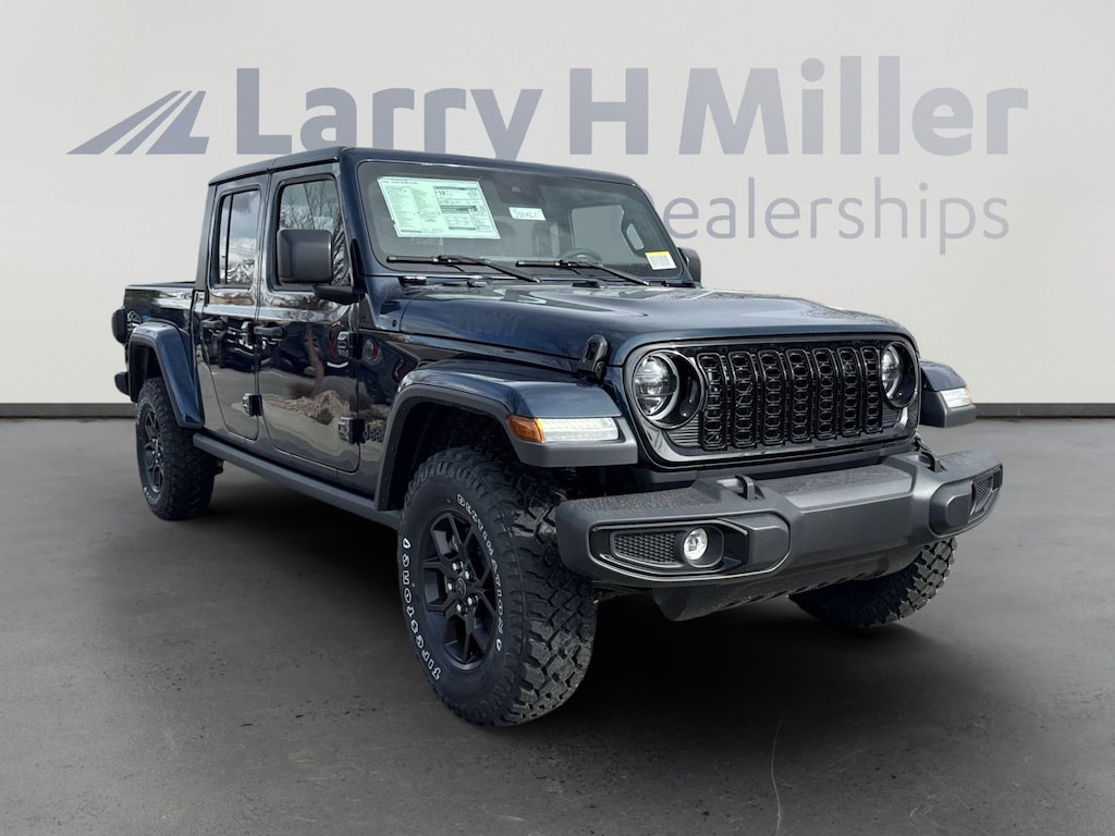Fathom Blue Pearlcoat 2025 Jeep Gladiator Willys 4WD 8-Speed Automatic 3.6L V6 24V VVT Price includes: $1000 - 2025 West BC Retail Bonus Cash . Exp. 11/03/2025 $2000 - 2025 National Overaged Select Inventory Bonus Cash. Exp. 11/03/2025 $2250 - 2025 National Bonus Cash . Exp. 11/03/2025