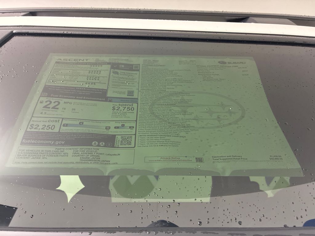 2026 Crystal White Pearl Subaru Ascent Factory MSRP: $42,860