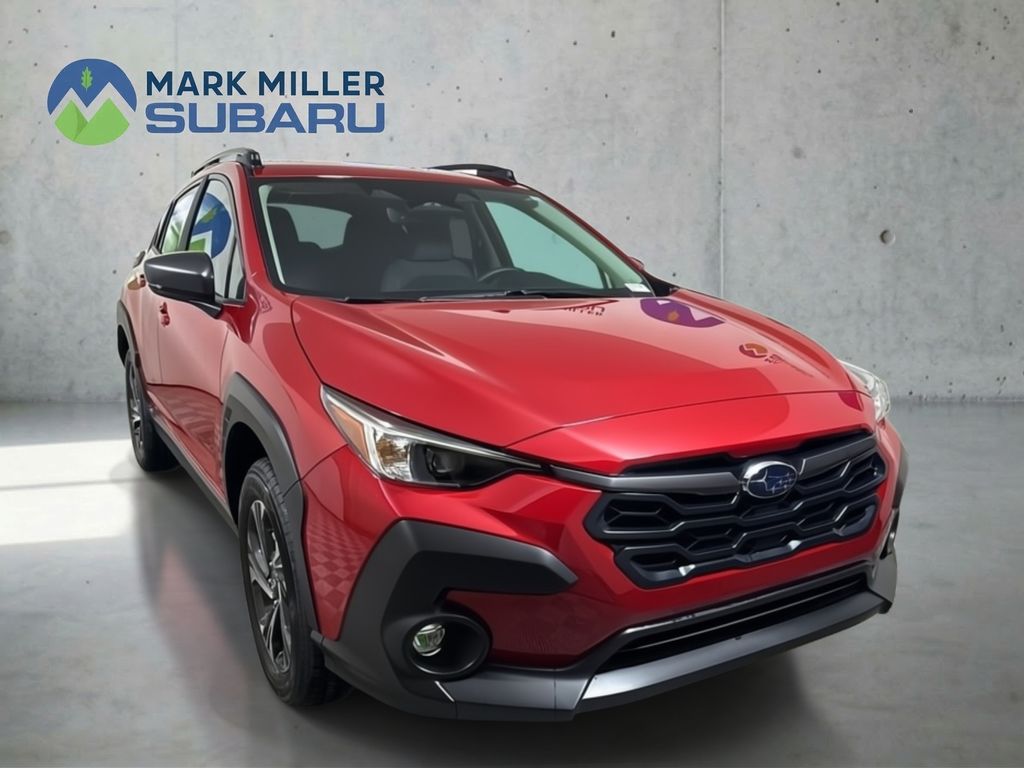 Mark Miller Subaru is the leading Subaru dealership in Utah. Our large inventory and dedicated sales teams has made us the go to destination for the Subaru brand in Utah. Our Promise Price is the best way to buy a Subaru in Utah. Come experience the Mark Miller Subaru difference today! ** This 2026 Lithium Red Pearl Subaru Crosstrek Premium AWD is well equipped and includes these features and benefits: Standard Model, 4-Wheel Disc Brakes, 6 Speakers, ABS brakes, Air Conditioning, All-Weather Floor Liners, Alloy wheels, AM/FM radio: SiriusXM with 360L, Anti-whiplash front head restraints, Auto High-beam Headlights, Auto-Dimming Mirror with Compass and HomeLink, Automatic temperature control, Brake assist, Bumpers: body-color, Cloth Upholstery, Driver door bin, Driver vanity mirror, Dual front impact airbags, Dual front side impact airbags, Electronic Stability Control, Emergency communication system: MySubaru Companion (5-years free), Exterior Parking Camera Rear, Four wheel independent suspension, Front anti-roll bar, Front Bucket Seats, Front Center Armrest, Front dual zone A/C, Front fog lights, Front reading lights, Fully automatic headlights, Illuminated entry, Knee airbag, Low tire pressure warning, Occupant sensing airbag, Outside temperature display, Overhead airbag, Overhead console, Panic alarm, Passenger door bin, Passenger vanity mirror, Power door mirrors, Power steering, Power windows, Radio data system, Radio: Subaru 11.6" Multimedia Plus System, Rear anti-roll bar, Rear Bumper Cover, Rear seat center armrest, Rear side impact airbag, Rear window defroster, Rear window wiper, Remote keyless entry, Security system, Speed control, Speed-sensing steering, Split folding rear seat, Spoiler, Steering wheel mounted audio controls, Tachometer, Telescoping steering wheel, Tilt steering wheel, Traction control, Trip computer, Turn signal indicator mirrors, Variably intermittent wipers, and Wheels: 17" x 7.0" J Machine Finish Aluminum-Alloy **