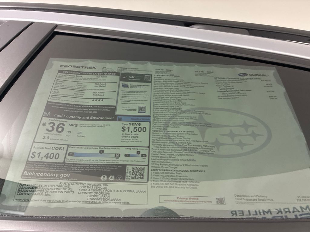 Mark Miller Subaru is the leading Subaru dealership in Utah. Our large inventory and dedicated sales teams has made us the go to destination for the Subaru brand in Utah. Our Promise Price is the best way to buy a Subaru in Utah. Come experience the Mark Miller Subaru difference today! ** This 2026 Ice Silver Metallic Subaru Crosstrek Hybrid Limited AWD is well equipped and includes these features and benefits: Crosstrek Mirror Package (Auto-Dimming Exterior Mirror with Approach Light and Auto-Dimming Mirror with Compass and HomeLink), Power Moonroof and Surround View Monitor (360 Surround View Monitor and Power Moonroof), 2.5L 4-Cylinder DOHC 16V, 10 Speakers, 4-Wheel Disc Brakes, ABS brakes, Air Conditioning, All-Weather Floor Liners, Alloy wheels, AM/FM radio: SiriusXM, Anti-whiplash front head restraints, Auto High-beam Headlights, Automatic temperature control, Brake assist, Bumpers: body-color, Compass, Driver door bin, Driver vanity mirror, Dual front impact airbags, Dual front side impact airbags, Electronic Stability Control, Emergency communication system: MySubaru Companion (5-years free), Exterior Parking Camera Rear, Four wheel independent suspension, Front anti-roll bar, Front Bucket Seats, Front Center Armrest, Front dual zone A/C, Front fog lights, Front reading lights, Fully automatic headlights, harman/kardon® Speakers, Heated door mirrors, Heated Front Bucket Seats, Heated front seats, Heated steering wheel, Illuminated entry, Knee airbag, Leather Shift Knob, Leather steering wheel, Low tire pressure warning, Navigation System, Occupant sensing airbag, Outside temperature display, Overhead airbag, Overhead console, Panic alarm, Passenger door bin, Passenger vanity mirror, Perforated StarTex Upholstery, Power door mirrors, Power driver seat, Power steering, Power windows, Radio data system, Radio: Subaru 11.6" Multimedia Navigation System, Rear anti-roll bar, Rear Bumper Cover, Rear seat center armrest, Rear side impact airbag, Rear window defroster, Rear window wiper, Remote keyless entry, Security system, Speed control, Speed-sensing steering, Split folding rear seat, Spoiler, Steering wheel mounted audio controls, Tachometer, Telescoping steering wheel, Tilt steering wheel, Traction control, Trip computer, Turn signal indicator mirrors, Variably intermittent wipers, and Wheels: 18" x 7.0" J Dark Gray Aluminum-Alloy **