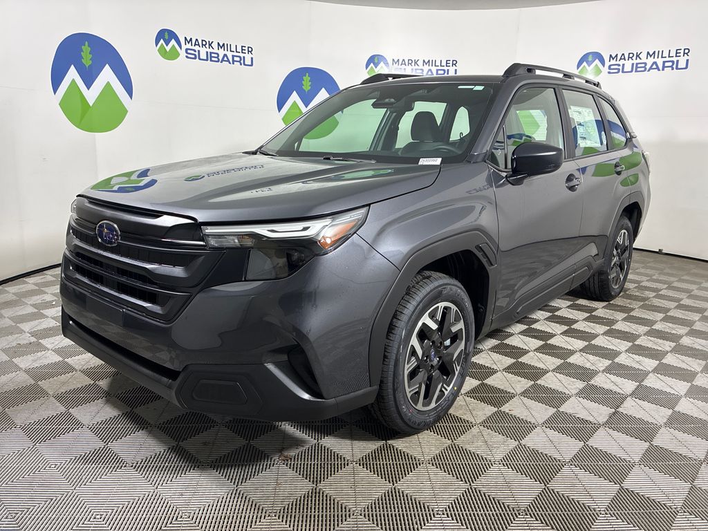 Mark Miller Subaru is the leading Subaru dealership in Utah. Our large inventory and dedicated sales teams has made us the go to destination for the Subaru brand in Utah. Our Promise Price is the best way to buy a Subaru in Utah. Come experience the Mark Miller Subaru difference today! ** This 2026 Magnetite Gray Metallic Subaru Forester AWD is well equipped and includes these features and benefits: Standard Model, 4 Speakers, 4-Wheel Disc Brakes, ABS brakes, Air Conditioning, Alloy wheels, AM/FM radio: SiriusXM, Anti-whiplash front head restraints, Auto High-beam Headlights, Automatic temperature control, Brake assist, Bumpers: body-color, Driver door bin, Driver vanity mirror, Dual front impact airbags, Dual front side impact airbags, Electronic Stability Control, Exterior Parking Camera Rear, Four wheel independent suspension, Front anti-roll bar, Front Bucket Seats, Front Center Armrest, Front dual zone A/C, Front reading lights, Fully automatic headlights, Hexagonal Patterned Cloth Upholstery, Illuminated entry, Knee airbag, Low tire pressure warning, Occupant sensing airbag, Outside temperature display, Overhead airbag, Overhead console, Panic alarm, Passenger door bin, Passenger vanity mirror, Power door mirrors, Power steering, Power windows, Radio data system, Radio: Subaru Dual 7.0" Multimedia System, Rear anti-roll bar, Rear Bumper Cover, Rear window defroster, Rear window wiper, Remote keyless entry, Security system, Speed control, Speed-sensing steering, Split folding rear seat, Spoiler, Steering wheel mounted audio controls, Tachometer, Telescoping steering wheel, Tilt steering wheel, Traction control, Trip computer, USB Charging Cable Set, Variably intermittent wipers, and Wheels: 17" x 7.0 J Dark Metallic Aluminum-Alloy **