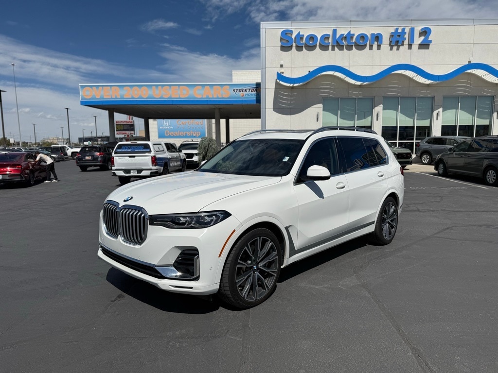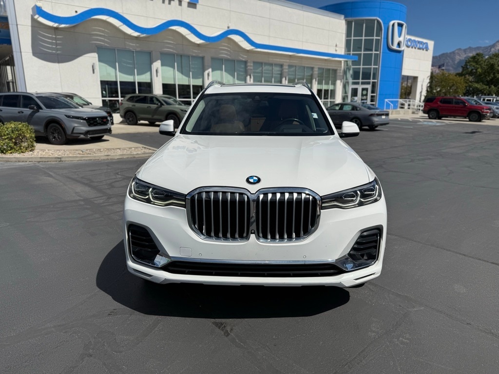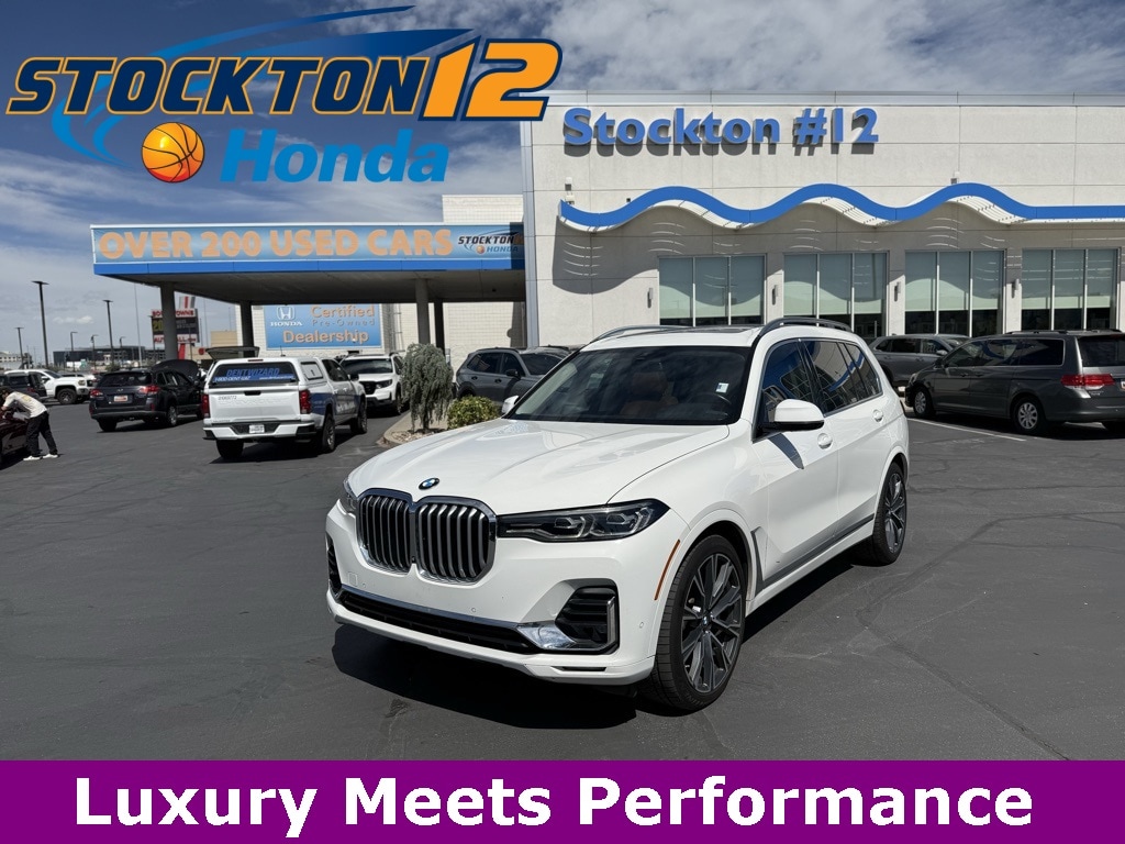 X7 xDrive40i, 4D Sport Utility, 3.0L I6 DOHC 24V, 8-Speed Automatic Sport, AWD, Alpine White, Cognac Leather, 10 Speakers, 3.64 Axle Ratio, 3rd row seats: split-bench, 4-Wheel Disc Brakes, 5-Zone Automatic Climate Control, ABS brakes, Air Conditioning, Alloy wheels, AM/FM radio: SiriusXM with 360L, AM/FM Stereo, Apple CarPlay & Android Auto Compatibility, Apple CarPlay Compatibility, Auto High-beam Headlights, Auto tilt-away steering wheel, Auto-dimming door mirrors, Auto-dimming Rear-View mirror, Auto-leveling suspension, Automatic temperature control, BMW Assist eCall, BMW TeleServices, Brake assist, Bumpers: body-color, Cold Weather Package, Compass, Connected Package Pro, ConnectedDrive Services, Delay-off headlights, Drive Recorder, Driver door bin, Driver vanity mirror, Dual front impact airbags, Dual front side impact airbags, Electronic Stability Control, Emergency communication system: BMW Assist eCall, Exterior Parking Camera Rear, Four wheel independent suspension, Front & Rear Heated Seats, Front anti-roll bar, Front Bucket Seats, Front Center Armrest, Front dual zone A/C, Front fog lights, Front reading lights, Fully automatic headlights, Garage door transmitter, Genuine wood console insert, Genuine wood dashboard insert, Genuine wood door panel insert, Gesture Control, Glass Controls, Head restraints memory, Head-Up Display, Heated door mirrors, Heated front seats, Heated Sport Seats, Heated steering wheel, Hi-Fi Sound System, Illuminated entry, Knee airbag, Leather Shift Knob, Live Cockpit Pro w/Navi, Low tire pressure warning, Lumbar Support, M Sport Brakes w/Blue Calipers, Memory seat, Multi-Contour Seats, Navigation System, Occupant sensing airbag, Outside temperature display, Overhead airbag, Panic alarm, Parking Assistance Package, Parking Assistant Plus, Passenger door bin, Passenger vanity mirror, Power adjustable front head restraints, Power door mirrors, Power driver seat, Power Front Seats, Power moonroof: Panorama, Power passenger seat, Power steering, Power windows, Premium Package, Radio data system, Rain sensing wipers, Rear air conditioning, Rear anti-roll bar, Rear dual zone A/C, Rear Electric Side Window Shades, Rear reading lights, Rear seat center armrest, Rear window defroster, Rear window wiper, Rear-View Camera, Reclining 3rd row seat, Remote keyless entry, Roof rack: rails only, Security system, SensaTec Upholstery, SiriusXM w/360L, Soft-Close Automatic Doors, Speed control, Speed-sensing steering, Speed-Sensitive Wipers, Split folding rear seat, Spoiler, Sport steering wheel, Steering wheel memory, Steering wheel mounted audio controls, Surround View w/3D View, Tachometer, Telescoping steering wheel, Tilt steering wheel, Traction control, Trip computer, Turn signal indicator mirrors, Variably intermittent wipers, Wheels: 21" x 9.5" Y-Spoke Bi-Color, Wheels: 22" x 9.5" Fr & 22" x 10.5" Rr Y-Spoke, WiFi Hotspot, Wireless Charging, X7 xDrive40i, 4D Sport Utility, 3.0L I6 DOHC 24V, 8-Speed Automatic Sport, AWD, Alpine White, Cognac Leather.
