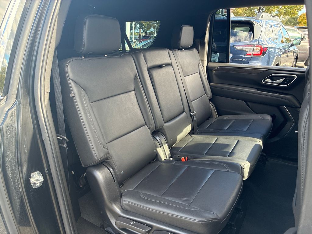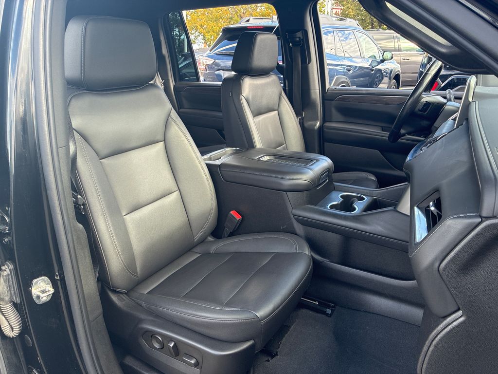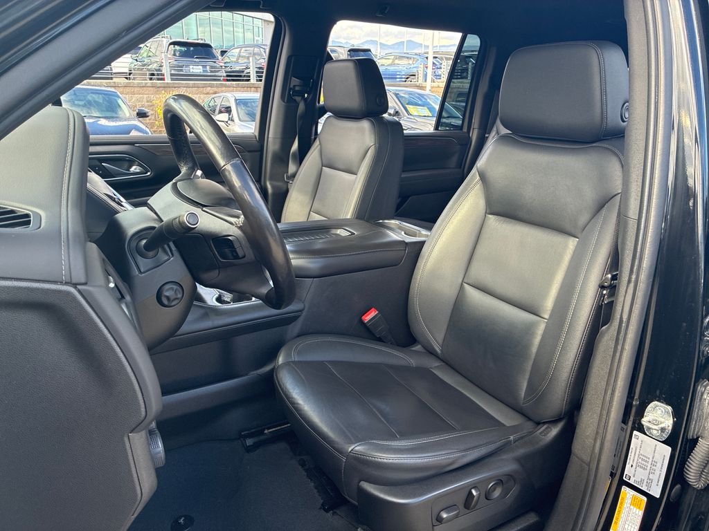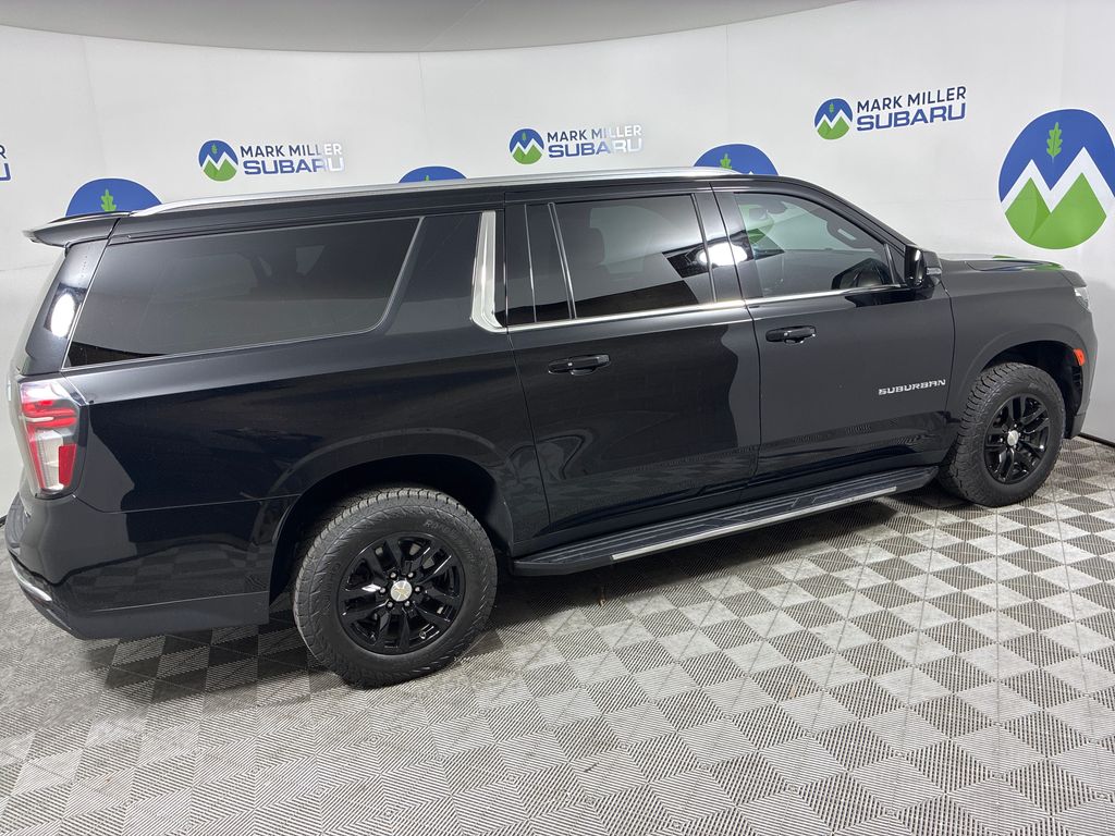 This 2022 Black Chevrolet Suburban LT 4WD is well equipped and includes these features and benefits: Driver Alert Package (Lane Change Alert w/Side Blind Zone Alert and Rear Cross Traffic Alert), License Plate Front Mounting Package, Luxury Package (2nd Row Pwr Release 60/40 Split-Folding Bench Seat, 3rd Row 60/40 Power-Folding Split-Bench, HD Surround Vision, Heated 2nd Row Outboard Seats, Heated Steering Wheel, Memory Settings, Outside Heated Power-Adjustable Mirrors, Power Tilt & Telescopic Steering Column, and Rear Pedestrian Alert), Preferred Equipment Group 1LT (10-Way Power Driver & Passenger Seat Adjusters, 1st & 2nd Row Color-Keyed Carpeted Floor Mats, Auto-Dimming Inside Rear-View Mirror, Automatic Stop/Start, Bose 9-Speaker Stereo Audio System Feature, Bright Front & Rear Door Sill Plates, Color-Keyed Carpeting Floor Covering, Driver & Front Outboard Passenger Airbags, Enhanced Driver Information Center, Floor Console w/Storage Area, Front & Rear Park Assist, Hands-Free Rear Power Programmable Liftgate, Heated Driver & Front Passenger Seats, Infotainment Display, Leather-Wrapped Steering Wheel, LED Daytime Running Lamps, Memory Settings For Driver, Remote Start, SiriusXM Radio w/360L, Start/Stop System Disable Button, Universal Home Remote, and Wireless Charging), 3.23 Rear Axle Ratio, 3rd row seats: split-bench, 4-Wheel Disc Brakes, 9 Speakers, ABS brakes, Air Conditioning, Alloy wheels, AM/FM radio: SiriusXM with 360L, Apple CarPlay/Android Auto, Auto High-beam Headlights, Auto-dimming Rear-View mirror, Automatic temperature control, Brake assist, Bumpers: body-color, Compass, Delay-off headlights, Driver door bin, Driver vanity mirror, Dual front impact airbags, Dual front side impact airbags, Electronic Stability Control, Emergency communication system: OnStar and Chevrolet connected services capable, Four wheel independent suspension, Front & Rear Black Bowtie Emblems (LPO), Front anti-roll bar, Front Bucket Seats, Front Center Armrest, Front dual zone A/C, Front reading lights, Fully automatic headlights, Garage door transmitter, Heated door mirrors, Heated front seats, Illuminated entry, Leather steering wheel, Leather-Appointed Seating, Low tire pressure warning, Memory seat, Navigation System, Not Equipped w/Front & Rear Park Assist, Not Equipped w/Steering Column Lock, Occupant sensing airbag, Outside temperature display, Overhead airbag, Overhead console, Panic alarm, Passenger door bin, Passenger vanity mirror, Power door mirrors, Power driver seat, Power Liftgate, Power passenger seat, Power steering, Power windows, Premium audio system: Chevrolet Infotainment 3 Premium, Premium Smooth Ride Suspension, Radio: Chevrolet Infotainment 3 Premium System, Rain sensing wipers, Rear air conditioning, Rear anti-roll bar, Rear reading lights, Rear seat center armrest, Rear window defroster, Rear window wiper, Remote keyless entry, Roof rack: rails only, Security system, Speed control, Speed-sensing steering, Split folding rear seat, Spoiler, Steering wheel mounted audio controls, Tachometer, Telescoping steering wheel, Tilt steering wheel, Traction control, Trip computer, Variably intermittent wipers, Voltmeter, and Wheels: 18" x 8.5" Bright Silver Painted Aluminum.