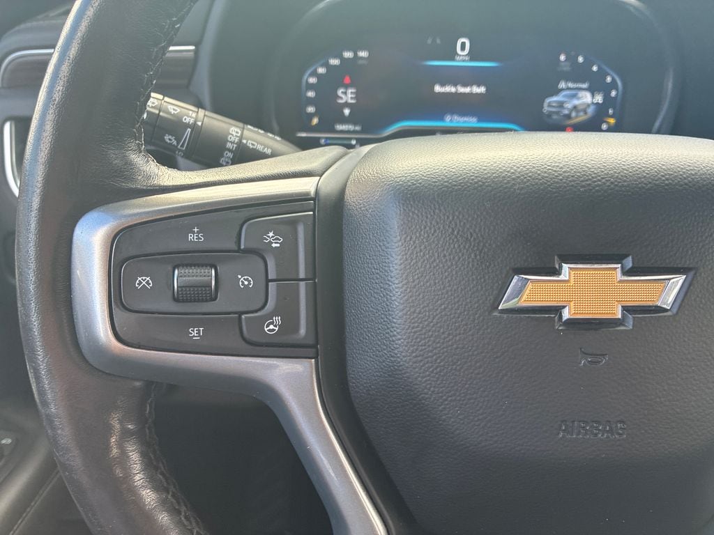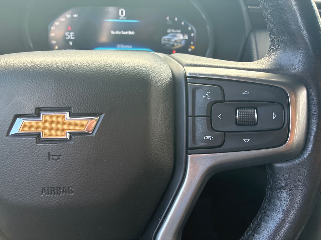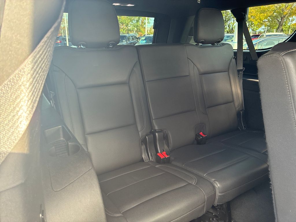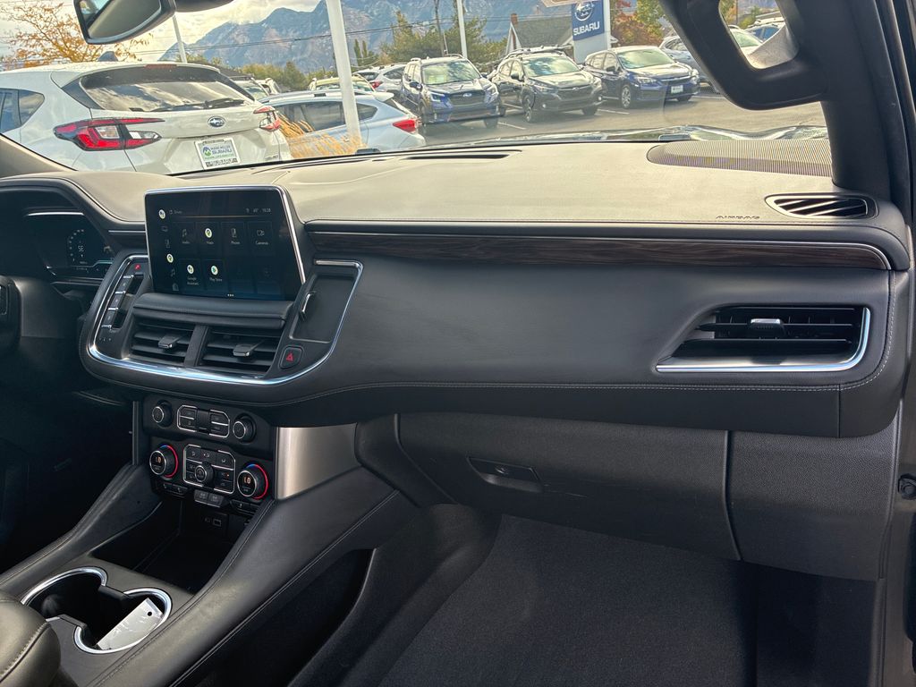 This 2022 Black Chevrolet Suburban LT 4WD is well equipped and includes these features and benefits: Driver Alert Package (Lane Change Alert w/Side Blind Zone Alert and Rear Cross Traffic Alert), License Plate Front Mounting Package, Luxury Package (2nd Row Pwr Release 60/40 Split-Folding Bench Seat, 3rd Row 60/40 Power-Folding Split-Bench, HD Surround Vision, Heated 2nd Row Outboard Seats, Heated Steering Wheel, Memory Settings, Outside Heated Power-Adjustable Mirrors, Power Tilt & Telescopic Steering Column, and Rear Pedestrian Alert), Preferred Equipment Group 1LT (10-Way Power Driver & Passenger Seat Adjusters, 1st & 2nd Row Color-Keyed Carpeted Floor Mats, Auto-Dimming Inside Rear-View Mirror, Automatic Stop/Start, Bose 9-Speaker Stereo Audio System Feature, Bright Front & Rear Door Sill Plates, Color-Keyed Carpeting Floor Covering, Driver & Front Outboard Passenger Airbags, Enhanced Driver Information Center, Floor Console w/Storage Area, Front & Rear Park Assist, Hands-Free Rear Power Programmable Liftgate, Heated Driver & Front Passenger Seats, Infotainment Display, Leather-Wrapped Steering Wheel, LED Daytime Running Lamps, Memory Settings For Driver, Remote Start, SiriusXM Radio w/360L, Start/Stop System Disable Button, Universal Home Remote, and Wireless Charging), 3.23 Rear Axle Ratio, 3rd row seats: split-bench, 4-Wheel Disc Brakes, 9 Speakers, ABS brakes, Air Conditioning, Alloy wheels, AM/FM radio: SiriusXM with 360L, Apple CarPlay/Android Auto, Auto High-beam Headlights, Auto-dimming Rear-View mirror, Automatic temperature control, Brake assist, Bumpers: body-color, Compass, Delay-off headlights, Driver door bin, Driver vanity mirror, Dual front impact airbags, Dual front side impact airbags, Electronic Stability Control, Emergency communication system: OnStar and Chevrolet connected services capable, Four wheel independent suspension, Front & Rear Black Bowtie Emblems (LPO), Front anti-roll bar, Front Bucket Seats, Front Center Armrest, Front dual zone A/C, Front reading lights, Fully automatic headlights, Garage door transmitter, Heated door mirrors, Heated front seats, Illuminated entry, Leather steering wheel, Leather-Appointed Seating, Low tire pressure warning, Memory seat, Navigation System, Not Equipped w/Front & Rear Park Assist, Not Equipped w/Steering Column Lock, Occupant sensing airbag, Outside temperature display, Overhead airbag, Overhead console, Panic alarm, Passenger door bin, Passenger vanity mirror, Power door mirrors, Power driver seat, Power Liftgate, Power passenger seat, Power steering, Power windows, Premium audio system: Chevrolet Infotainment 3 Premium, Premium Smooth Ride Suspension, Radio: Chevrolet Infotainment 3 Premium System, Rain sensing wipers, Rear air conditioning, Rear anti-roll bar, Rear reading lights, Rear seat center armrest, Rear window defroster, Rear window wiper, Remote keyless entry, Roof rack: rails only, Security system, Speed control, Speed-sensing steering, Split folding rear seat, Spoiler, Steering wheel mounted audio controls, Tachometer, Telescoping steering wheel, Tilt steering wheel, Traction control, Trip computer, Variably intermittent wipers, Voltmeter, and Wheels: 18" x 8.5" Bright Silver Painted Aluminum.