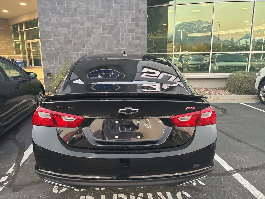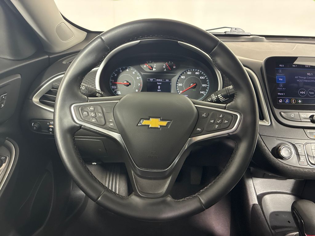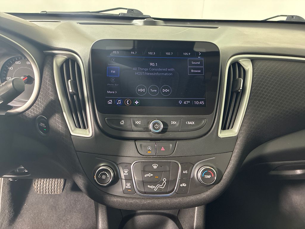 This 2023 Mosaic Black Metallic Chevrolet Malibu RS FWD is well equipped and includes these features and benefits: Preferred Equipment Group 1SP (Remote Vehicle Starter System), Jet Black Cloth, 18" Aluminum Wheels, 4-Wheel Disc Brakes, 6 Speakers, 6-Speaker Audio System Feature, 6-Way Manual Front Passenger Seat Adjuster, 8-Way Power Driver Seat Adjuster, ABS brakes, Air Conditioning, Alloy wheels, AM/FM radio, Apple CarPlay/Android Auto, Auto High-beam Headlights, Brake assist, Bumpers: body-color, Cargo Mat, Compass, Custom Molded Front & Rear Splash Guards (LPO), Delay-off headlights, Driver door bin, Driver vanity mirror, Dual front impact airbags, Dual front side impact airbags, Electronic Stability Control, Emergency communication system: OnStar and Chevrolet connected services capable, Exterior Parking Camera Rear, Four wheel independent suspension, Front & Rear Premium Carpeted Floor Mats (LPO), Front anti-roll bar, Front Bucket Seats, Front Center Armrest, Front License Plate Bracket, Front reading lights, Fully automatic headlights, Illuminated entry, Knee airbag, Low tire pressure warning, Occupant sensing airbag, Outside temperature display, Overhead airbag, Overhead console, Panic alarm, Passenger door bin, Passenger vanity mirror, Power door mirrors, Power Driver Lumbar Control Seat Adjuster, Power driver seat, Power steering, Power windows, Premium audio system: Chevrolet Infotainment 3, Premium Cloth Seat Trim, Radio data system, Radio: Chevrolet Infotainment 3 System, Rear anti-roll bar, Rear side impact airbag, Rear window defroster, Remote keyless entry, Remote Vehicle Starter System (DISC), Security system, Speed control, Split folding rear seat, Spoiler, Steering wheel mounted audio controls, Tachometer, Telescoping steering wheel, Tilt steering wheel, Traction control, Trip computer, Variably intermittent wipers, Voltmeter, and Wireless Apple CarPlay/Android Auto.