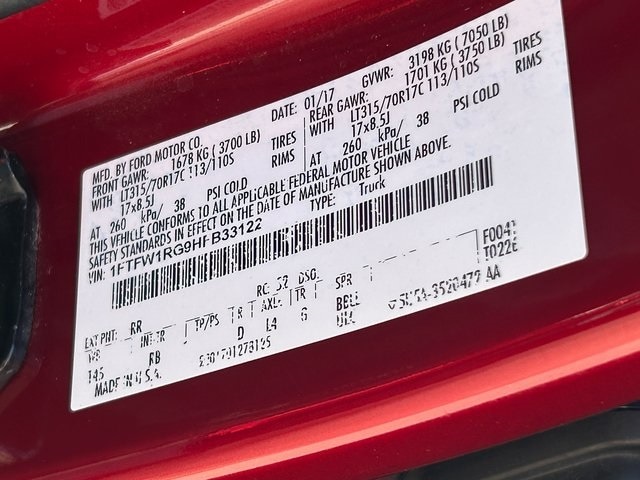 Ruby Red 2017 Ford F-150 Raptor 4WD 10-Speed Automatic 3.5L V6 4WD.
