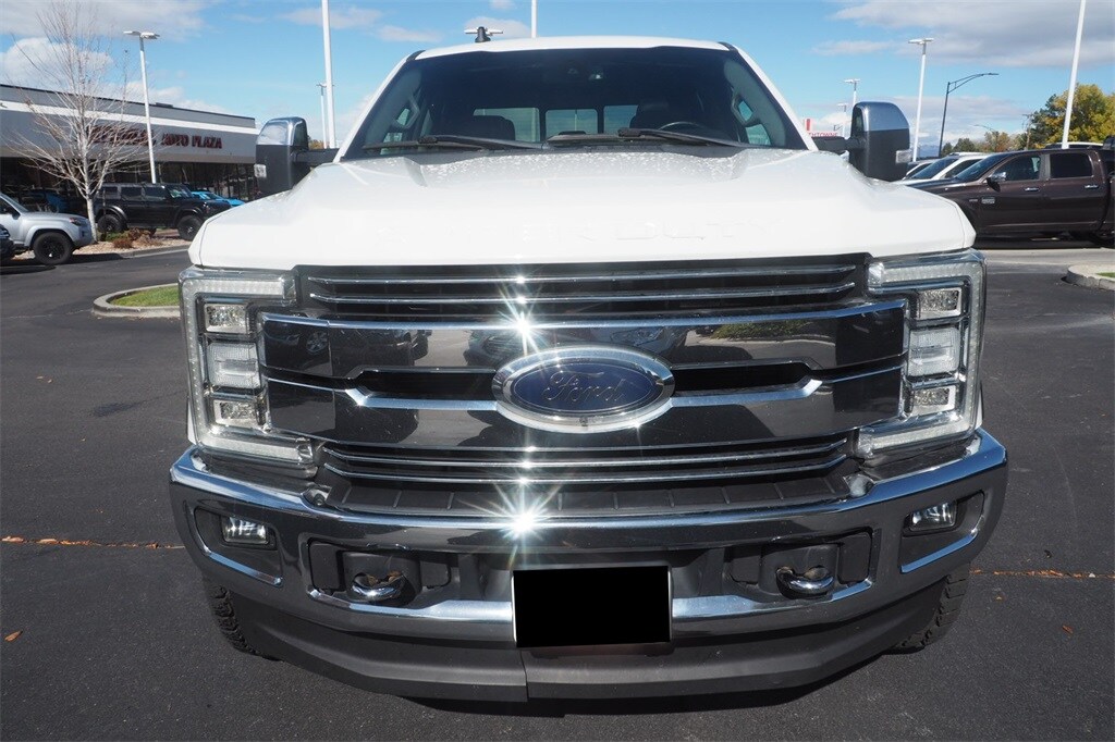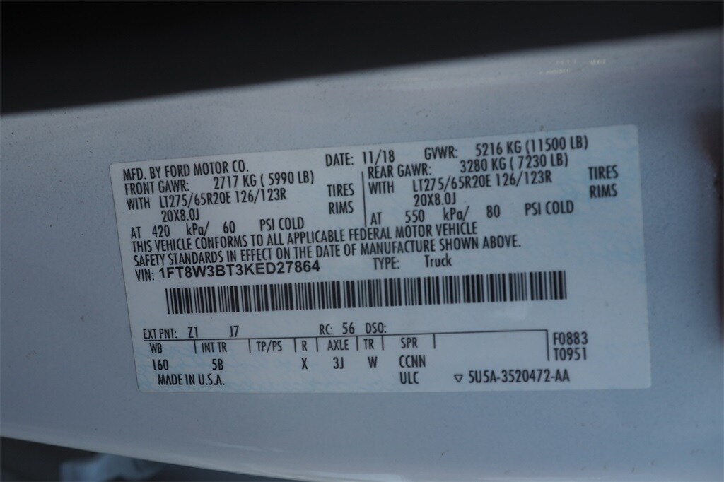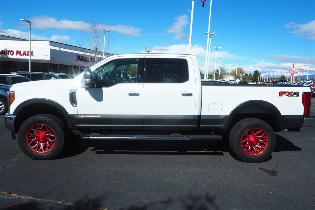 Oxford White 2019 Ford F-350SD Lariat 4WD TorqShift 6-Speed Automatic Power Stroke 6.7L V8 DI 32V OHV Turbodiesel LIFTED, OVERSIZED OFF ROAD TIRES, 4WD, 5th Wheel/Gooseneck Hitch Prep Package, 6" Angular Chrome Step Bars, Adaptive Steering, Ambient Lighting - Fixed Color, Automatic High Beam, Body-Color Door Handles w/Chrome Insert, Camper Package, Chrome Exhaust Tip, Chrome Package, Easy Entry®/Exit Memory Driver's Seat Feature, FX4 Off-Road Package, GVWR: 11,300 lb Payload Package, Hill Descent Control, Intelligent Access w/Push-Button Start, Lane-Keeping Alert, Lariat Ultimate Package, LED Box Lighting, Memory Power-Adjustable Pedals, Navigation System, Off-Road Specifically Tuned Shock Absorbers, Order Code 618A, Power Heated/Cooled Driver Seat w/Memory, Power Heated/Cooled Passenger Seat, Power Telescoping/Tilt Steering Wheel/Column, PowerScope Trailer Tow Mirrors w/Memory, Rear CHMSL Camera, Rear Stabilizer Bar, Remote Start System, Remote Tailgate Release, Snow Plow Prep Package, Tailgate Step & Handle, Tow Technology Bundle, Ultimate Trailer Tow Camera System, Unique Chrome Mirror Caps, Unique FX4 Off-Road Box Decal, Voice-Activated Navigation, Wheels: 18" Chrome PVD Aluminum.