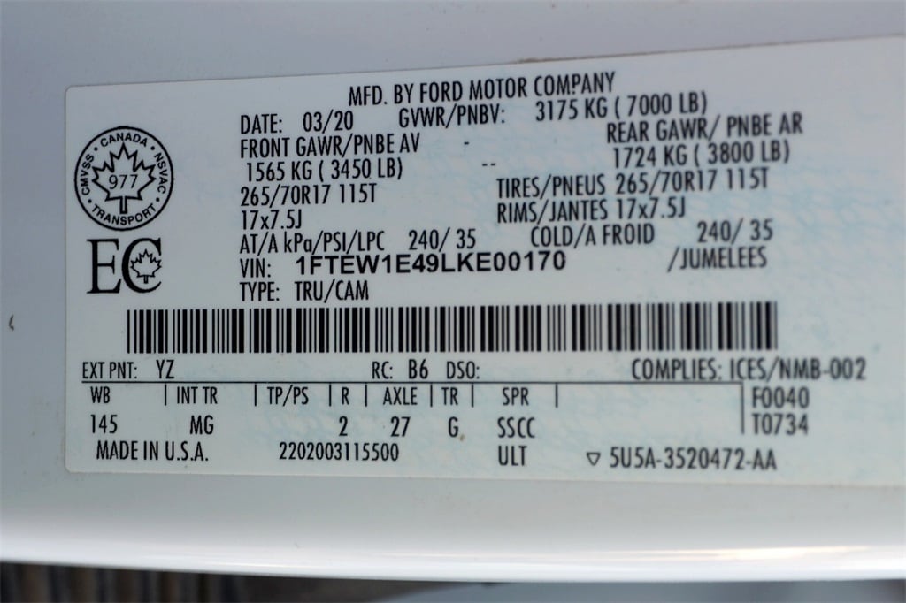 Priced below KBB Fair Purchase Price! Oxford White 2020 Ford F-150 XLT 4WD 10-Speed Automatic 3.5L V6 EcoBoost 4WD.