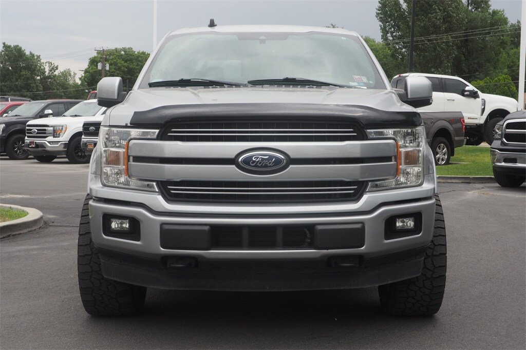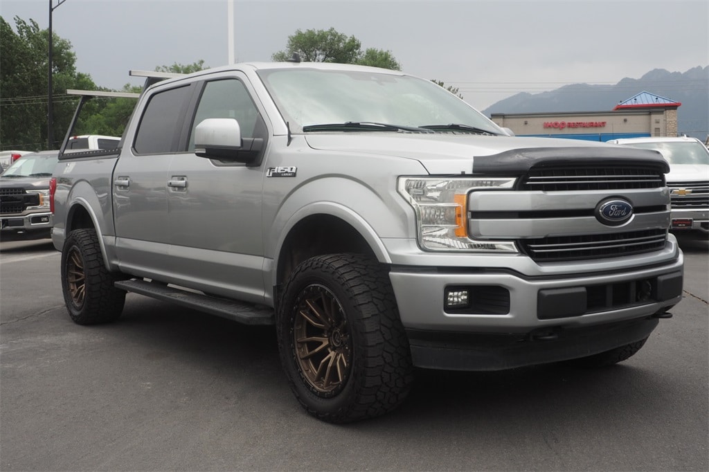 Silver 2020 Ford F-150 Lariat 4WD 10-Speed Automatic 3.5L V6 EcoBoost 4WD, 110V/400W Outlet, 2-Bar Body-Color Grille w/4 Minor Bars, ABS brakes, Accent-Color Angular Step Bars, Alloy wheels, Body-Color Front & Rear Bumpers, Box Side Decals, Class IV Trailer Hitch Receiver, Compass, Electronic Locking w/3.55 Axle Ratio, Electronic Stability Control, Engine Oil Cooler, Equipment Group 501A Mid, Extended Range 36 Gallon Fuel Tank, Front dual zone A/C, GVWR: 7,000 lbs Payload Package, Heated door mirrors, Heated front seats, Illuminated entry, Integrated Trailer Brake Controller, Lariat Sport Appearance Package, Low tire pressure warning, Max Trailer Tow Package, Power Glass Sideview Mirr w/Body-Color Skull Caps, Pro Trailer Backup Assist, Remote keyless entry, Remote Start System w/Remote Tailgate Release, Reverse Sensing System, Single-Tip Chrome Exhaust, Traction control, Trailer Tow Package, Upgraded Front Stabilizer Bar, Wheels: 18" 6-Spoke Machined-Aluminum.