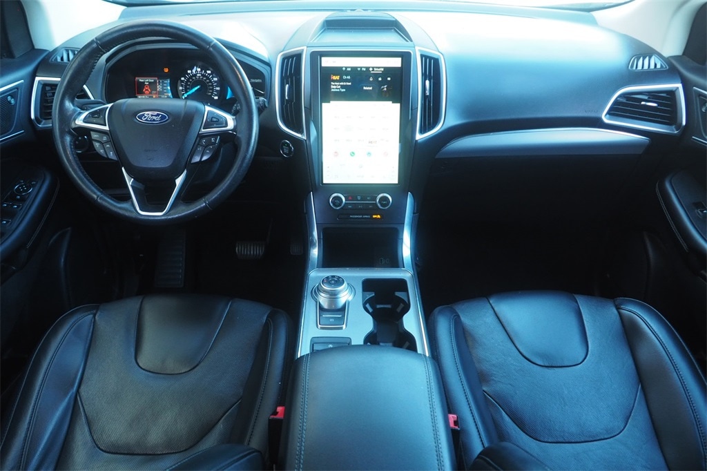 Blue Metallic 2022 Ford Edge Titanium AWD 8-Speed Automatic EcoBoost 2.0L I4 GTDi DOHC Turbocharged VCT CLEAN CARFAX, FULLY LOADED TITANIUM, AWD, Adaptive Cruise Control w/Stop & Go, Adaptive LED Headlamps, Auto-Dimming Driver's Sideview Mirror, Connected Built-In Navigation, Equipment Group 301A, Evasive Steering Assist, Front 180-Degree Camera w/Split View, Heated Rear Seats, Lane Centering, Leather-Trimmed Heated/Cooled Sport Bucket Seats, Power Tilt/Telescoping Steering Column w/Memory.