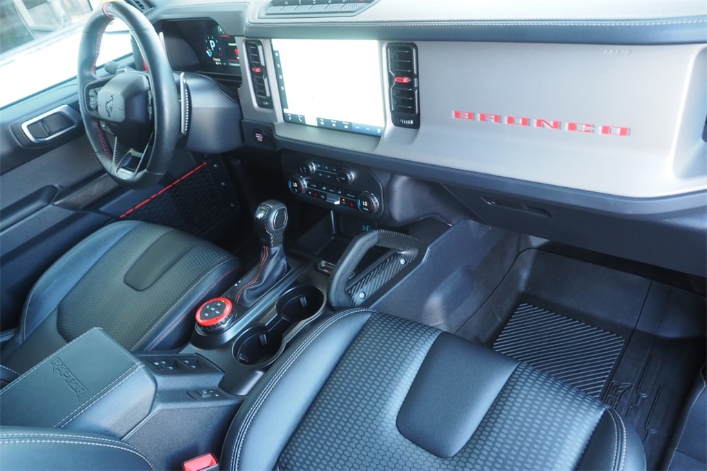 Shadow Black 2023 Ford Bronco Raptor 4WD 10-Speed Automatic 3.0L EcoBoost V6 CLEAN CARFAX, FULLY LOADED 374A EQUIPMENT GROUP, LUXURY PACKAGE, ADAPTIVE CRUISE CONTROL, HEATED STEERING WHEEL, WIRELESS CHARGING PAD, INTERIOR CARBON FIBER PACKAGE, SOUND DEADENING HEADLINER, NAVIGATION SYSTEM, 10 Speakers w/Subwoofer, 2 Smart Charging USB Ports In Dashboard, Adaptive Cruise Control, Connected Built-In Navigation, Convertible HardTop, Equipment Group 374A Lux Package, Evasive Steering Assist, Heated Steering Wheel, Lux Package, Navigation system: Connected Navigation, Radio: B&O Sound System by Bang & Olufsen, Universal Garage Door Opener, Wireless Charging Pad.