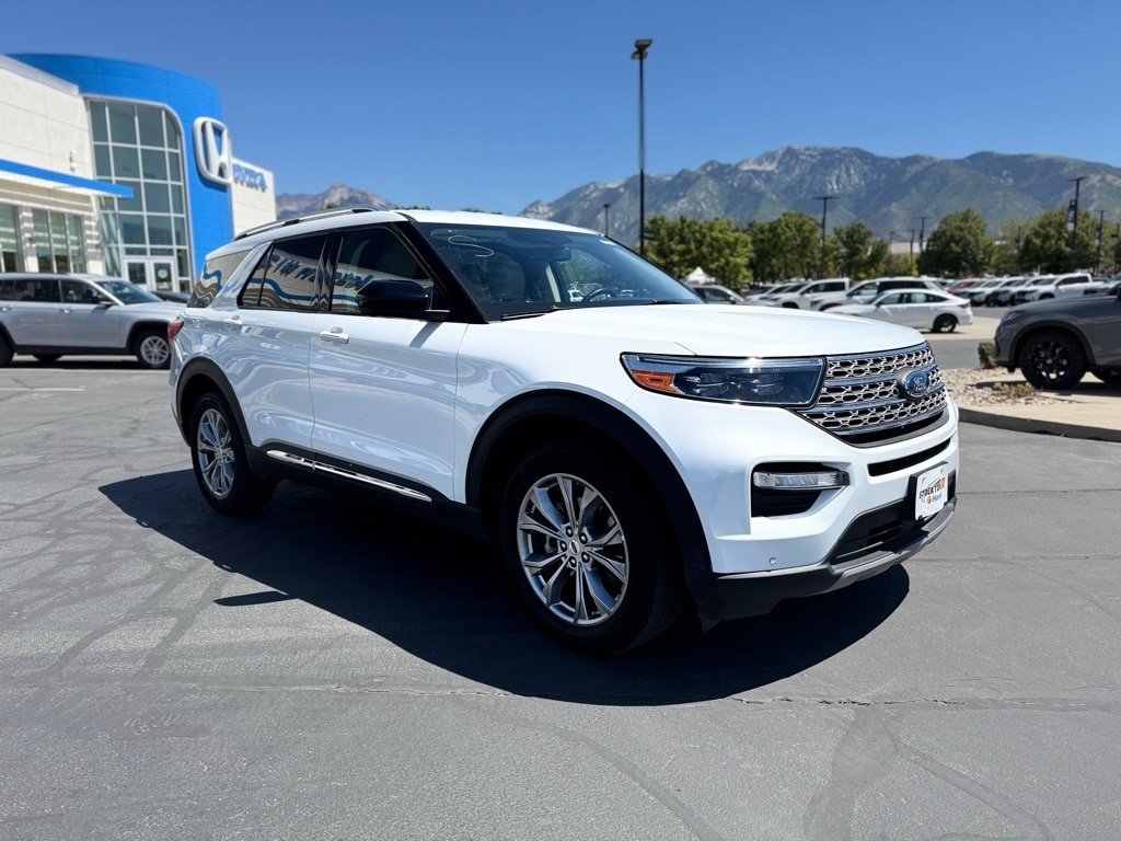Explorer Limited, 4D Sport Utility, 2.3L EcoBoost I-4, 10-Speed Automatic, 4WD, Oxford White, Sandstone Leather, 12 Speakers, 20" Premium Painted Aluminum Wheels, 2nd Row 35/30/35 Bench w/E-Z Entry & Armrest, 3.58 Non-Limited-Slip Rear Axle Ratio, 3rd row seats: bench, 4-Wheel Disc Brakes, 4G LTE Wi-Fi Hotspot Credit, ABS brakes, Air Conditioning, Alloy wheels, AM/FM radio: SiriusXM, Auto High-beam Headlights, Auto Start-Stop Removal (DISC), Auto-dimming Rear-View mirror, Automatic temperature control, Brake assist, Bumpers: body-color, Compass, Delay-off headlights, Driver door bin, Driver vanity mirror, Dual front impact airbags, Dual front side impact airbags, Electronic Stability Control, Emergency communication system: SYNC 3 911 Assist, Equipment Group 300A, Exterior Parking Camera Rear, FordPass Connect, Four wheel independent suspension, Front anti-roll bar, Front Bucket Seats, Front Center Armrest, Front dual zone A/C, Front fog lights, Front License Plate Bracket, Front reading lights, Fully automatic headlights, Garage door transmitter, Heated door mirrors, Heated front seats, Heated rear seats, Heated steering wheel, Illuminated entry, Knee airbag, Leather Heated/Ventilated Captain's Chairs, Leather steering wheel, Low tire pressure warning, Navigation System, Occupant sensing airbag, Outside temperature display, Overhead airbag, Overhead console, Panic alarm, Passenger door bin, Passenger vanity mirror, Power door mirrors, Power driver seat, Power Liftgate, Power passenger seat, Power steering, Power windows, Radio data system, Radio: B&O Sound System by Bang & Olufsen, Rain sensing wipers, Rear air conditioning, Rear anti-roll bar, Rear reading lights, Rear window defroster, Rear window wiper, Remote keyless entry, Roof rack: rails only, Security system, Speed control, Speed-sensing steering, Speed-Sensitive Wipers, Split folding rear seat, Spoiler, Steering wheel mounted audio controls, SYNC 3 Communications & Entertainment System, SYNC 3/Apple CarPlay/Android Auto, Tachometer, Telescoping steering wheel, Tilt steering wheel, Traction control, Trip computer, Variably intermittent wipers, Ventilated front seats, Voice-Activated Touchscreen Navigation System, Explorer Limited, 4D Sport Utility, 2.3L EcoBoost I-4, 10-Speed Automatic, 4WD, Oxford White, Sandstone Leather.