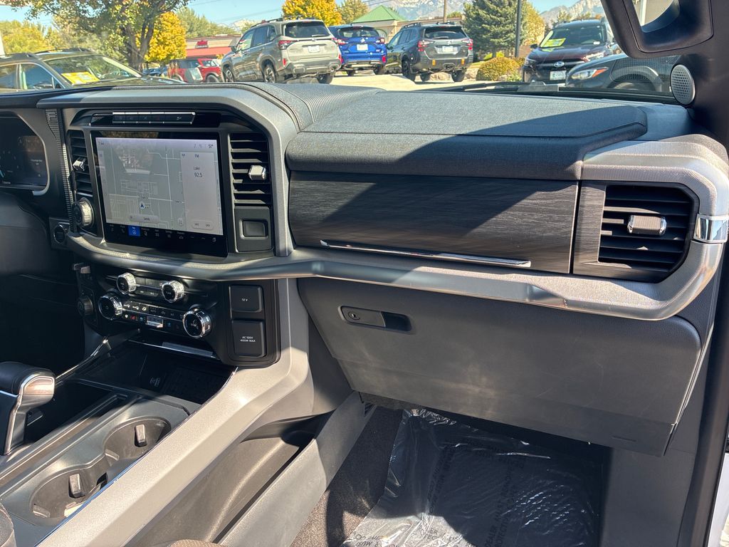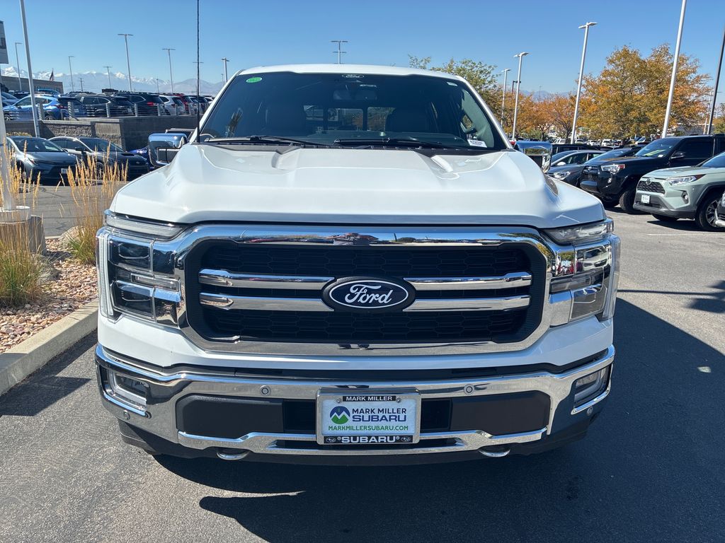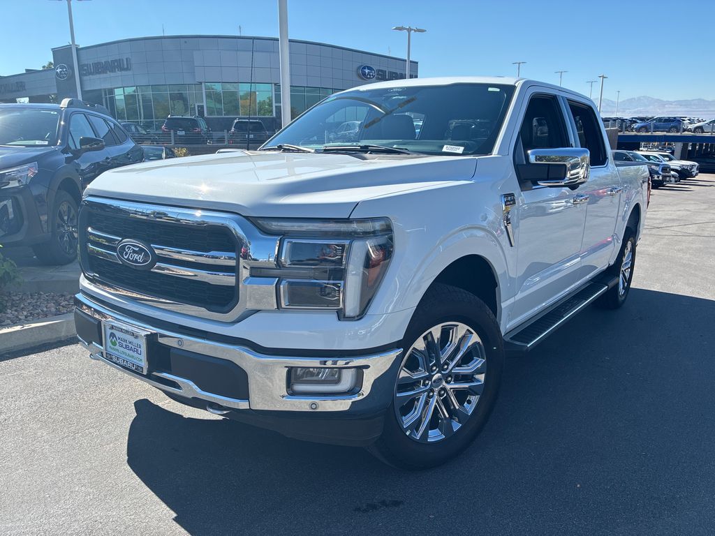 This 2024 Oxford White Ford F-150 Lariat 4WD is well equipped and includes these features and benefits: Equipment Group 502A High, Tow/Haul Package, 4WD, 3.31 Axle Ratio, 4-Wheel Disc Brakes, 8 Speakers, ABS brakes, Adjustable pedals, Air Conditioning, Alloy wheels, AM/FM radio: SiriusXM with 360L, Auto High-beam Headlights, Auto-dimming door mirrors, Auto-dimming Rear-View mirror, Automatic temperature control, Brake assist, Bumpers: chrome, Chrome wheels, Compass, Delay-off headlights, Driver door bin, Driver vanity mirror, Dual front impact airbags, Dual front side impact airbags, Electronic Locking w/3.55 Axle Ratio, Electronic Stability Control, Emergency communication system: SYNC 4 911 Assist, Front anti-roll bar, Front Bucket Seats, Front Center Armrest, Front dual zone A/C, Front fog lights, Front License Plate Bracket, Front reading lights, Front wheel independent suspension, Fully automatic headlights, Garage door transmitter, Heated door mirrors, Heated front seats, Heated steering wheel, Illuminated entry, Low tire pressure warning, Memory seat, Navigation system: Connected Navigation, Occupant sensing airbag, Outside temperature display, Overhead airbag, Overhead console, Panic alarm, Passenger door bin, Passenger vanity mirror, Pedal memory, Power door mirrors, Power driver seat, Power passenger seat, Power steering, Power windows, Radio data system, Radio: B&O Sound System by Bang & Olufsen, Rain sensing wipers, Rear reading lights, Rear seat center armrest, Rear step bumper, Rear window defroster, Remote keyless entry, Security system, Speed control, Split folding rear seat, Steering wheel mounted audio controls, SYNC 4 w/Enhanced Voice Recognition, Tachometer, Telescoping steering wheel, Tilt steering wheel, Traction control, Trip computer, Turn signal indicator mirrors, Variably intermittent wipers, Ventilated front seats, Voltmeter, and Wheels: 20" Chrome-Like PVD.