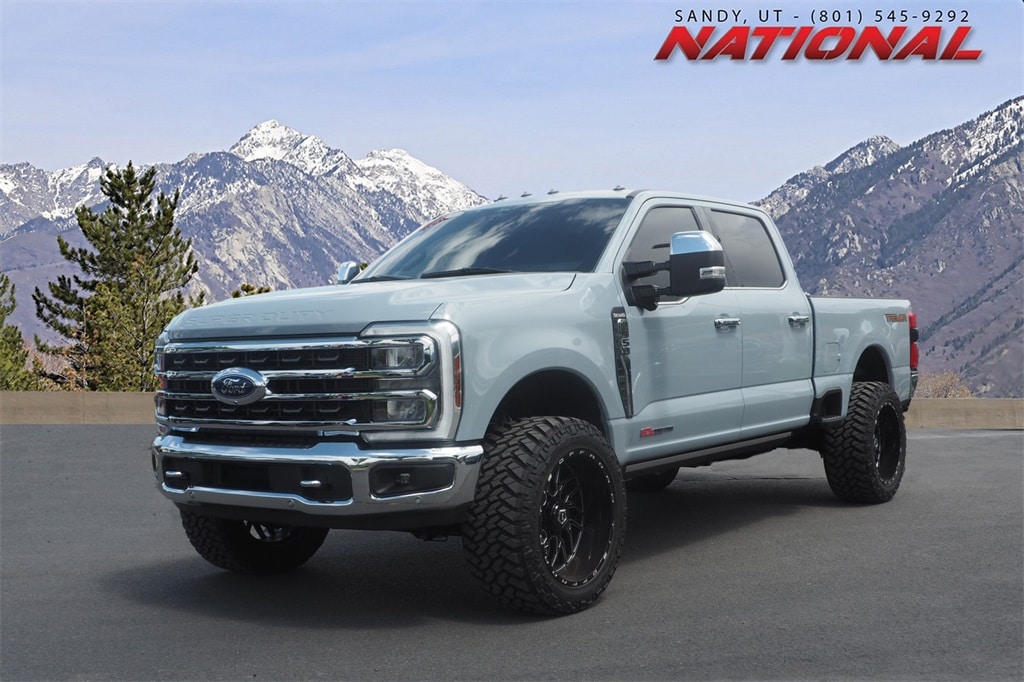 Gray Metallic 2024 Ford F-350SD King Ranch 4WD 10-Speed Automatic 6.7L High Output Power Stroke V8 Diesel LIFTED, NEW TIRES, CLEAN CARFAX, POOWER RUNNING BOARDS, 5TH WHEEL HITCH PREP PACKAGE, TOUGH BED SPRAY IN BEDLINER, MAX RECLINE DRIVER AND PASSENGER SEAT, SKID PLATES, POWER MOONROOF TWIN PANEL, PPF FRONT CLIP, FENDERS, A PILLARS, HEADLIGHTS ECT., FULL PAINT CORRECTION AND ULTIMATE CERAMIC COATING, FULL CERAMIC TINT ON ALL WINDOWS, NITTO TRAIL GRAPPLER 325/50R22 TIRES, RIS OFFROAD WHEELS 22X12, TREMOR PACKAGE WITH AUTO RETRACTABLE STEPS, 4WD, 5th Wheel/Gooseneck Hitch Prep Package, Chrome Door Handles, Chrome Exhaust Tip, Chrome Package, Lane Departure Warning System, Navigation system: Connected Navigation (includes complimentary 1-year trial), Order Code 710A, Textured Matte Finish Off-Road Running Boards, Tremor Off-Road Decal, Tremor Off-Road Package, Unique Chrome Mirror Caps, Wheels: 18" Machined & Painted Aluminum, Wheels: 20" Chrome PVD Aluminum.