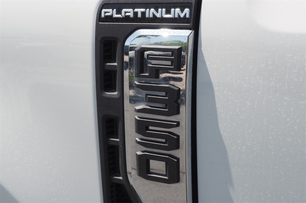 White 2024 Ford F-350SD Platinum 4WD 10-Speed Automatic 6.7L High Output Power Stroke V8 Diesel LIFTED, NEW TIRES, 4WD, ABS brakes, Alloy wheels, AM/FM radio: SiriusXM with 360L, Compass, Electronic Stability Control, Front dual zone A/C, GVWR: 12,400 lb Payload Package, Heated door mirrors, Heated front seats, Heated rear seats, Illuminated entry, Low tire pressure warning, Navigation System, Navigation system: Connected Navigation (includes complimentary 1-year trial), Remote keyless entry, SiriusXM Radio w/360L, SYNC 4 w/Enhanced Voice Recognition, Traction control.