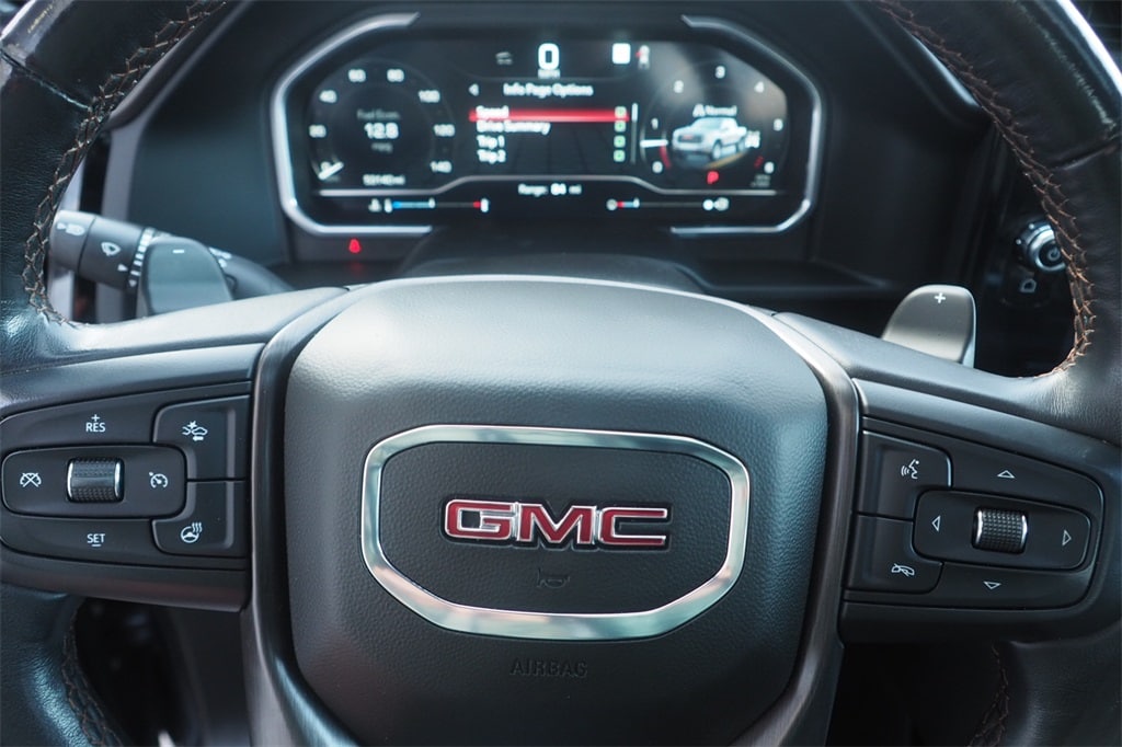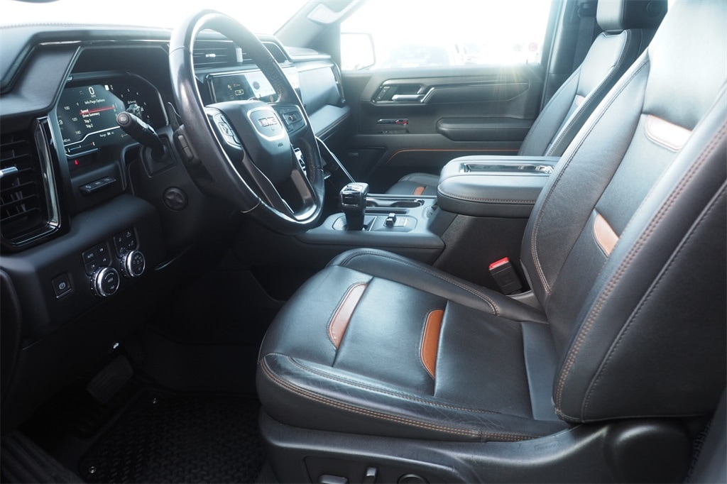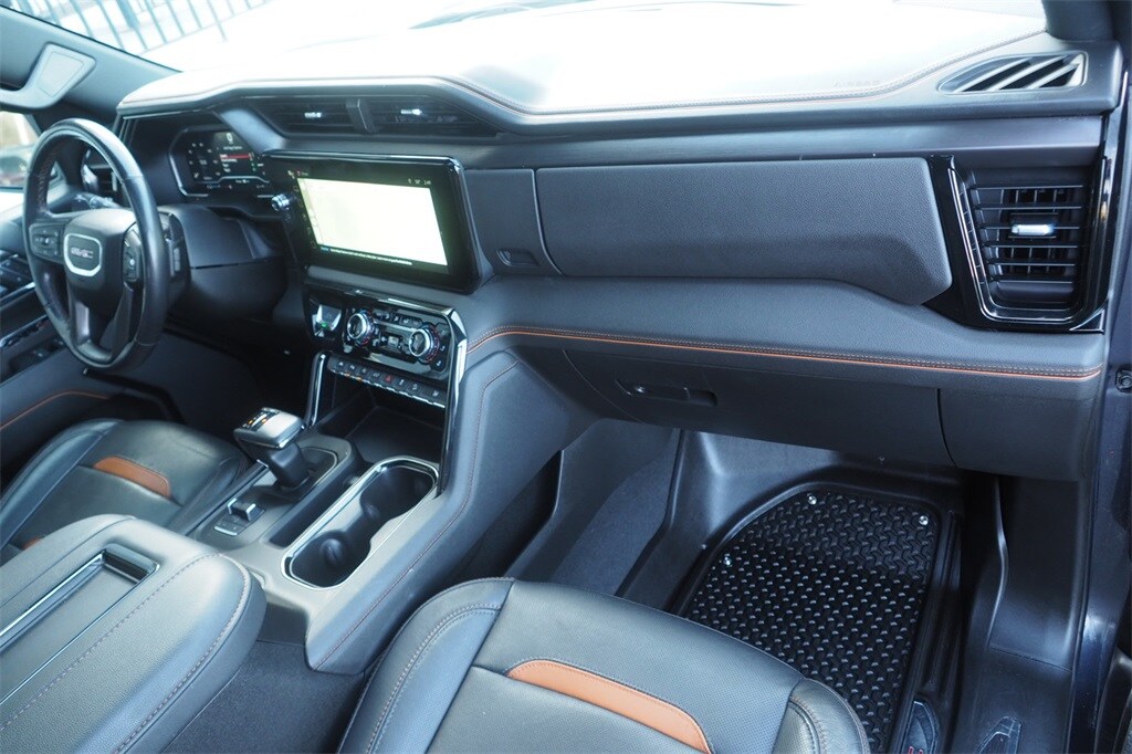 Titanium 2022 GMC Sierra 1500 AT4 4WD 10-Speed Automatic EcoTec3 6.2L V8 CLEAN CARFAX, 10-Speed Automatic, 4WD, Jet Black With Kalahari Accents Leather, 120-Volt Bed Mounted Power Outlet, 120-Volt Instrument Panel Power Outlet, 2 Charge/Data USB Ports Inside Center Console, 2 Type-C Charge-Only Rear USB Ports, 2 USB Ports, 220 Amp Alternator, Adaptive Cruise Control, AT4 Preferred Package, Auto-Locking Rear Differential, Bed View Camera, Black Chrome Header & Grille Insert Bars, Color-Keyed Carpeting Floor Covering, Compass, Deep-Tinted Glass, Electric Rear-Window Defogger, Electrical Steering Column Lock, Floor-Mounted Center Console, Front Prem Floor Liners w/Removable Carpet Insert, Front Rainsensing Wipers, GMC Connected Access Capable, HD Rear Vision Camera, HD Surround Vision, Heated 2nd Row Outboard Seats, Heated Driver & Front Outboard Passenger Seating, Heated Steering Wheel, Heavy-Duty Air Filter, Hill Descent Control, Hitch Guidance, Hitch Guidance w/Hitch View, In-Vehicle Trailering App, Integrated Trailer Brake Controller, Keyless Open & Start, LED Cargo Area Lighting, Multicolor 15" Diagonal Head-Up Display, OnStar & GMC Connected Services Capable, Perimeter Lighting, Power Door Locks, Power Front Passenger Windows w/Express Up/Down, Power Front Windows w/Driver Express Up/Down, Power Rake & Telescoping Steering Column, Power Rear Windows w/Express Down, Power Sliding Rear Window w/Rear Defogger, Preferred Equipment Group 4SB, Premium Bose 7-Speaker Sound System, Push Button Start, Rear Camera Mirror, Rear Cross Traffic Braking, Rear Pedestrian Detection, Rear Prem Floor Liners w/Removable Carpet Insert, Rear Wheelhouse Liners, Red Recovery Hooks, Remote Vehicle Starter System, Sierra Safety Plus Package, SiriusXM w/360L, Spray-On Pickup Bed Liner w/AT4 Logo, Steering Wheel Audio Controls, Technology Package, Theft Deterrent System (Unauthorized Entry), Trailer Camera Provisions, Trailer Side Blind Zone Alert, Trailering Package, Ultrasonic Front & Rear Park Assist, Universal Home Remote, Ventilated Driver & Front Passenger Seats, Wi-Fi Hotspot Capable, Wireless Charging, Wireless Phone Projection.