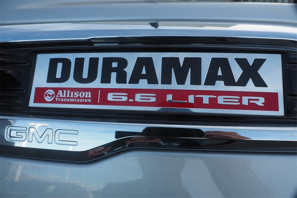 Quicksilver Metallic 2023 GMC Sierra 3500HD Denali 4WD 10-Speed Automatic Duramax 6.6L V8 Turbodiesel 10-Speed Automatic, 4WD, Black Leather, 12-Volt Rear Auxiliary Power Outlet, 120-Volt Bed Mounted Power Outlet, 120-Volt Instrument Panel Power Outlet, 2 USB Ports (First Row), 2 USB Ports Inside Console, 2-Speed Active Transfer Case, 2nd Row Dual USB Charge-Only Ports, 6" Rectangular Chromed Tubular Assist Steps, Auto-Dimming Inside Rearview Mirror w/Camera, Automatic Emergency Braking, Bed View Camera w/2 Trailer Camera Provisions, Compass Located In Instrument Cluster, Deep-Tinted Glass, Denali Ultimate Package, Driver Alert Package I, Driver Alert Package II, Electric Rear-Window Defogger, Electrical Lock Control Steering Column, Floor-Mounted Center Console, Following Distance Indicator, Forward Collision Alert, Front Chrome Recovery Hooks, GMC Connected Access Capable, Gooseneck/5th Wheel Prep Package, HD Rear Vision Camera, HD Surround Vision w/2 Trailer View Camera Provisions, Heated 2nd Row Outboard Seats, Heated Driver & Front Outboard Passenger Seats, Hill Descent Control, Hitch Guidance w/Hitch View, In-Vehicle Trailering System App, Integrated Trailer Brake Controller, IntelliBeam Automatic High Beam On/Off, Keyless Open & Start, Lane Change Alert w/Side Blind Zone Alert, Lane Departure Warning System, LED Cargo Area Lighting, Manual Tilt-Wheel/Telescoping Steering Column, Multicolor 15" Diagonal Head-Up Display, Navigation System, OnStar & GMC Connected Services Capable, Polished Exhaust Tip, Power Door Locks, Power Front Passenger Windows w/Express Up/Down, Power Front Windows w/Driver Express Up/Down, Power Rear Windows w/Express Down, Power Sliding Rear Window w/Defogger, Power Sunroof, Preferred Equipment Group 5SA, ProGrade Trailering System, Rear Cross Traffic Alert, Rear Wheelhouse Liners, Remote Vehicle Starter System, Safety Alert Seat, Signature Denali Grille w/High Gloss Black Mesh, Spray-On Pickup Bed Liner w/Denali Logo, Steering Wheel Audio Controls, Technology Package, Ultrasonic Front & Rear Park Assist, Unauthorized Entry Theft-Deterrent System, Universal Home Remote, Ventilated Driver & Front Passenger Seats, Wi-Fi Hotspot Capable, Wireless Charging, Wireless Phone Projection, X31 Off-Road Package.