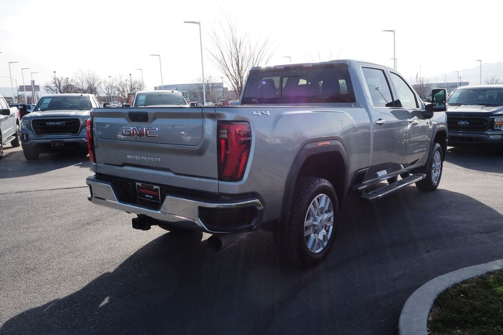 Sterling Metallic 2024 GMC Sierra 2500HD SLT 4WD 10-Speed Automatic Duramax 6.6L V8 Turbodiesel 10-Speed Automatic, 4WD, Black Leather, 120-Volt Bed Mounted Power Outlet, 120-Volt Instrument Panel Power Outlet, 2 Charge-Only Rear USB Ports, 2 Charge/Data USB Ports, 2 Charge/Data USB Ports Inside Center Console, 2-Speed Active Transfer Case, 6-Speaker Audio System Feature, 6" Rectangular Chromed Tubular Assist Steps, Adaptive Cruise Control, Bed View Camera w/2 Trailer Camera Provisions, Bose Premium 7-Speaker Sound System, Chrome Surround Grille w/Chrome Insert Bars, Deep-Tinted Glass, Electric Rear-Window Defogger, Floor-Mounted Center Console, Front Bucket Seats, Front Rain-Sensing Wipers, GMC Connected Access Capable, Gooseneck/5th Wheel Prep Package, HD Rear Vision Camera Delete, HD Surround Vision, Heated 2nd Row Outboard Seats, Heated Driver & Front Outboard Passenger Seats, Integrated Trailer Brake Controller, Keyless Open & Start, LED Cargo Area Lighting, LED Smoked Amber Roof Marker Lamps, Manual Tilt-Wheel/Telescoping Steering Column, OnStar & GMC Connected Services Capable, Power Front Passenger Windows w/Express Up/Down, Power Sliding Rear Window w/Defogger, Preferred Equipment Group 4SA, Push Button Start, Rear Cross Traffic Alert, Rear Wheelhouse Liners, Remote Vehicle Starter System, Safety Alert Seat, Sierra HD Pro Safety Plus Package, SiriusXM w/360L, SLT Convenience Package, SLT Preferred Package, SLT Premium Package, Spray-On Bedliner, Steering Wheel Audio Controls, Suspension Package, Trailer Cam Provisions & Trailer Viewing Software, Trailer Side Blind Zone Alert, Ultrasonic Front & Rear Park Assist, Unauthorized Entry Theft-Deterrent System, Universal Home Remote, Ventilated Driver & Front Passenger Seats, Wireless Charging, Wireless Phone Projection.