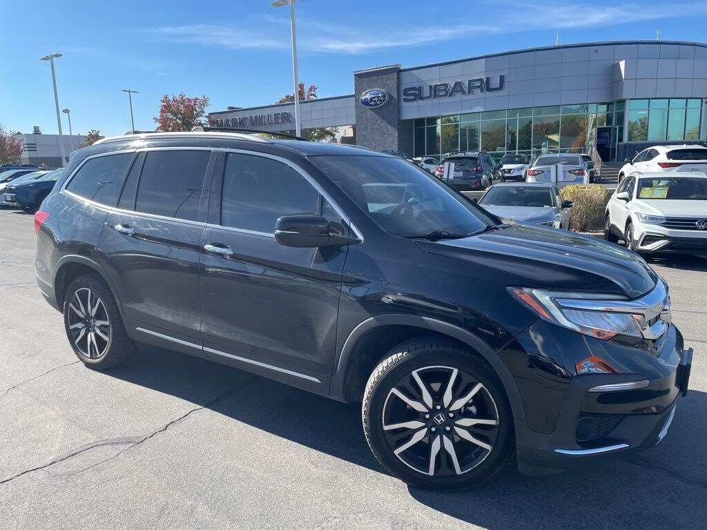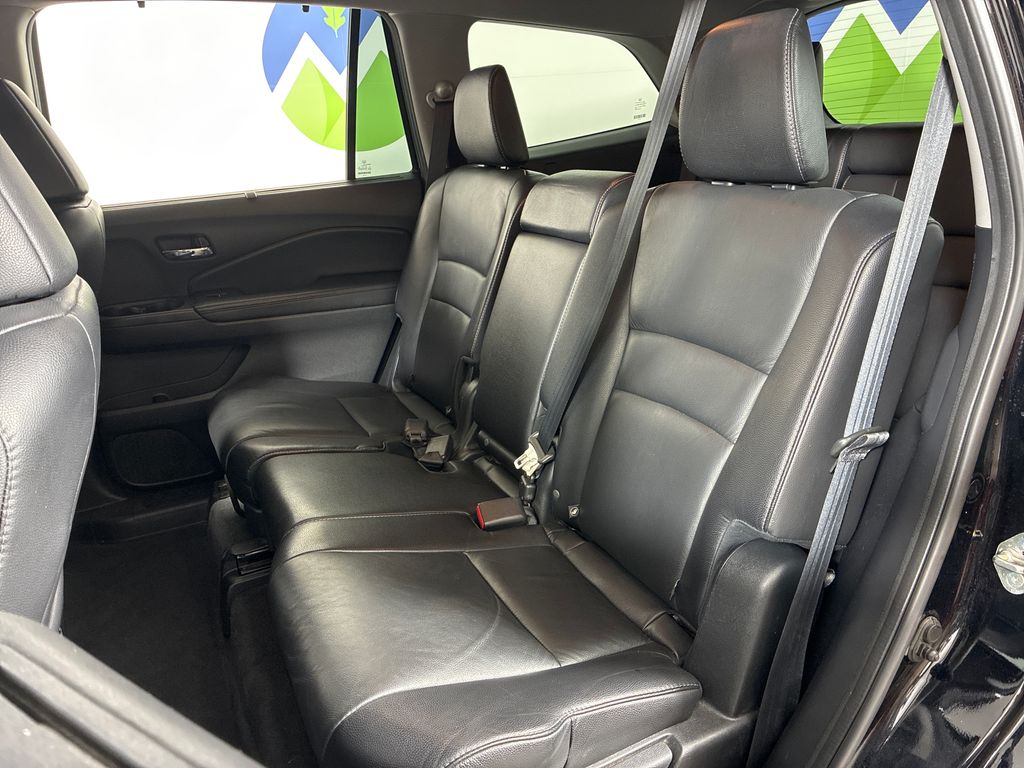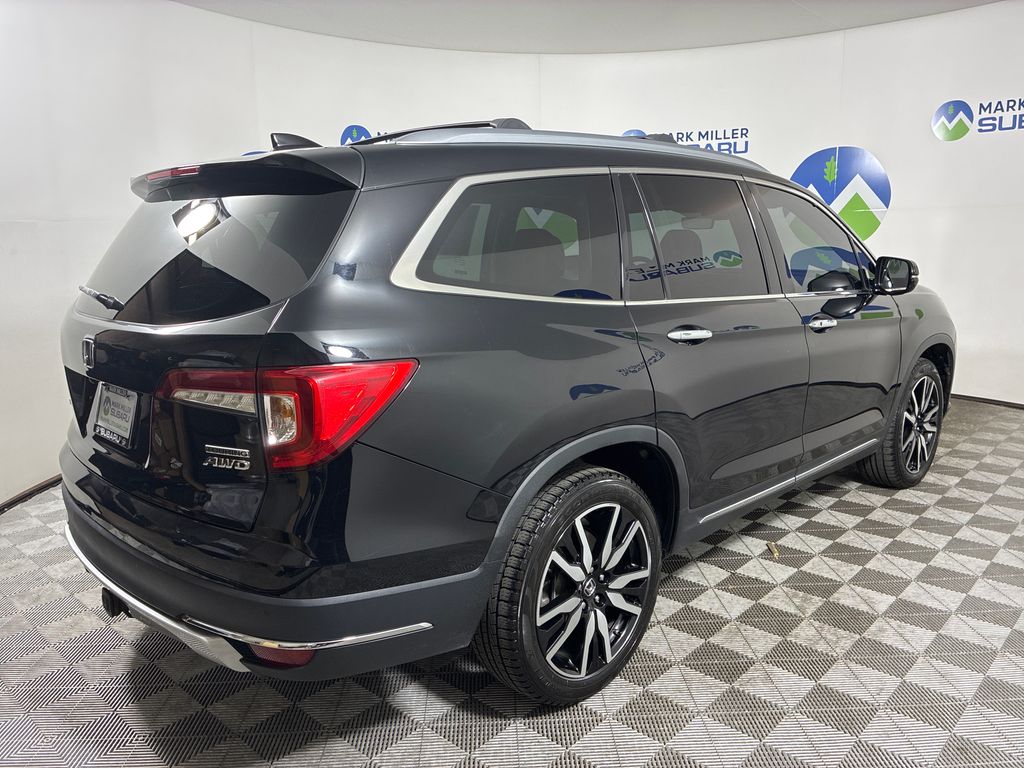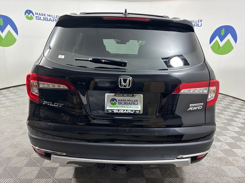 This 2019 Black Honda Pilot Touring AWD is well equipped and includes these features and benefits: AWD, 10 Speakers, 3rd row seats: split-bench, 4-Wheel Disc Brakes, 4.334 Axle Ratio, A/V remote: CabinControl, ABS brakes, Air Conditioning, Alloy wheels, AM/FM radio: SiriusXM, Apple CarPlay/Android Auto, Auto High-beam Headlights, Auto-dimming Rear-View mirror, Automatic temperature control, Blind Spot Information (BSI) System warning, Brake assist, Bumpers: body-color, Compass, Delay-off headlights, Driver door bin, Driver vanity mirror, Dual front impact airbags, Dual front side impact airbags, Electronic Stability Control, Emergency communication system: HondaLink, Exterior Parking Camera Rear, Forward collision: Collision Mitigation Braking System (CMBS) + FCW mitigation, Four wheel independent suspension, Front anti-roll bar, Front Bucket Seats, Front Center Armrest, Front dual zone A/C, Front fog lights, Front reading lights, Fully automatic headlights, Garage door transmitter: HomeLink, Headphones, Heated door mirrors, Heated Front Bucket Seats, Heated front seats, Heated rear seats, Illuminated entry, Lane departure: Lane Keeping Assist System (LKAS) active, Leather-Trimmed Seats, Low tire pressure warning, Memory seat, Navigation system: Honda Satellite-Linked Navigation System, Occupant sensing airbag, Outside temperature display, Overhead airbag, Overhead console, Panic alarm, Passenger door bin, Passenger vanity mirror, Power door mirrors, Power driver seat, Power Liftgate, Power moonroof, Power passenger seat, Power steering, Power windows, Radio data system, Radio: AM/FM Premium Audio System, Rear air conditioning, Rear anti-roll bar, Rear reading lights, Rear seat center armrest, Rear window defroster, Rear window wiper, Reclining 3rd row seat, Remote keyless entry, Roof rack: rails only, Security system, Speed control, Speed-sensing steering, Speed-Sensitive Wipers, Split folding rear seat, Spoiler, Steering wheel mounted audio controls, Tachometer, Telescoping steering wheel, Tilt steering wheel, Traction control, Trip computer, Turn signal indicator mirrors, Variably intermittent wipers, and Wheels: 20" Machine-Finished Alloy.