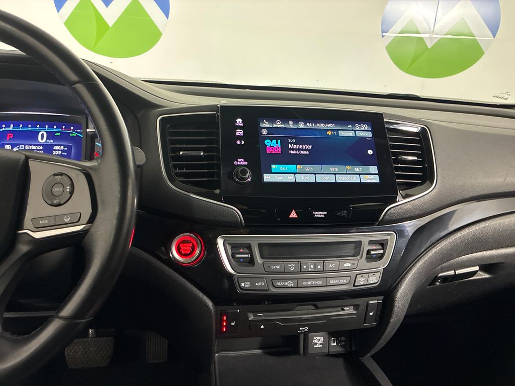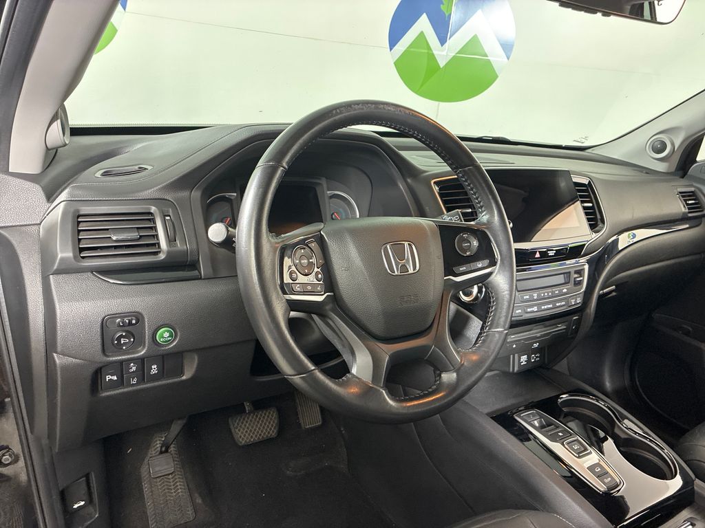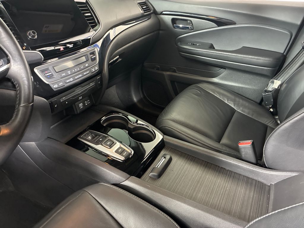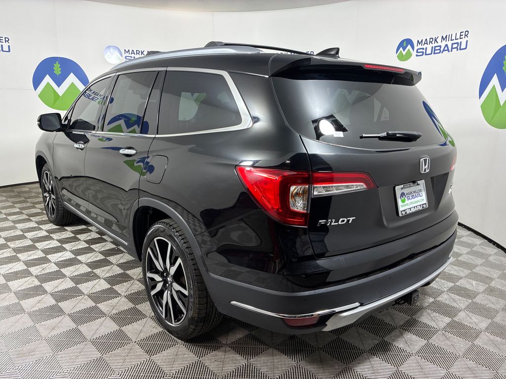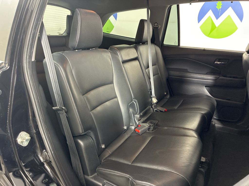 This 2019 Black Honda Pilot Touring AWD is well equipped and includes these features and benefits: AWD, 10 Speakers, 3rd row seats: split-bench, 4-Wheel Disc Brakes, 4.334 Axle Ratio, A/V remote: CabinControl, ABS brakes, Air Conditioning, Alloy wheels, AM/FM radio: SiriusXM, Apple CarPlay/Android Auto, Auto High-beam Headlights, Auto-dimming Rear-View mirror, Automatic temperature control, Blind Spot Information (BSI) System warning, Brake assist, Bumpers: body-color, Compass, Delay-off headlights, Driver door bin, Driver vanity mirror, Dual front impact airbags, Dual front side impact airbags, Electronic Stability Control, Emergency communication system: HondaLink, Exterior Parking Camera Rear, Forward collision: Collision Mitigation Braking System (CMBS) + FCW mitigation, Four wheel independent suspension, Front anti-roll bar, Front Bucket Seats, Front Center Armrest, Front dual zone A/C, Front fog lights, Front reading lights, Fully automatic headlights, Garage door transmitter: HomeLink, Headphones, Heated door mirrors, Heated Front Bucket Seats, Heated front seats, Heated rear seats, Illuminated entry, Lane departure: Lane Keeping Assist System (LKAS) active, Leather-Trimmed Seats, Low tire pressure warning, Memory seat, Navigation system: Honda Satellite-Linked Navigation System, Occupant sensing airbag, Outside temperature display, Overhead airbag, Overhead console, Panic alarm, Passenger door bin, Passenger vanity mirror, Power door mirrors, Power driver seat, Power Liftgate, Power moonroof, Power passenger seat, Power steering, Power windows, Radio data system, Radio: AM/FM Premium Audio System, Rear air conditioning, Rear anti-roll bar, Rear reading lights, Rear seat center armrest, Rear window defroster, Rear window wiper, Reclining 3rd row seat, Remote keyless entry, Roof rack: rails only, Security system, Speed control, Speed-sensing steering, Speed-Sensitive Wipers, Split folding rear seat, Spoiler, Steering wheel mounted audio controls, Tachometer, Telescoping steering wheel, Tilt steering wheel, Traction control, Trip computer, Turn signal indicator mirrors, Variably intermittent wipers, and Wheels: 20" Machine-Finished Alloy.